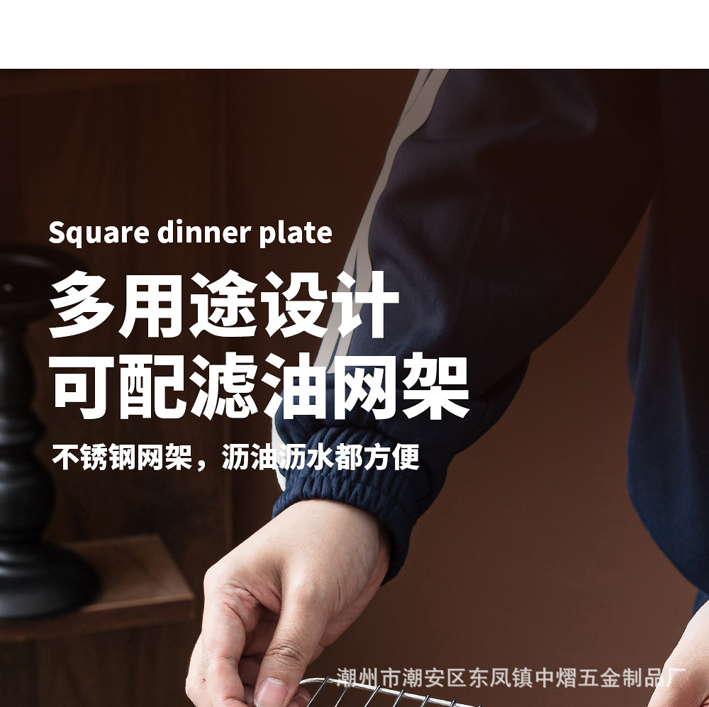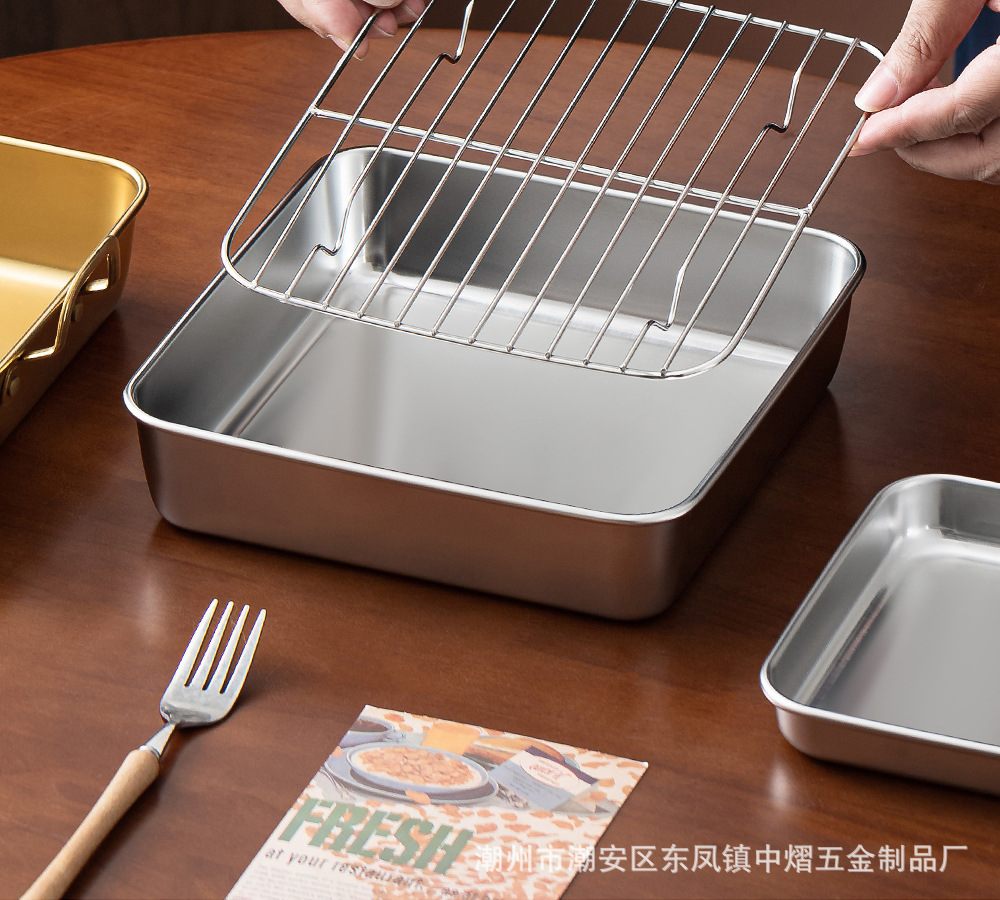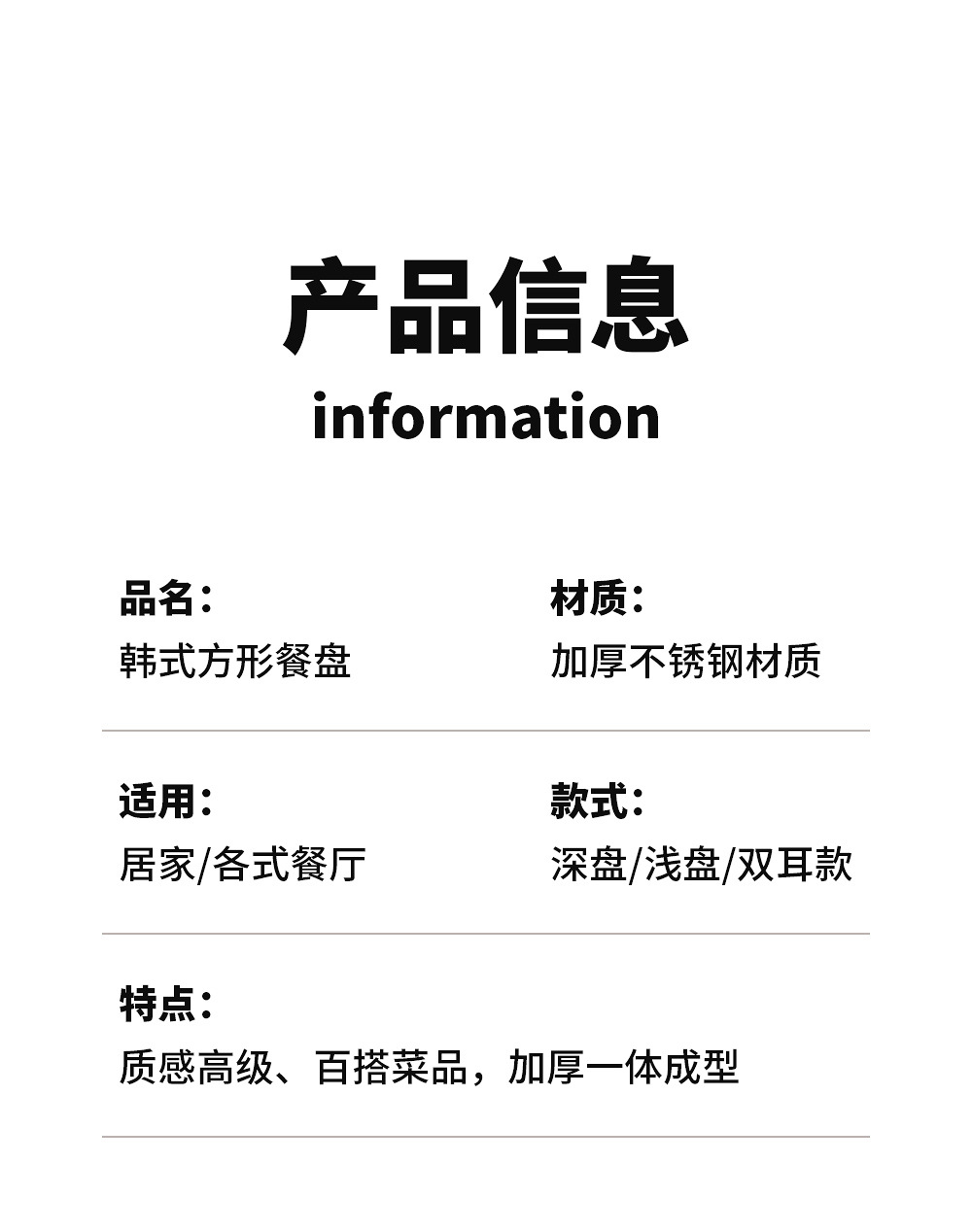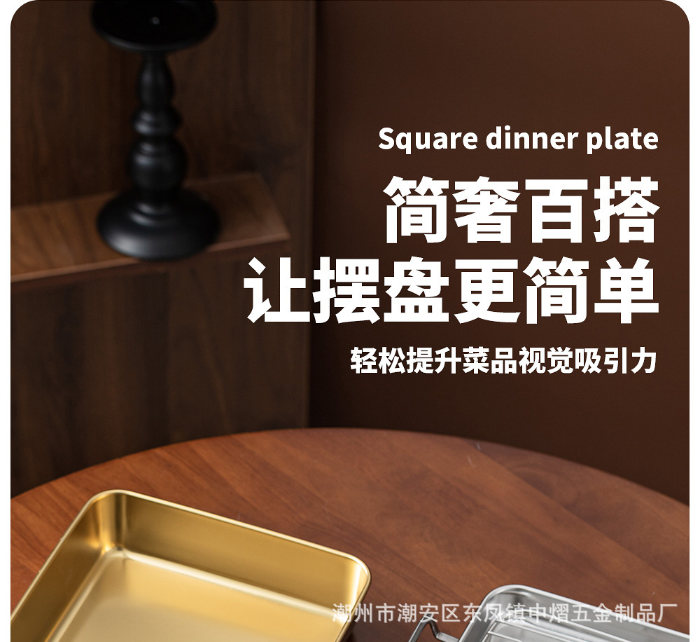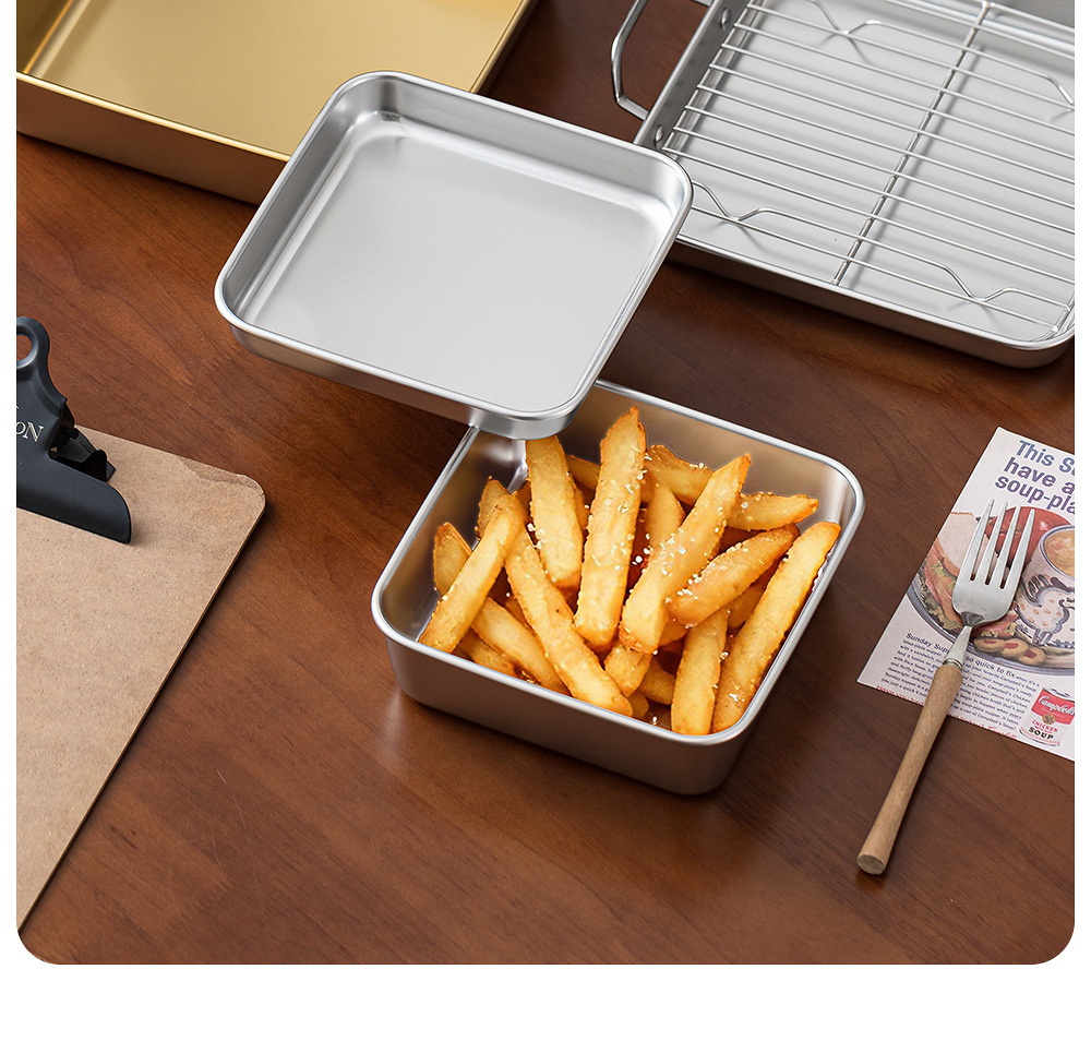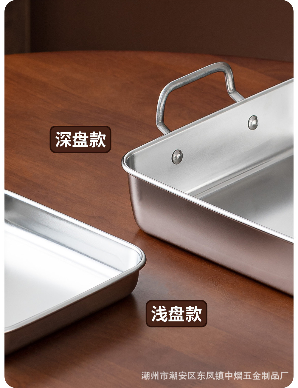 韩式金色带耳不锈钢正方形托盘提拉米苏盘户外烤肉盘小吃平底盘