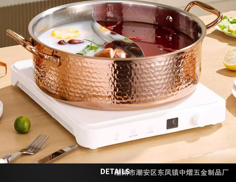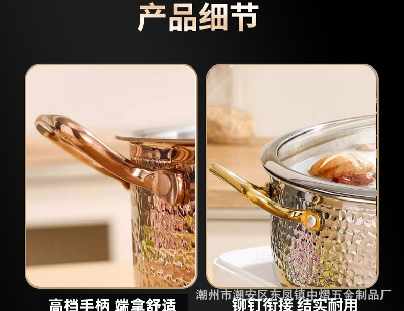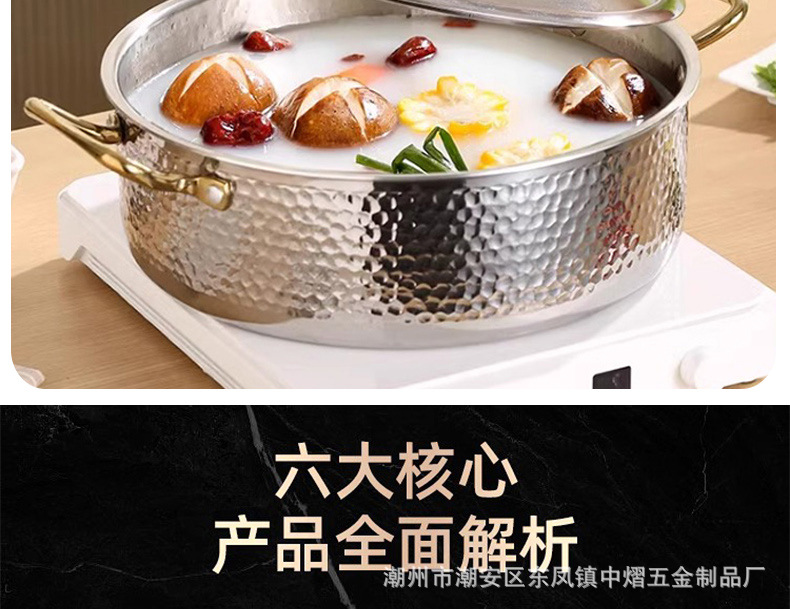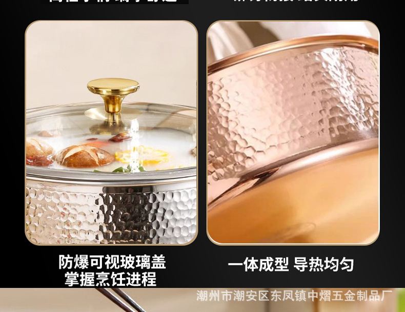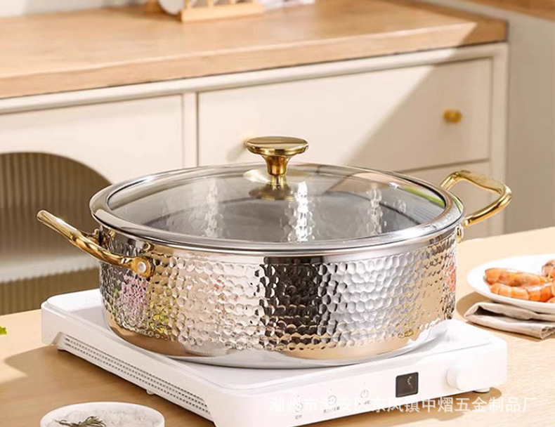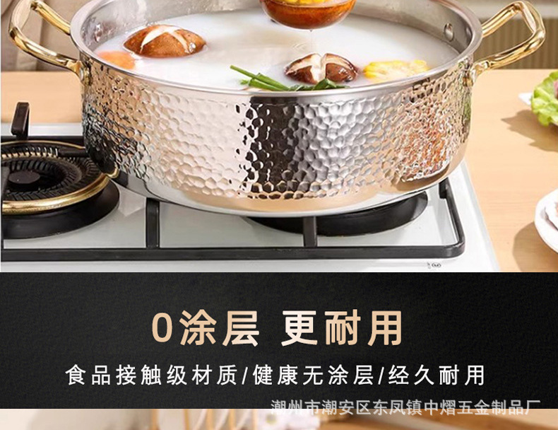 304不锈钢汤锅家用电磁炉燃气锤纹清汤锅大容量加厚三层钢鸳鸯锅