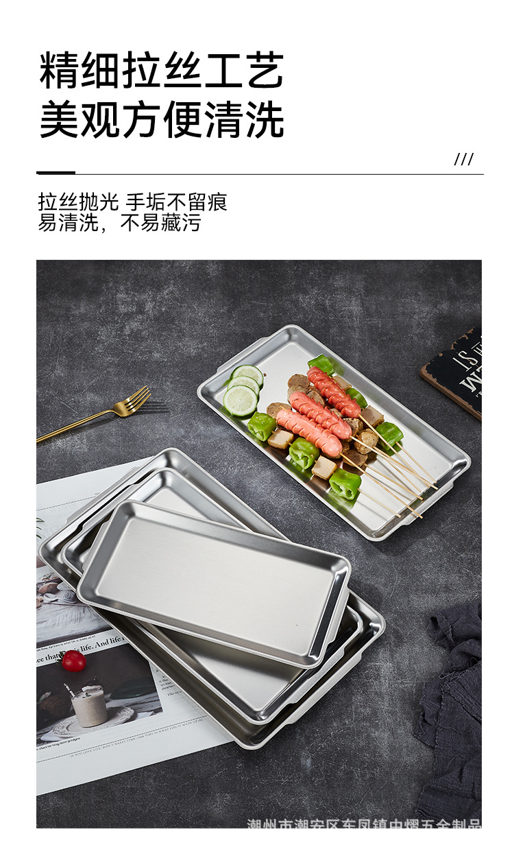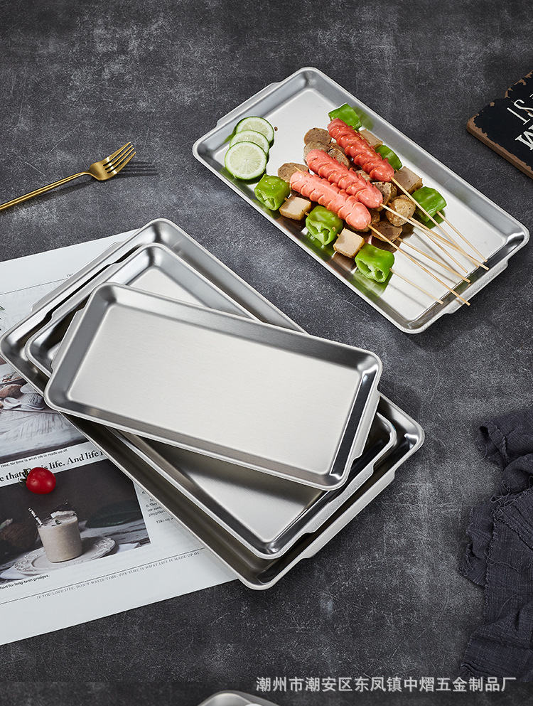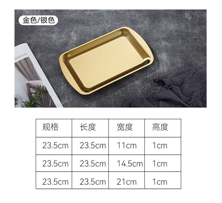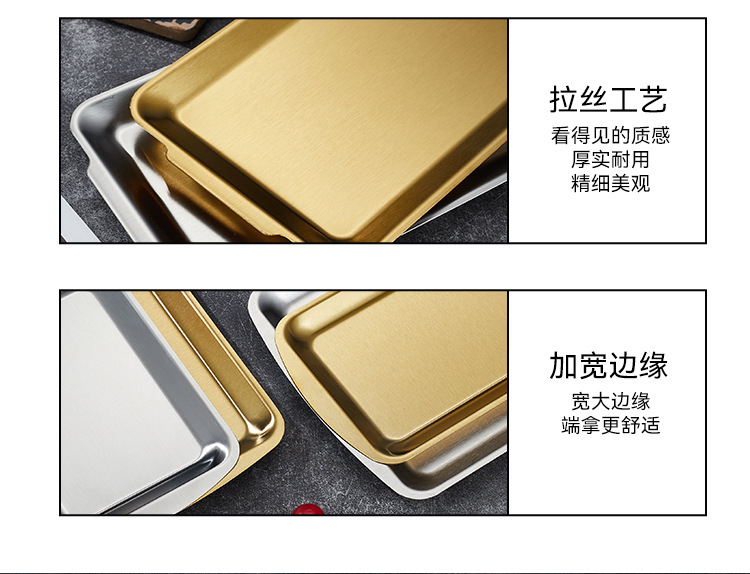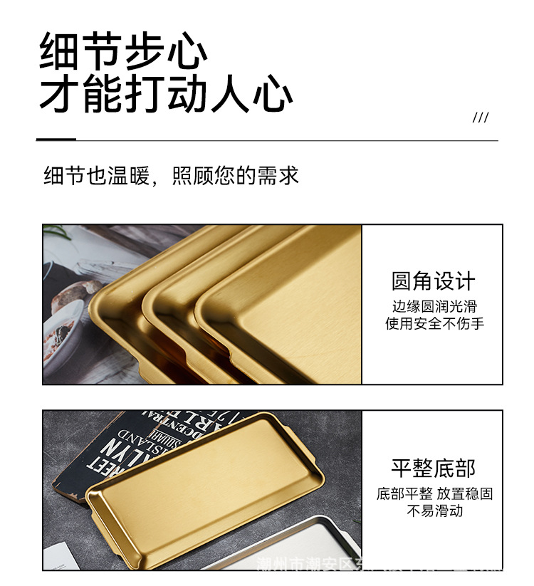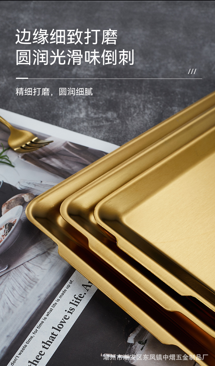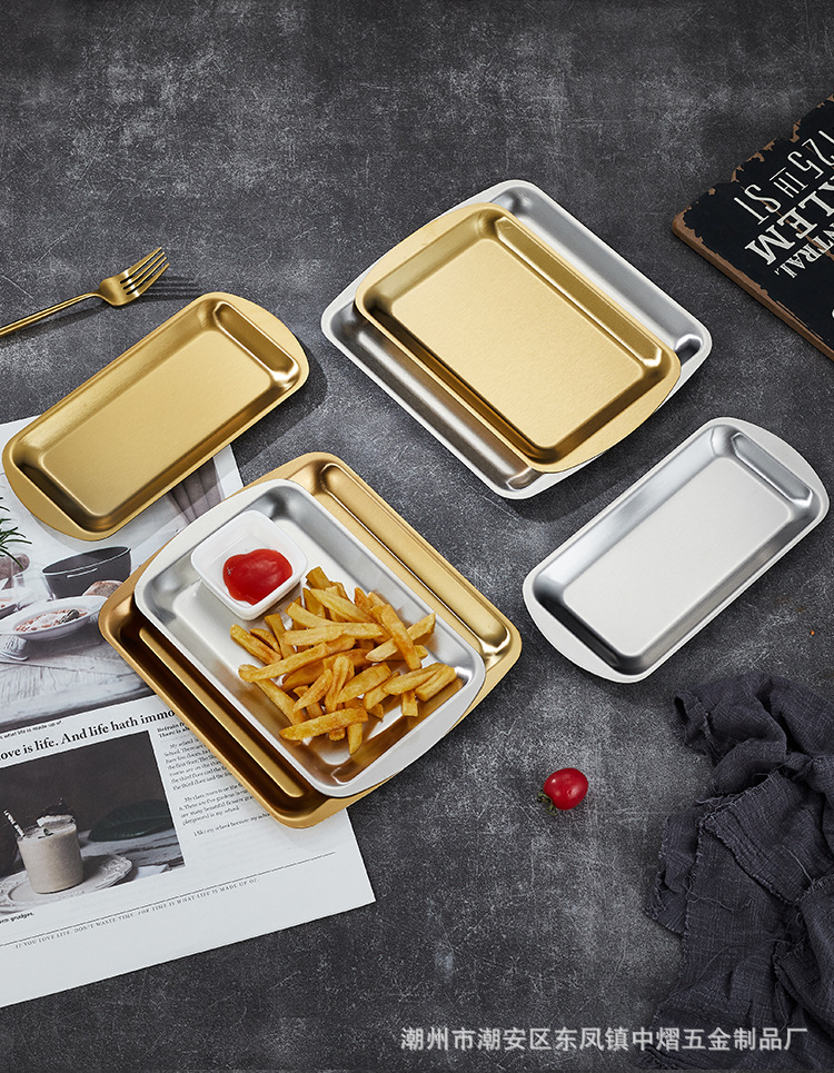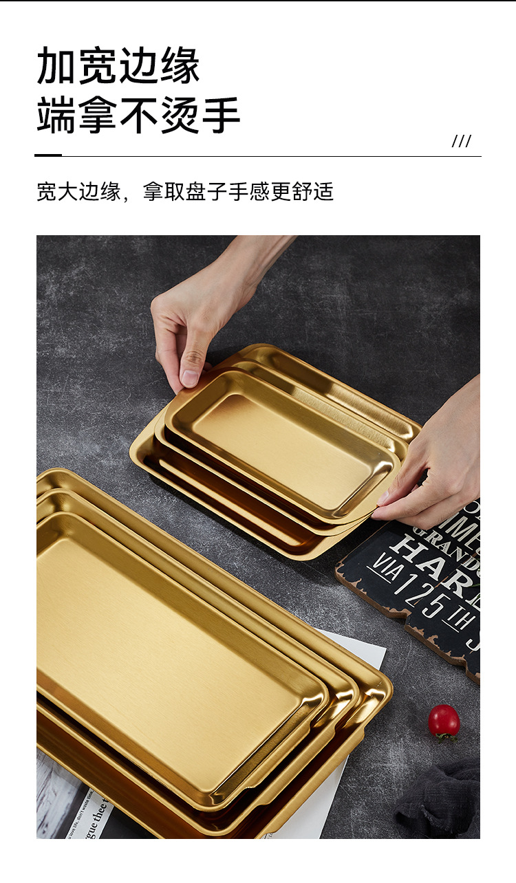 304不锈钢韩式烤肉盘长方形金色托盘酒店餐厅小吃甜品多用盘