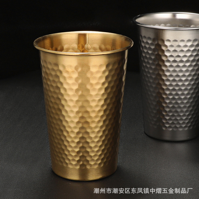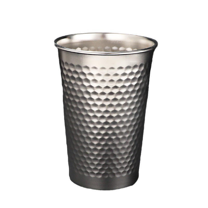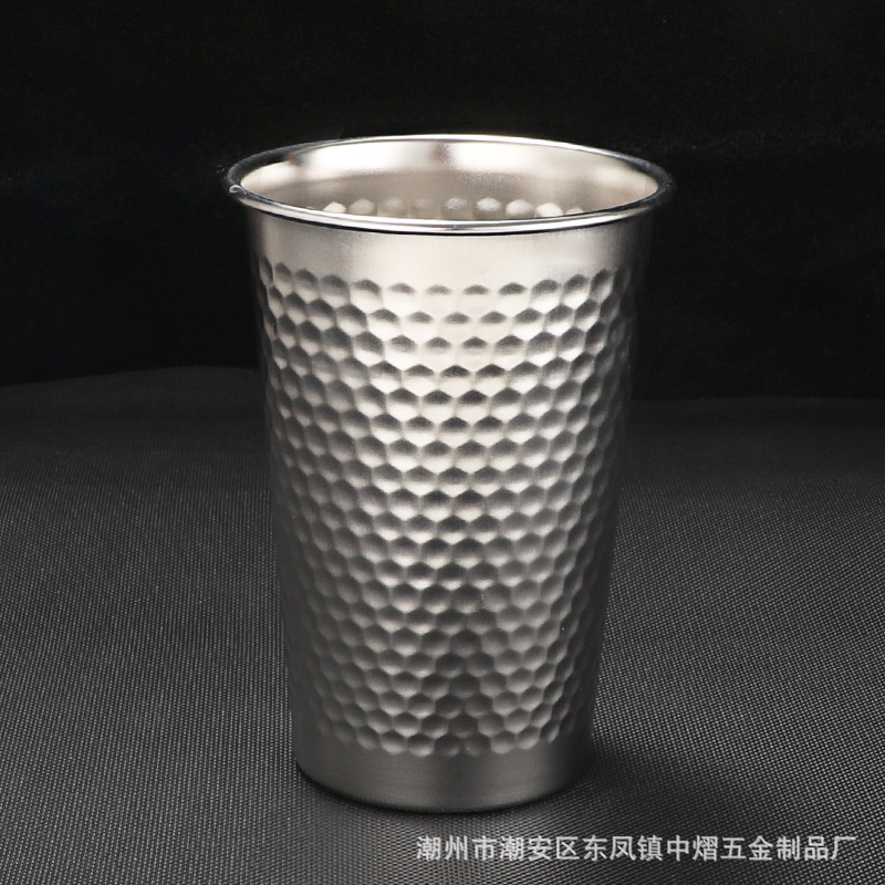 304不锈钢单层冷饮杯休闲吧咖啡杯餐厅水杯啤酒杯钻石锤纹防摔杯