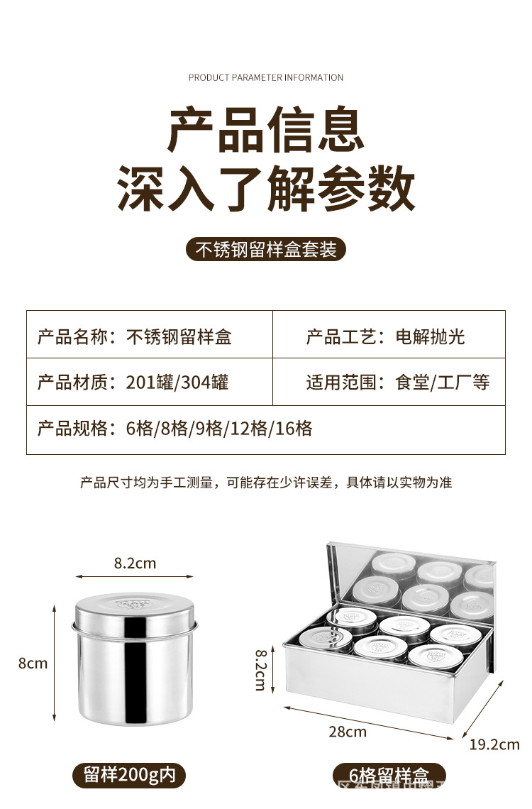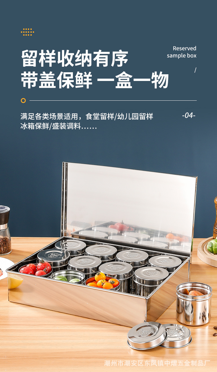 304不锈钢食物留样盒套装带盖瓶子学校幼儿园食堂食品留样专用盒