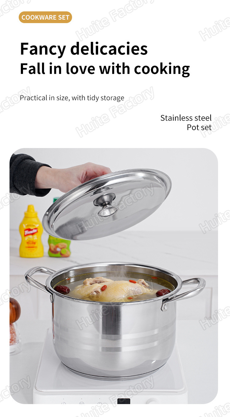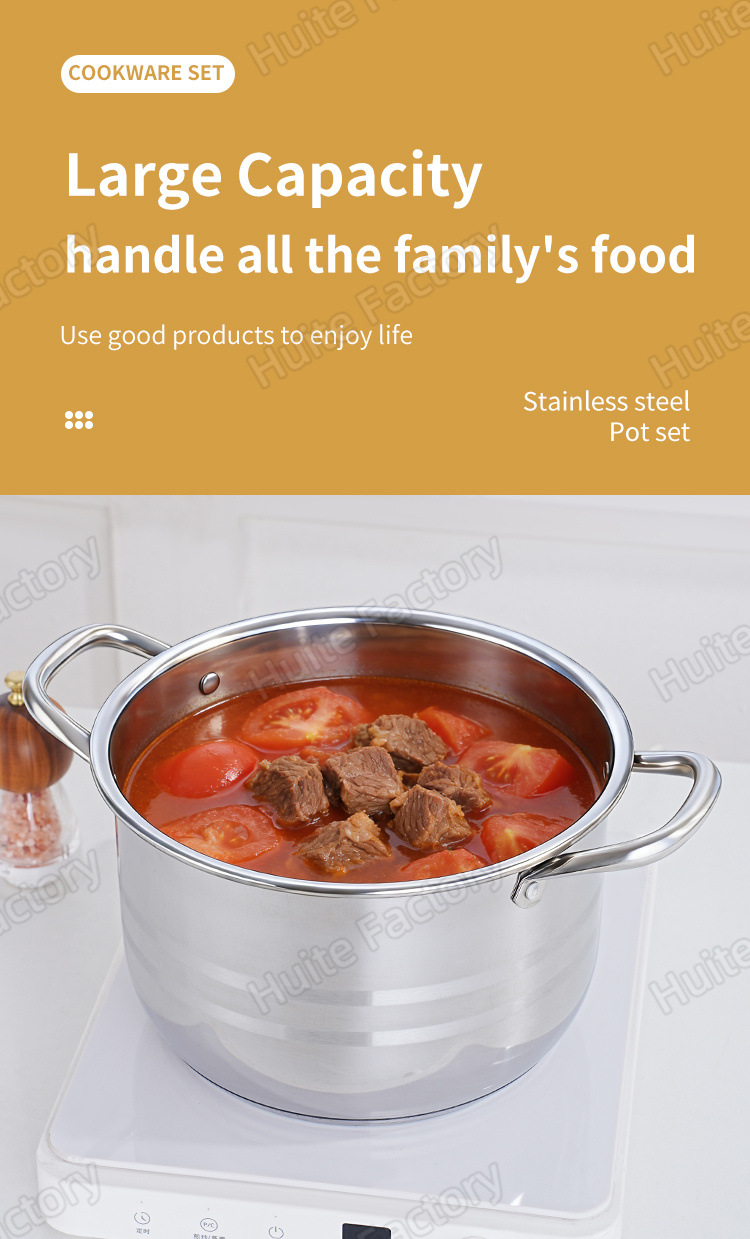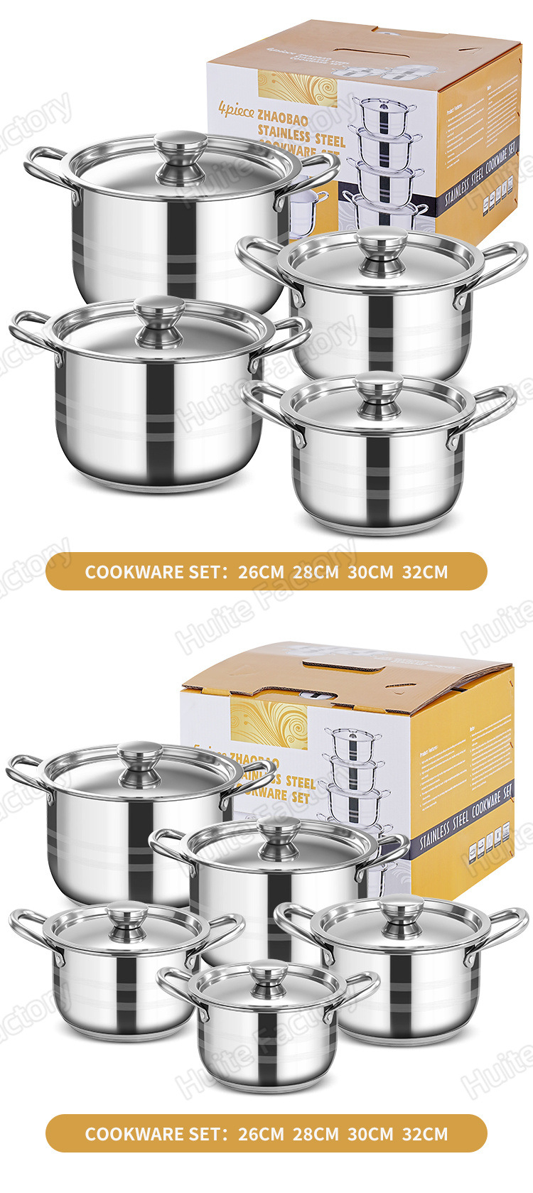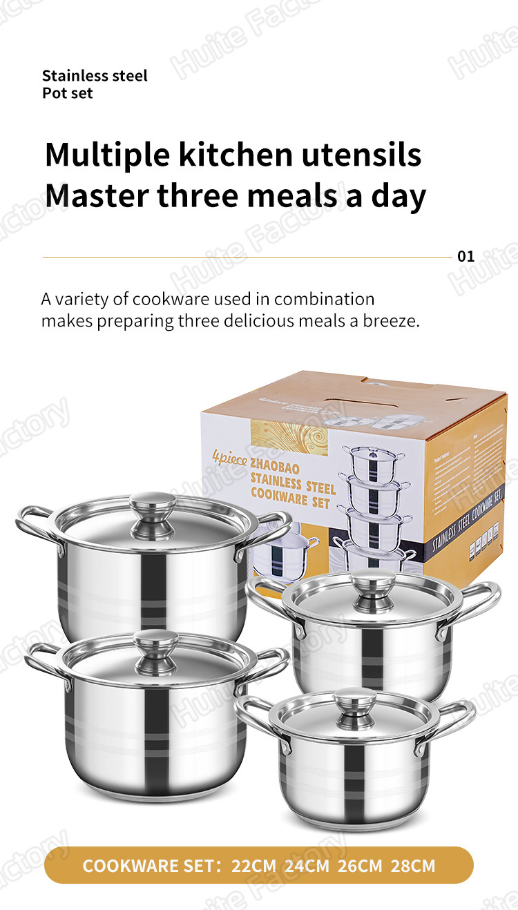 外贸出口不锈钢套锅钢柄汤锅四件套复底美式高锅烹饪炊具锅具套装