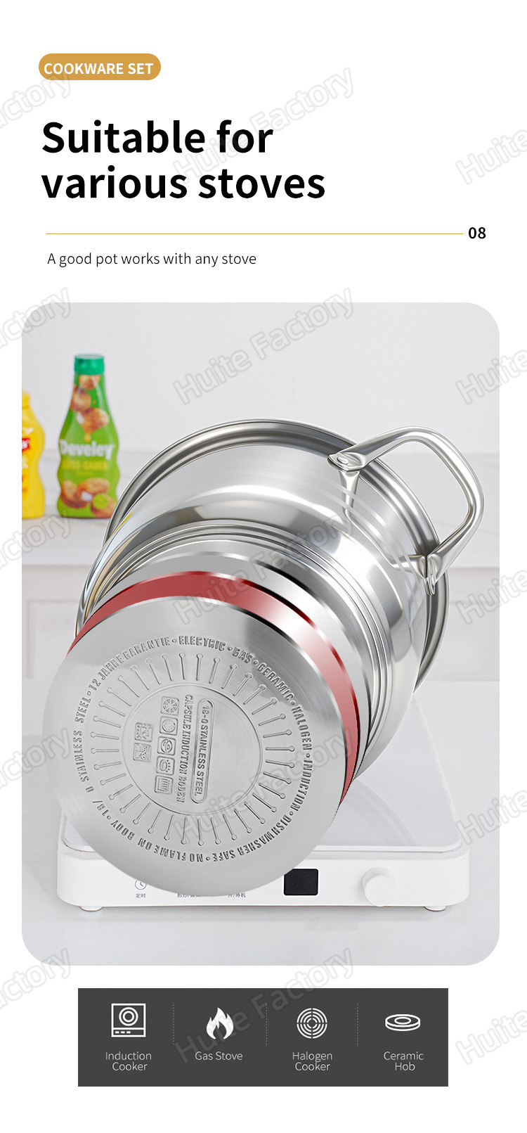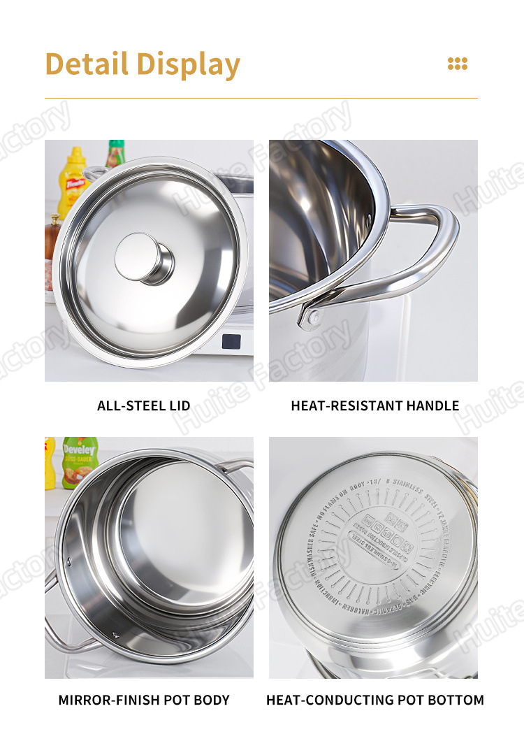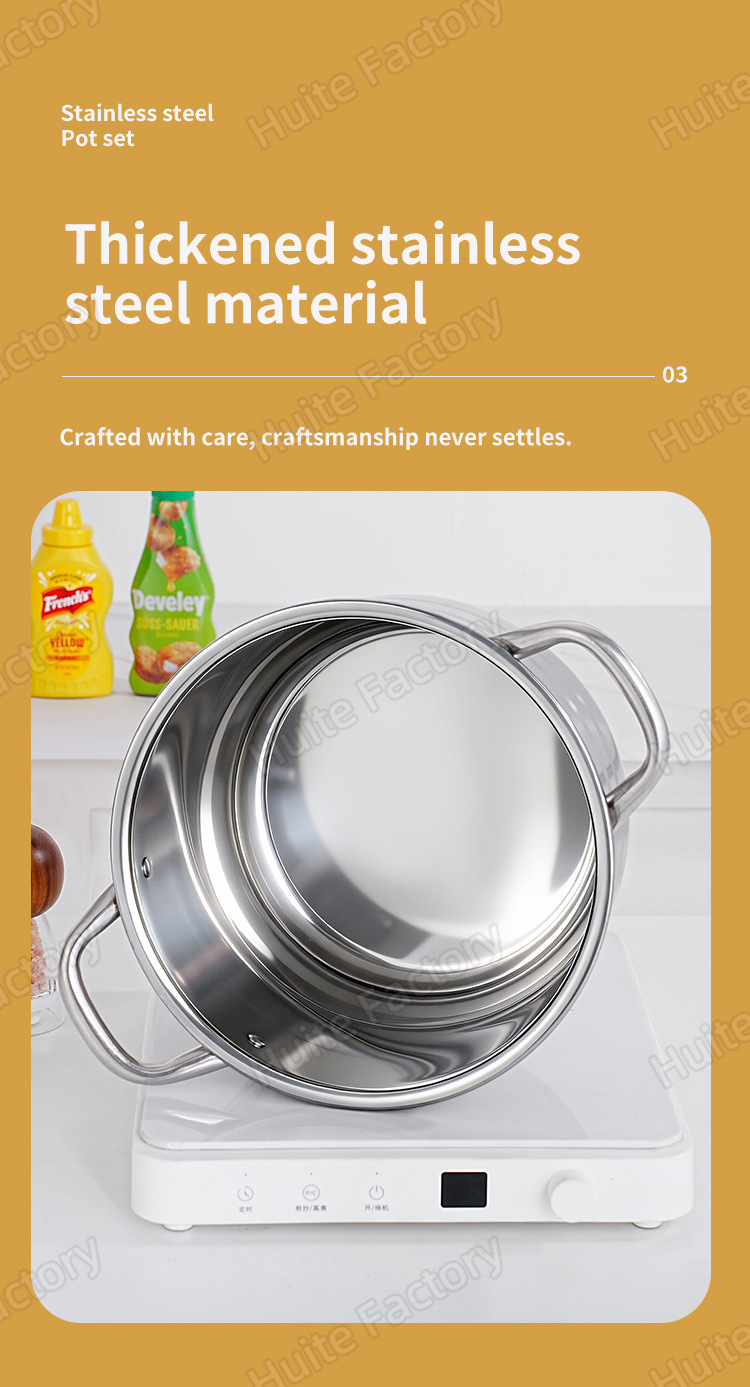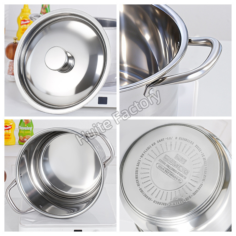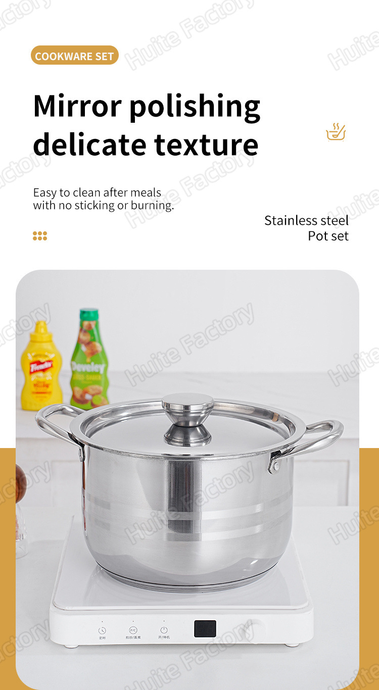 外贸出口不锈钢套锅钢柄汤锅四件套复底美式高锅烹饪炊具锅具套装