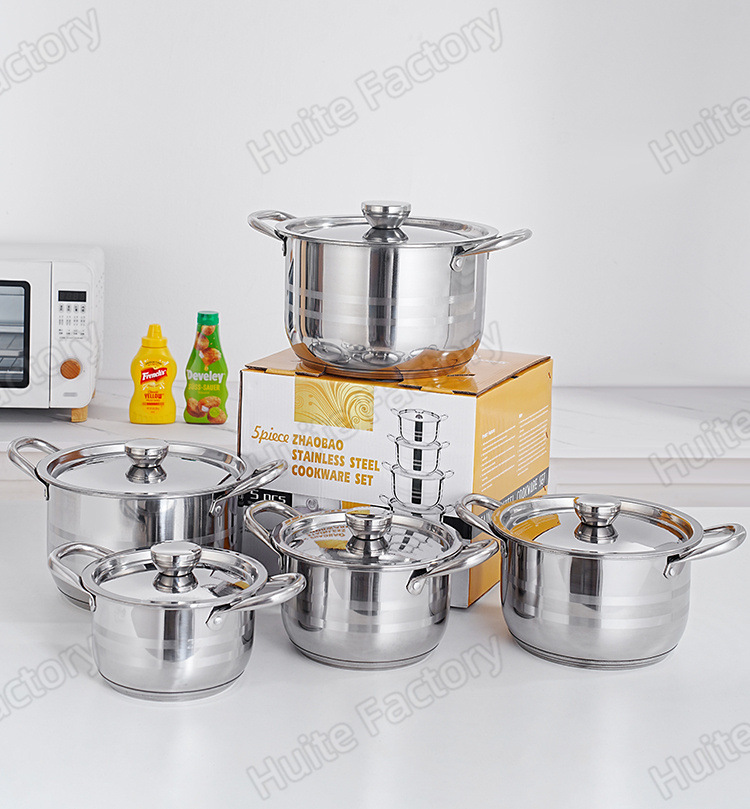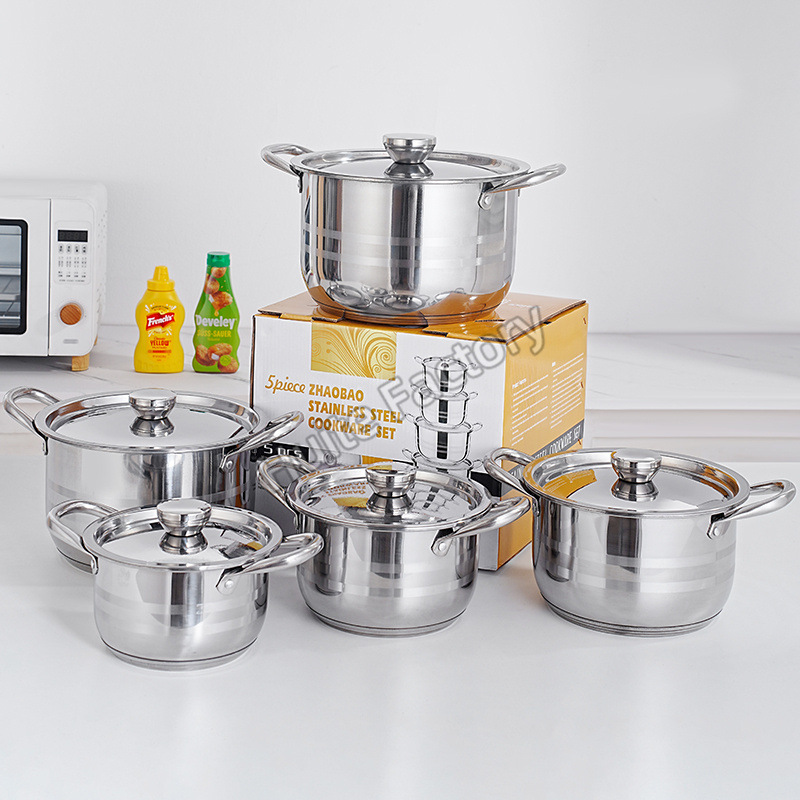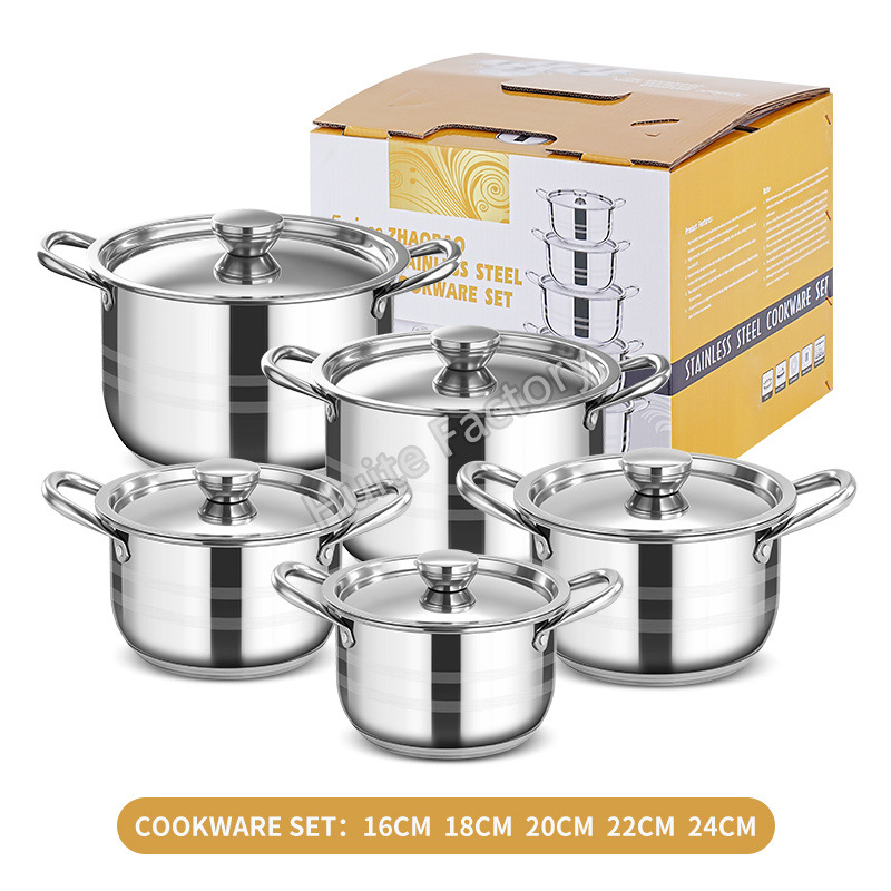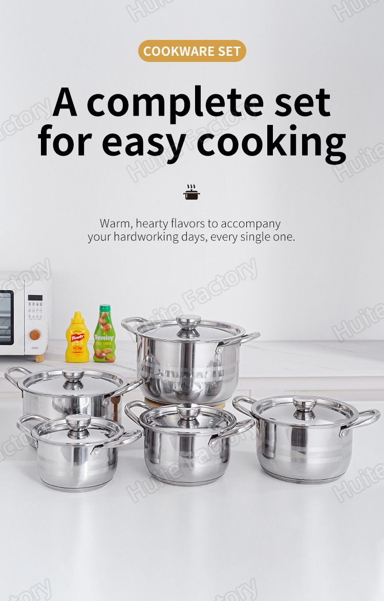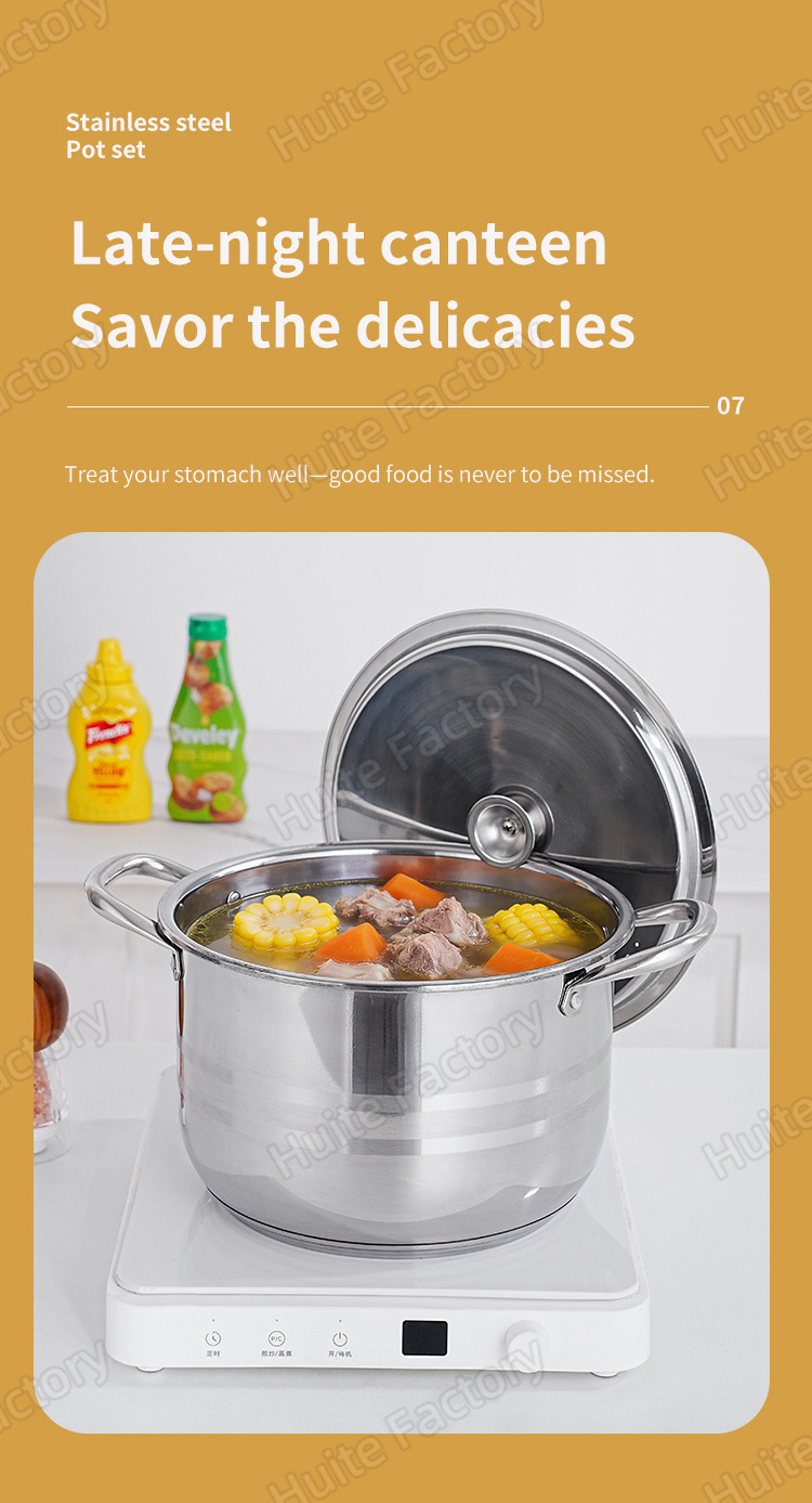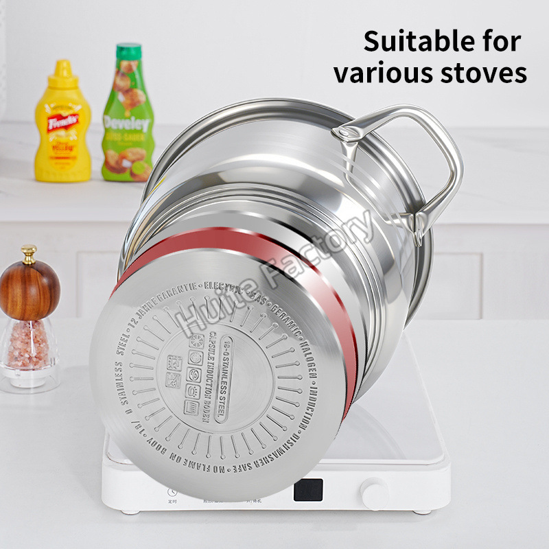 外贸出口不锈钢套锅钢柄汤锅四件套复底美式高锅烹饪炊具锅具套装