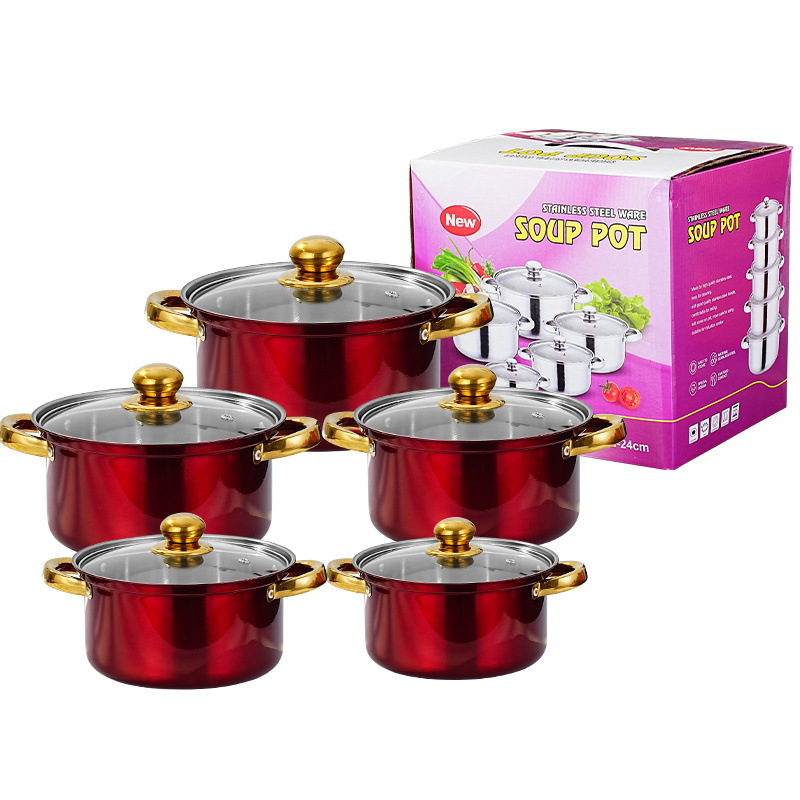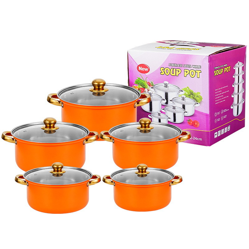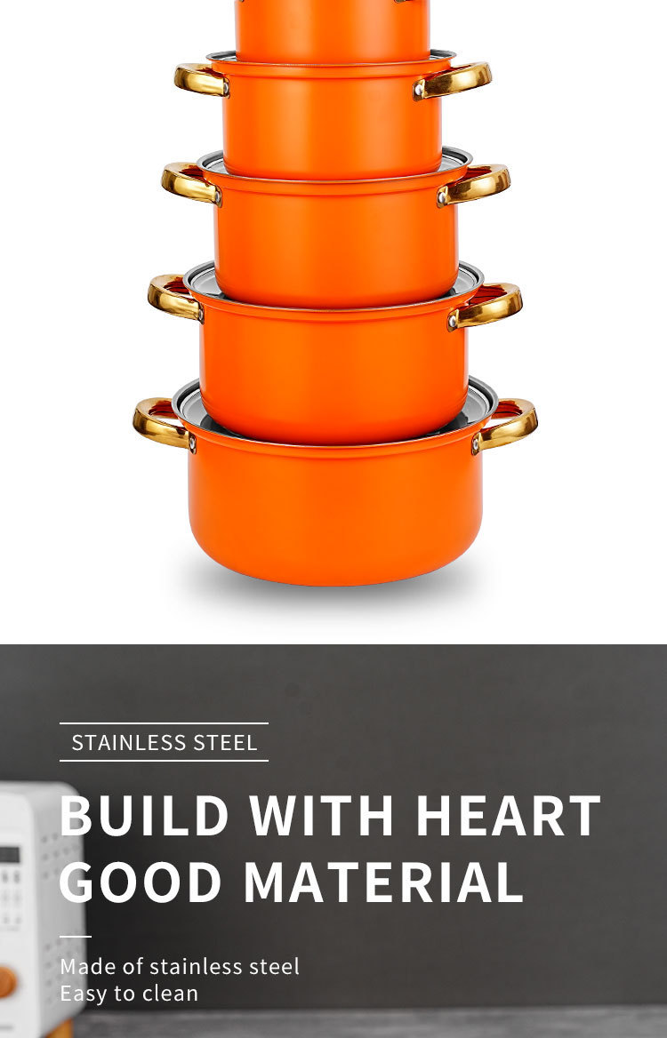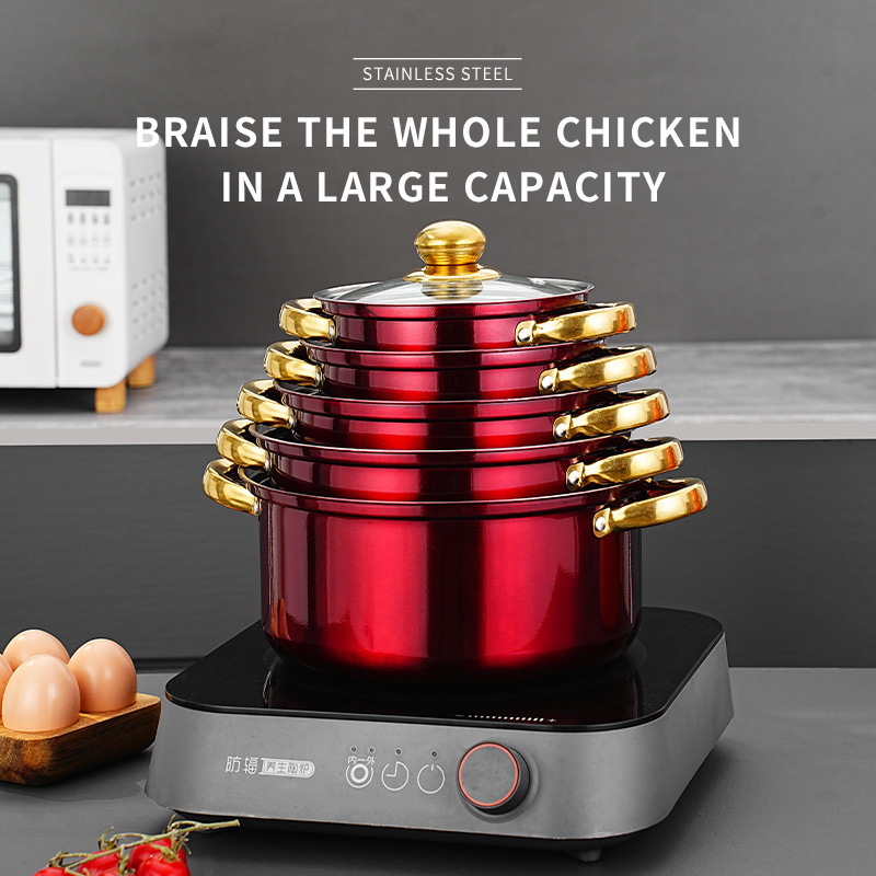 跨境 不锈钢锅具10件套烹饪锅cookware set汤锅厨房电磁炉通用pot