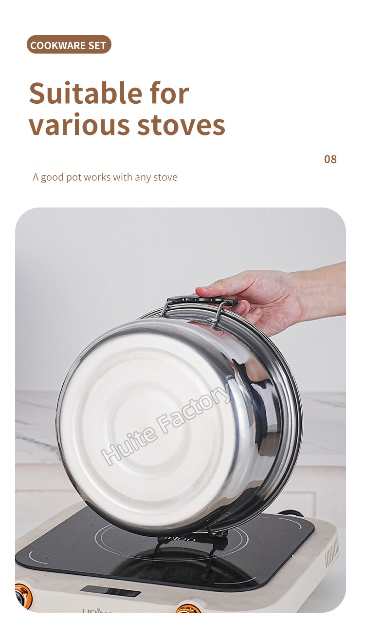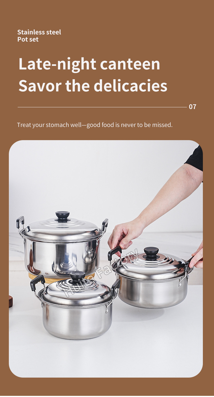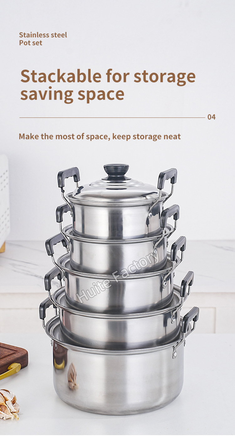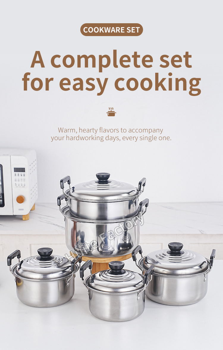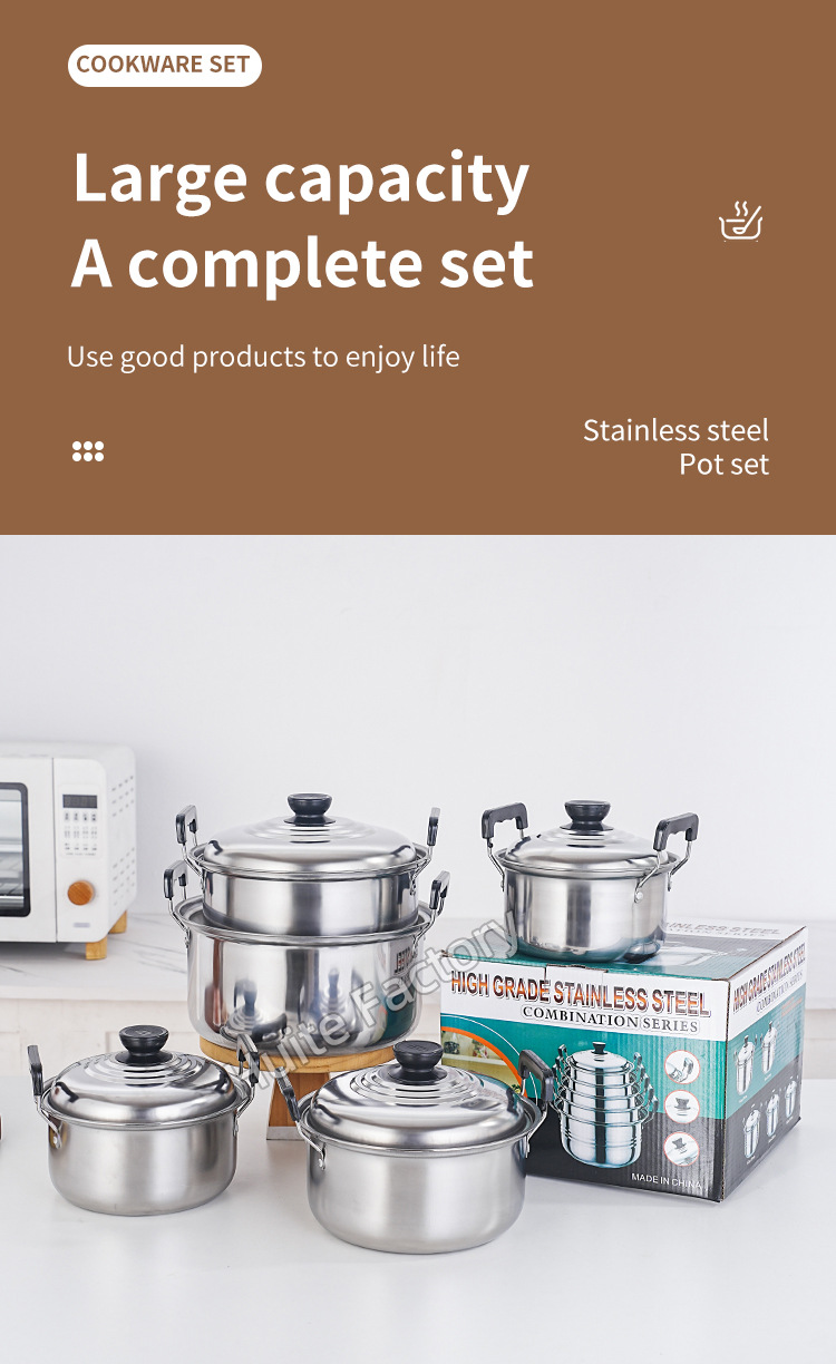 跨境不锈钢美式高锅10件套家用五件套装锅汤锅烹饪锅具组合potset