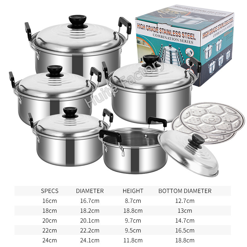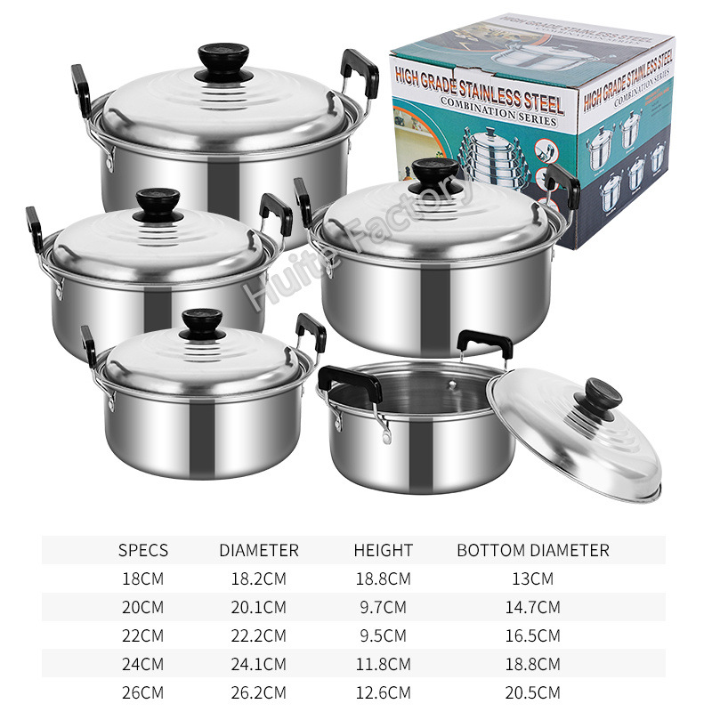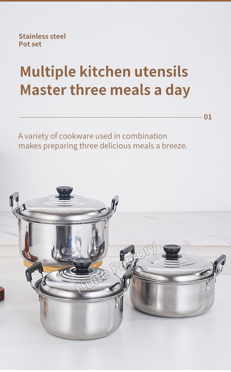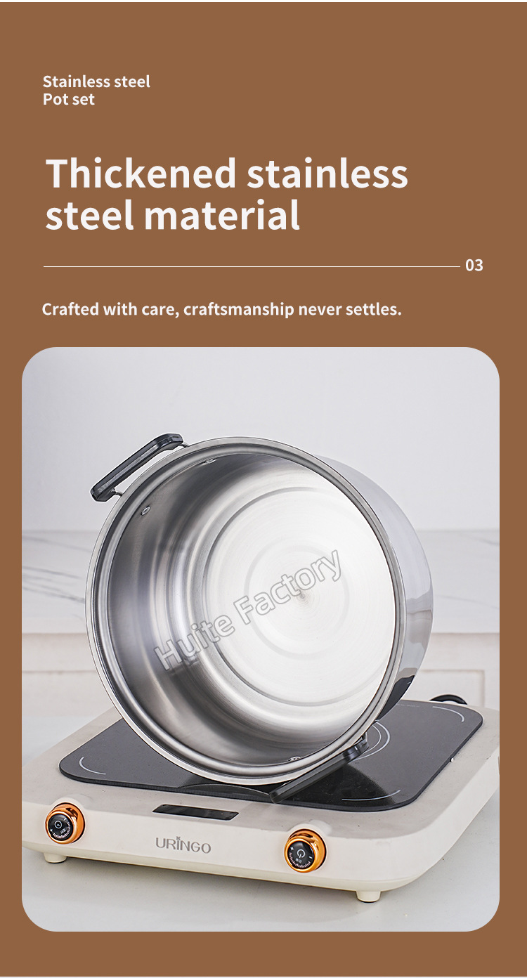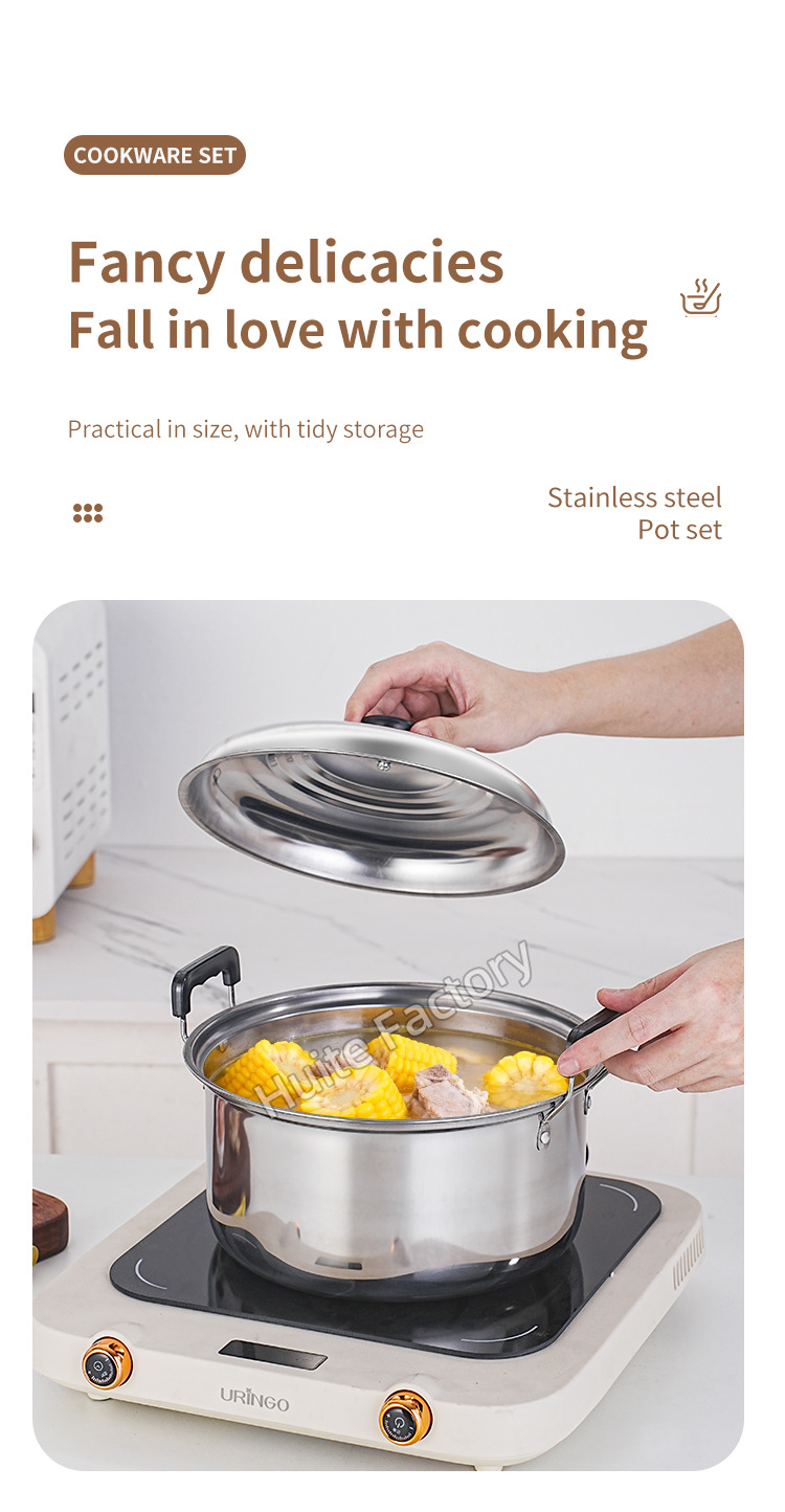 跨境不锈钢美式高锅10件套家用五件套装锅汤锅烹饪锅具组合potset