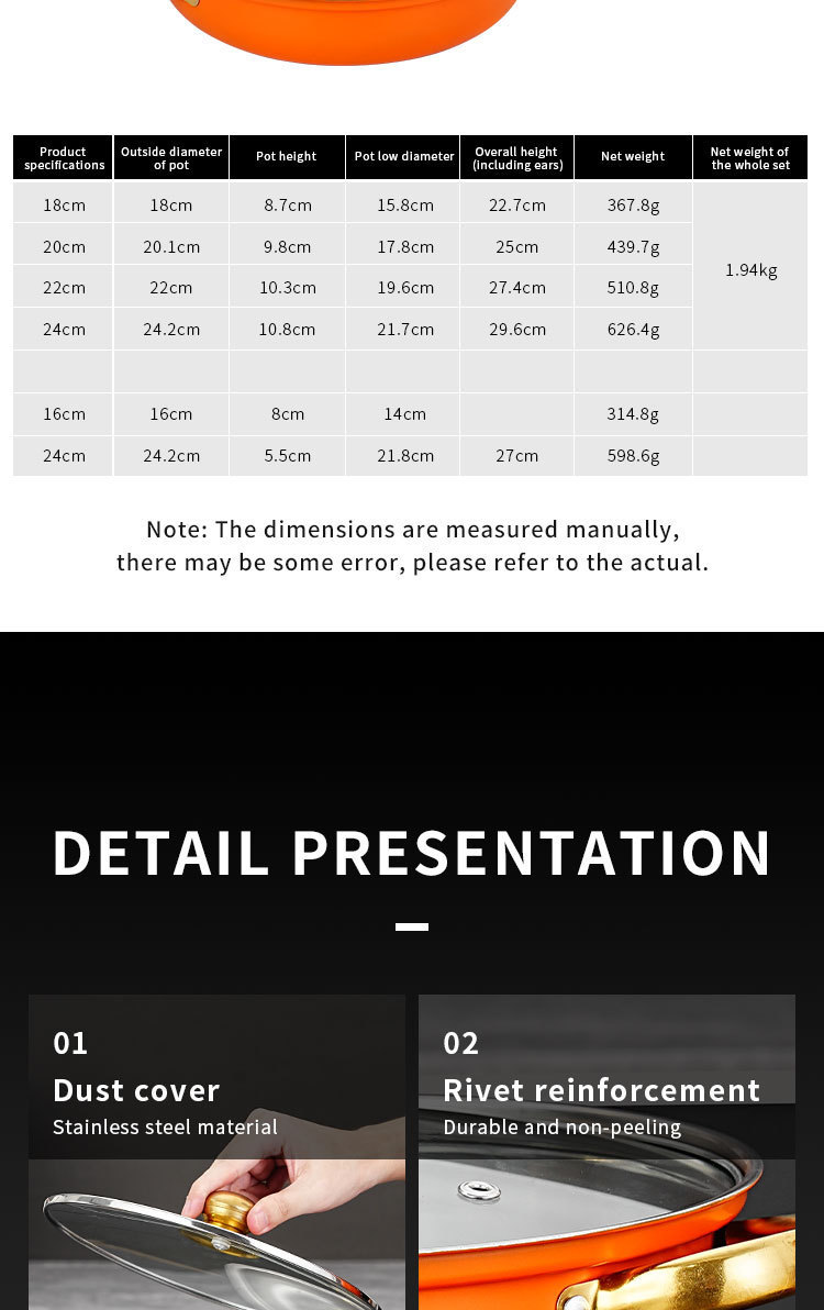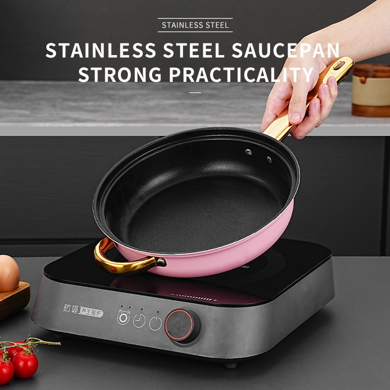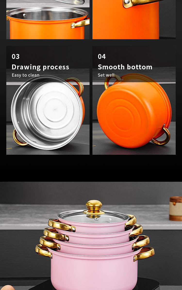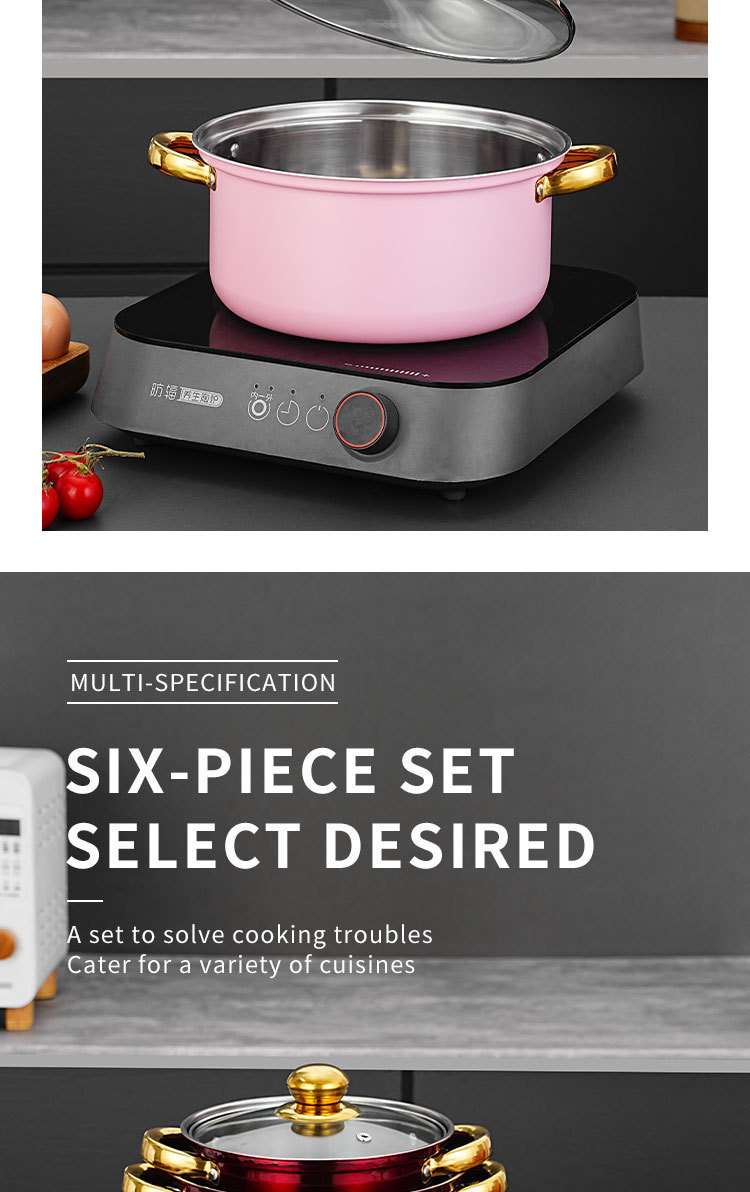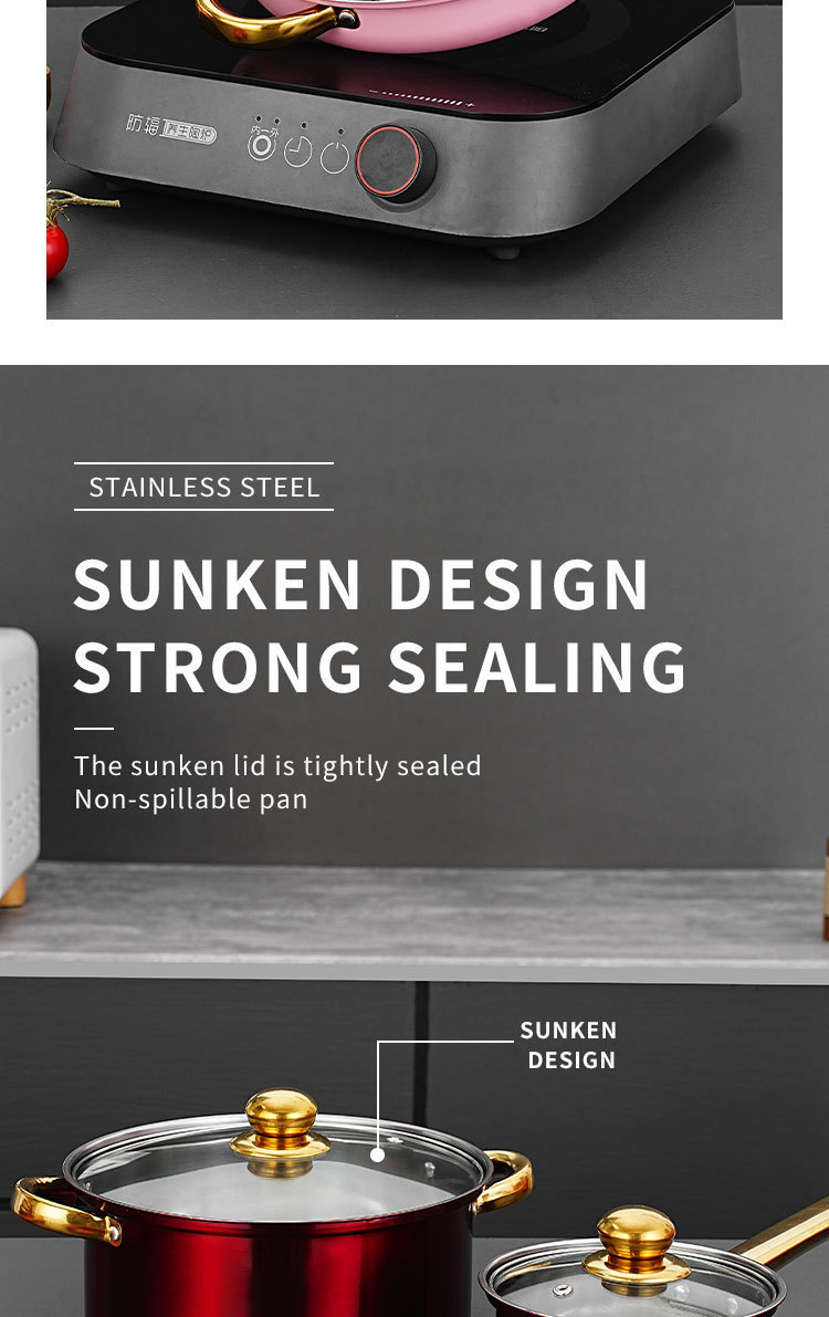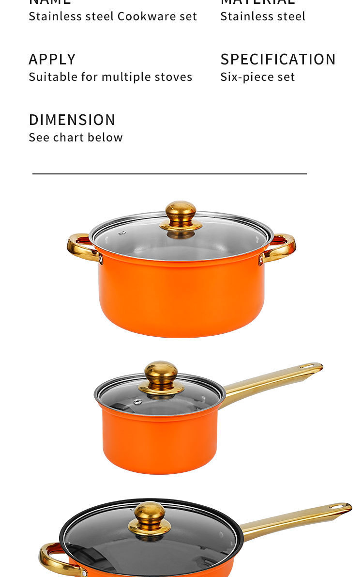 跨境专供不锈钢12件金色锅具套装汤锅煎锅奶锅cooking pot set