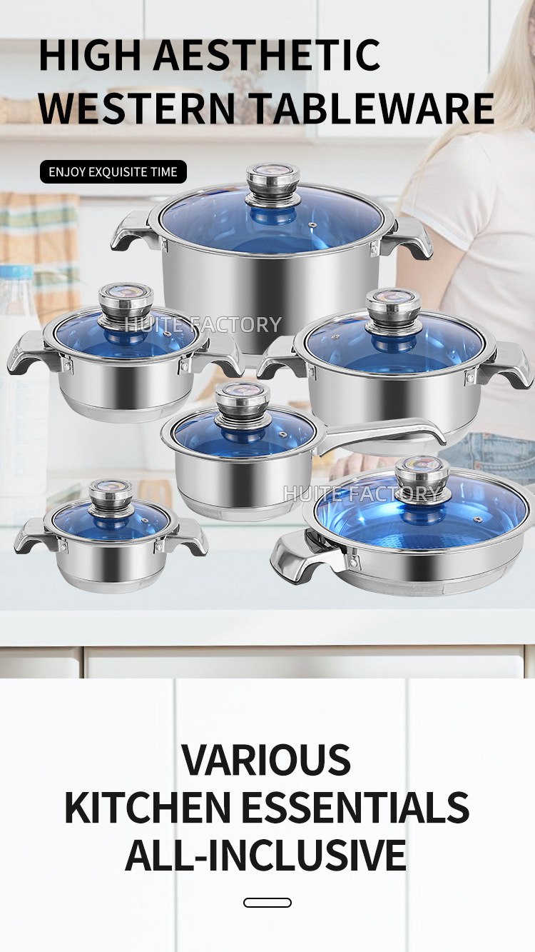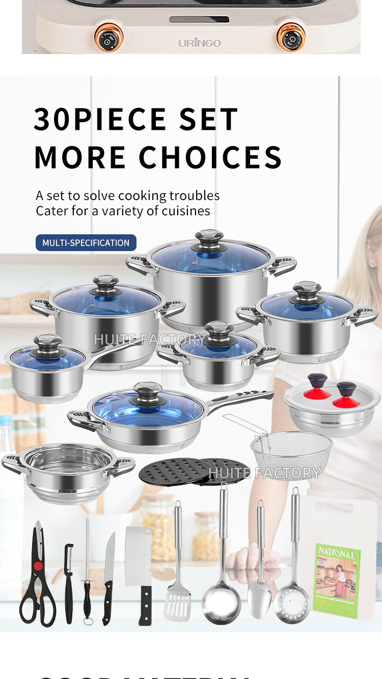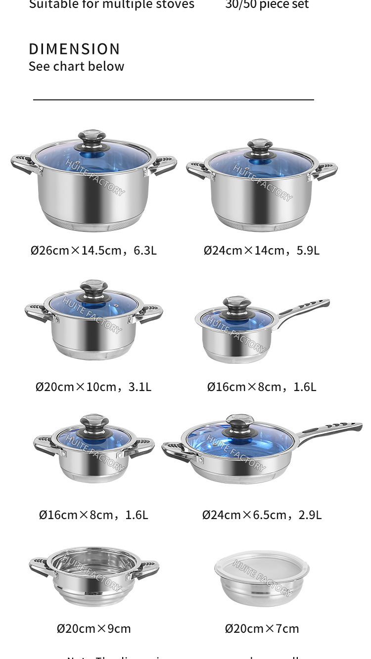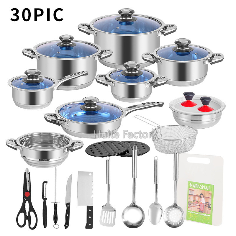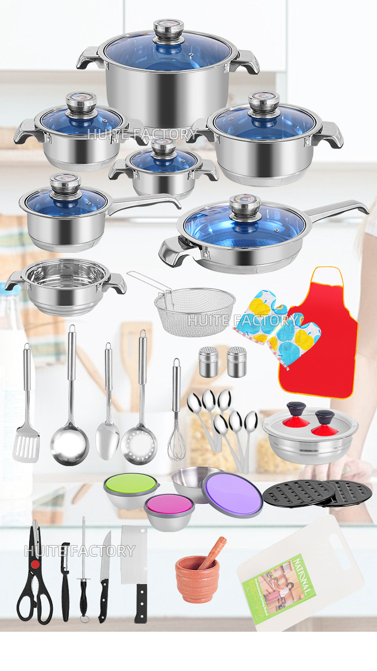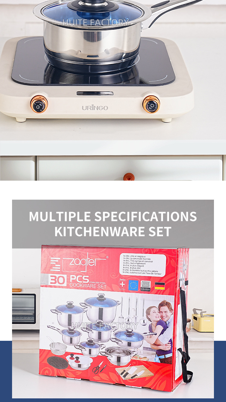 cross-border stainless steel cookware set kitchenware 30/50/100pcs pot cookware cooking pot set