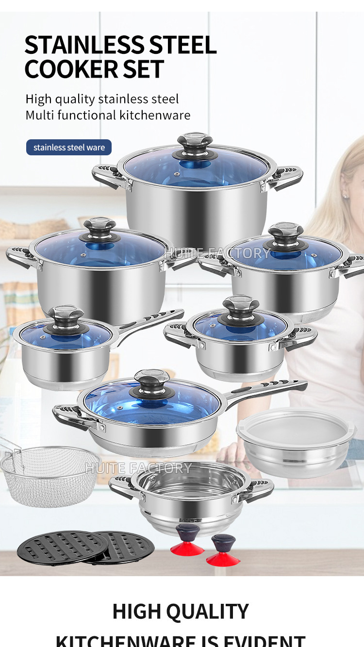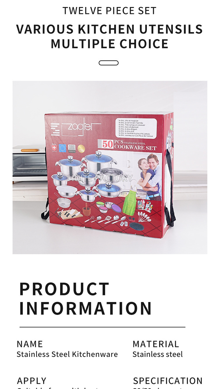 跨境不锈钢套装锅kitchenware30/50/100pcs pot炊具烹饪锅具套装