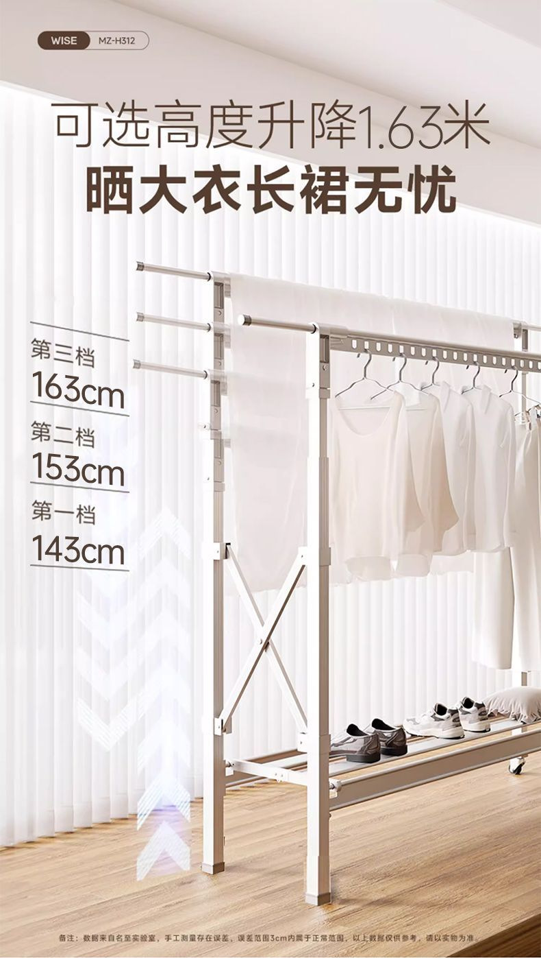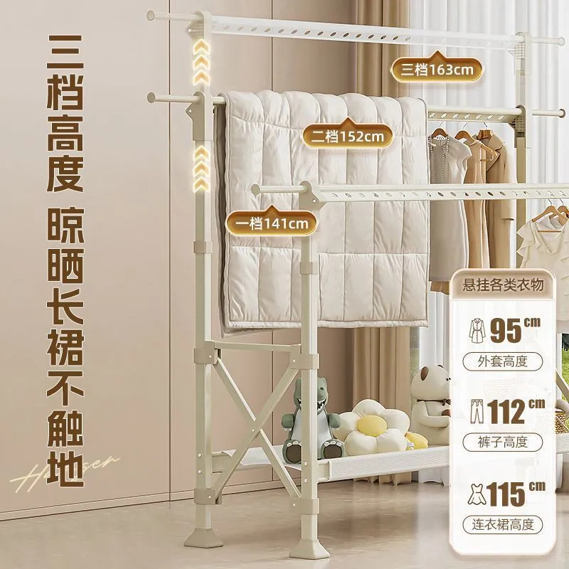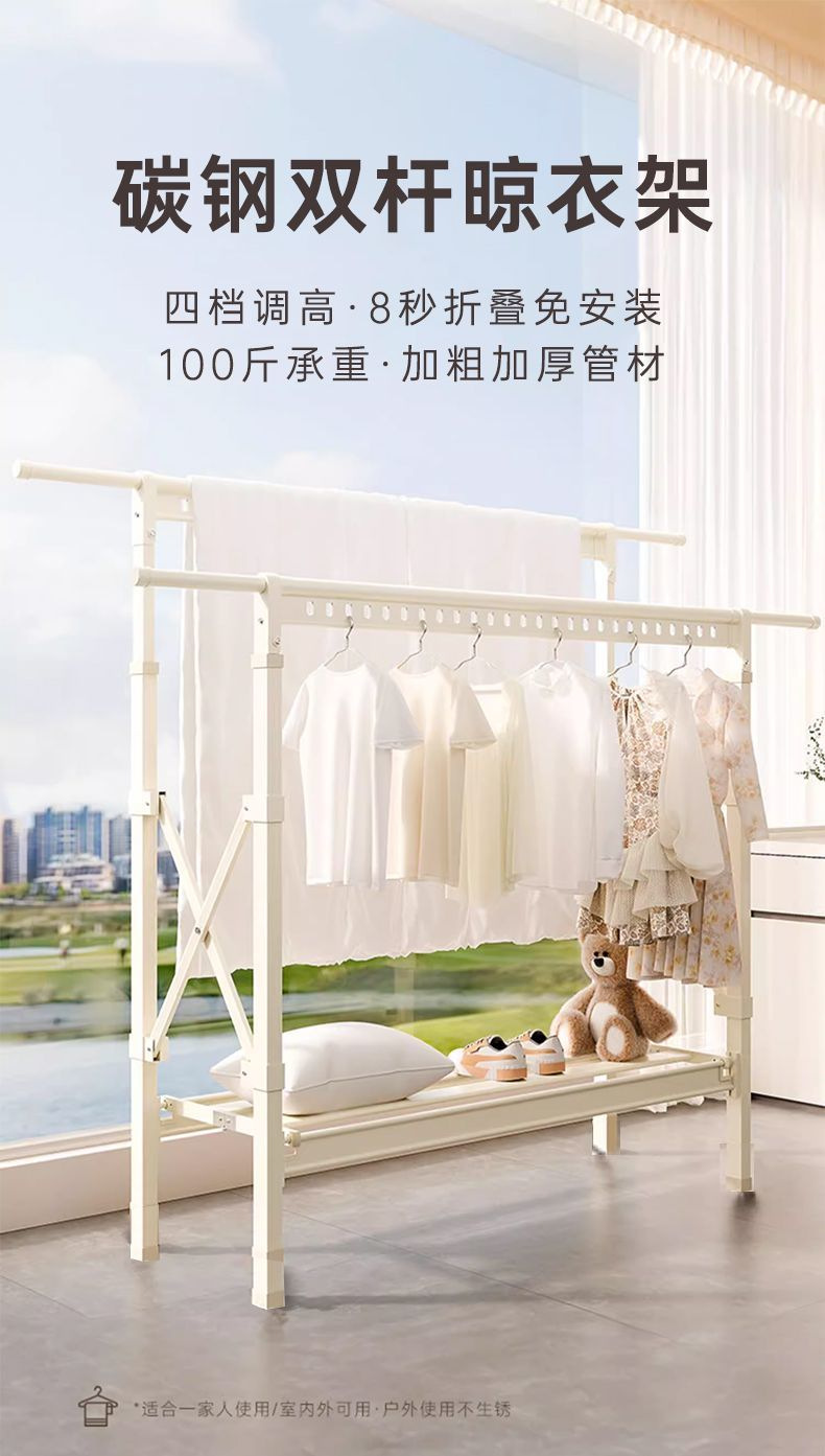 厂家直发落地式升降晾衣架家用阳台户外晾晒折叠稳固承重加厚防风