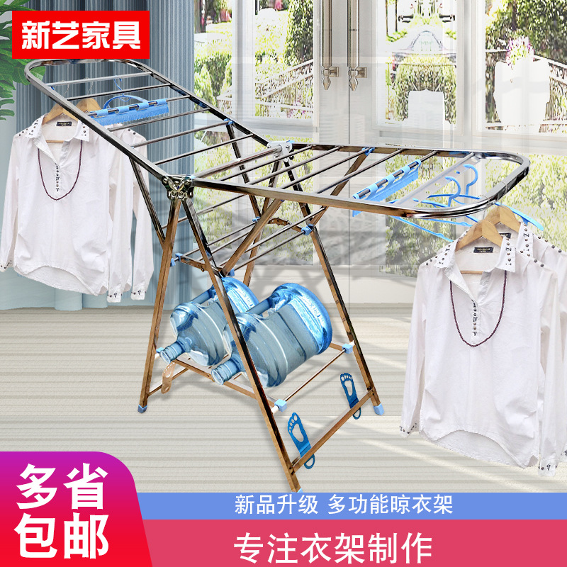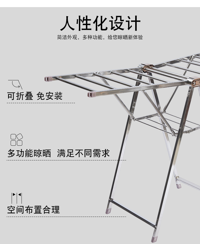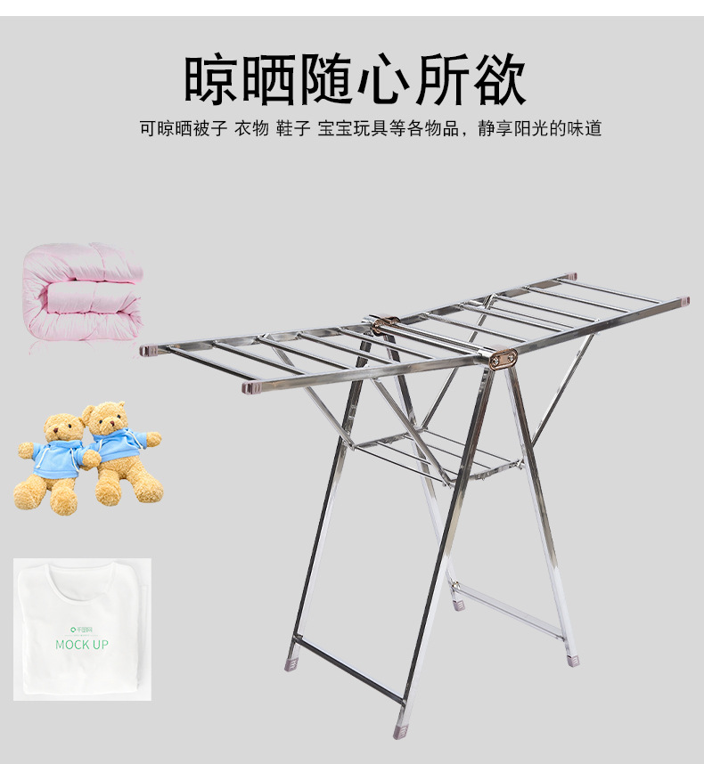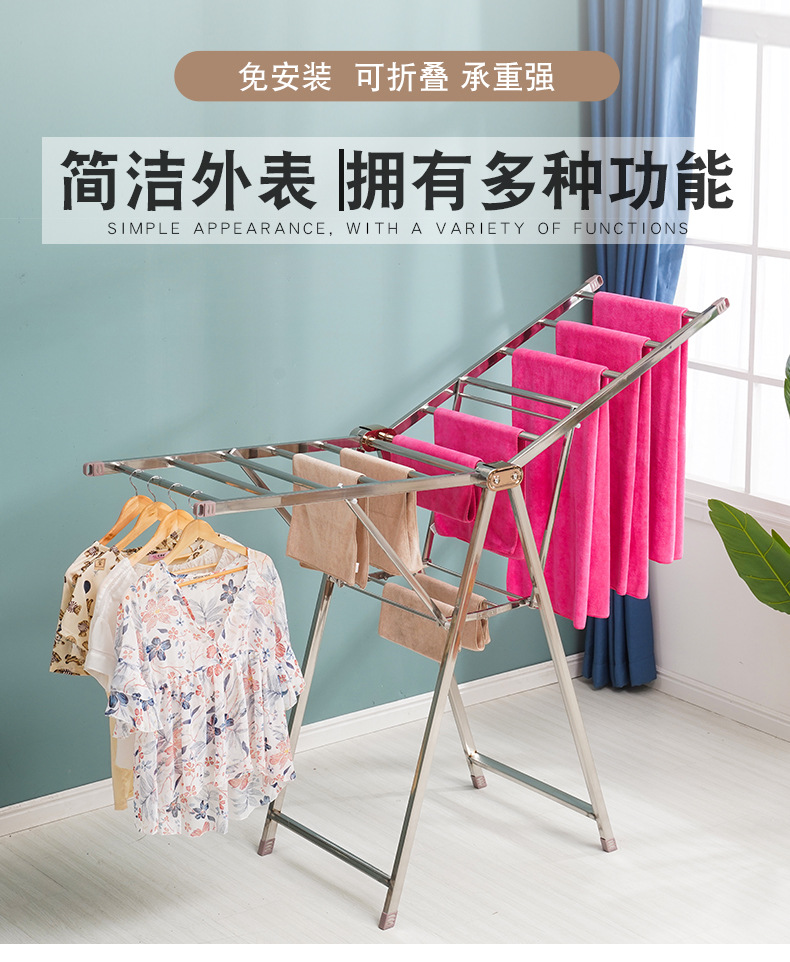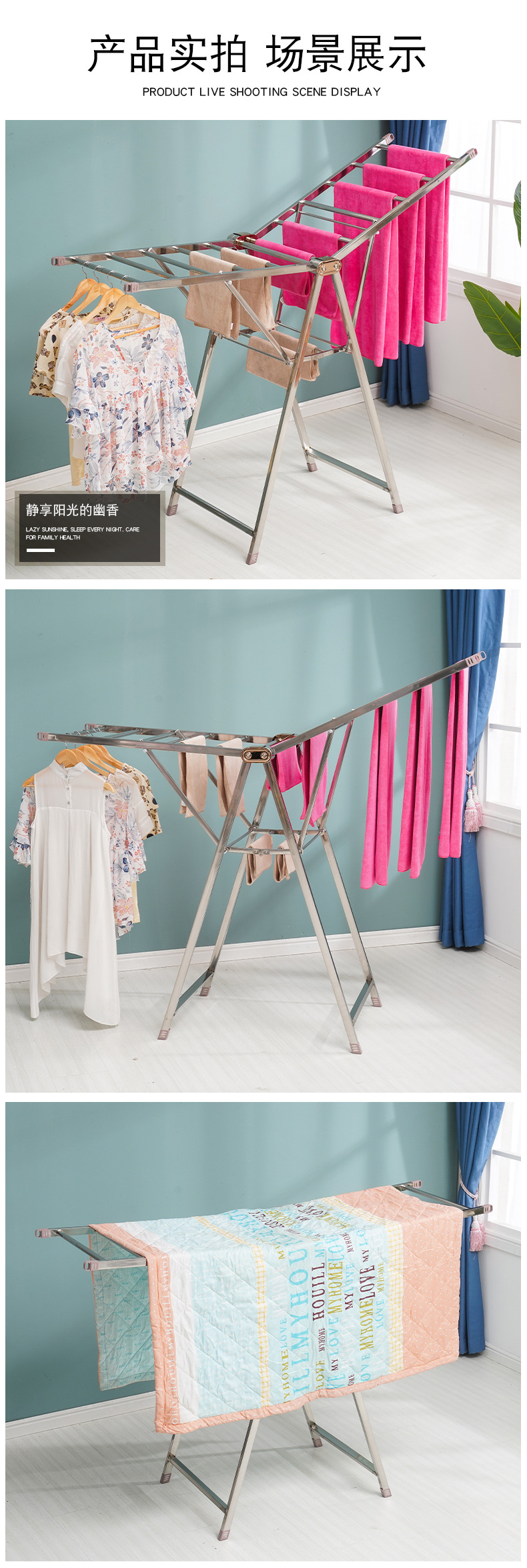 落地式折叠晾衣架家用简易不锈钢户外晒被架公寓阳台不锈钢晾衣架
