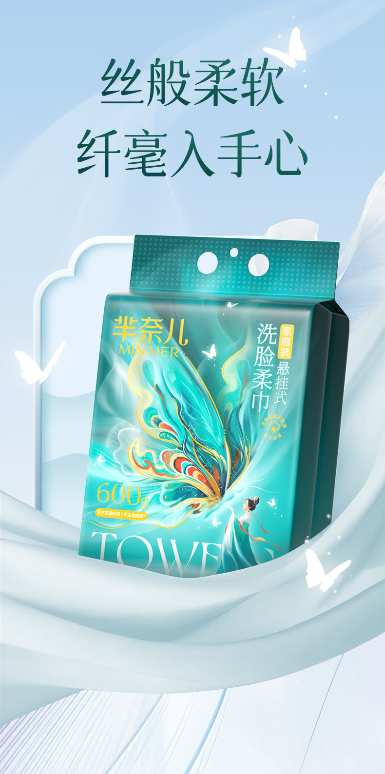 芈奈儿洗脸巾批发梁祝600g大号加厚悬挂式抽取式一次性洁面擦脸巾