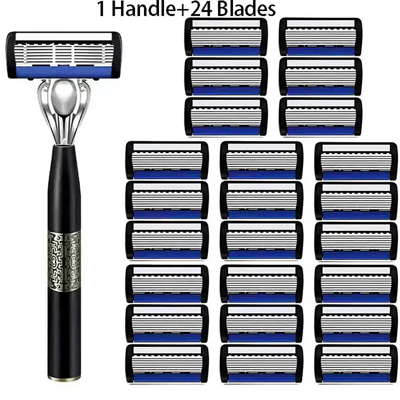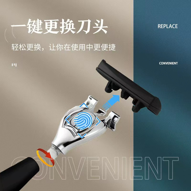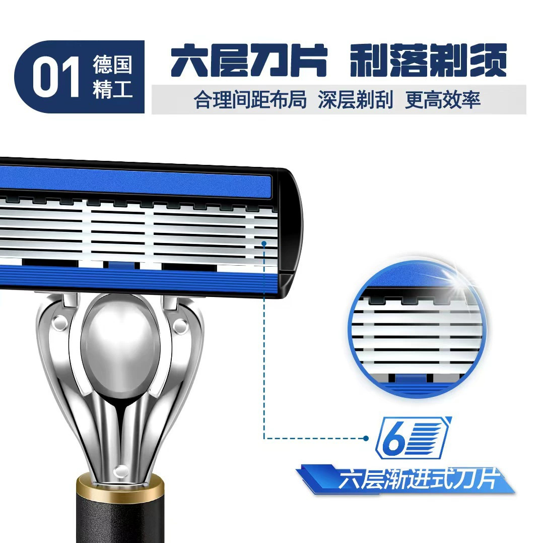 中国风手动刮胡刀六层刀片 金属刀架备用刀头 男士专用剃须刀批发