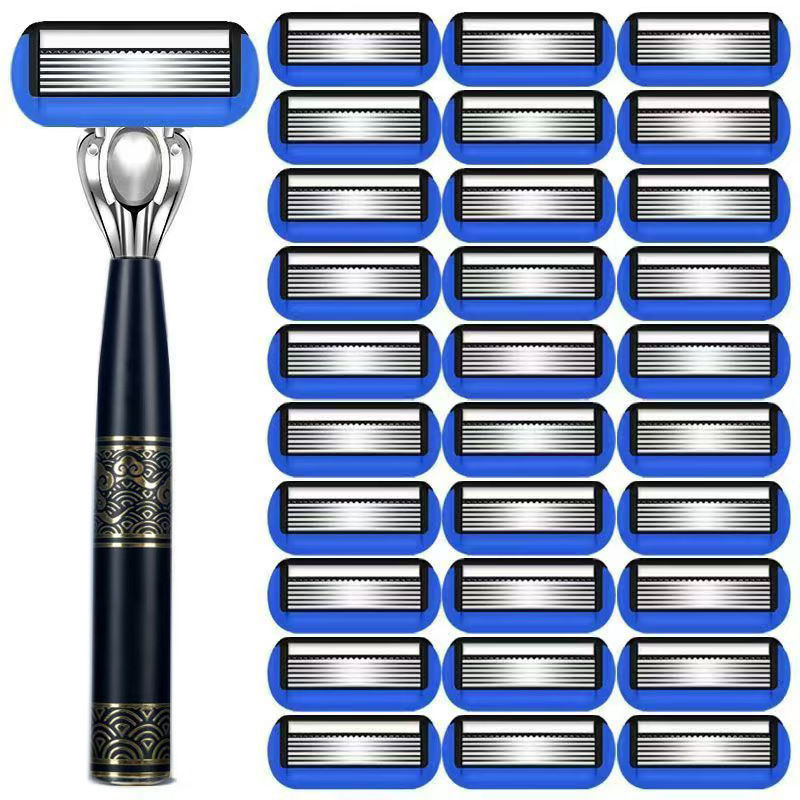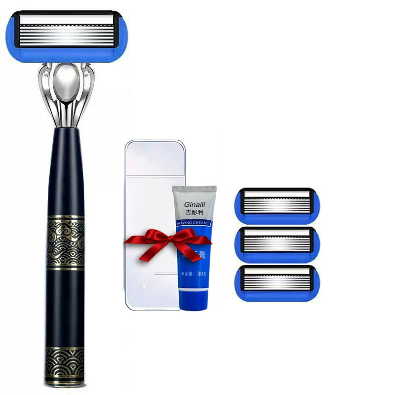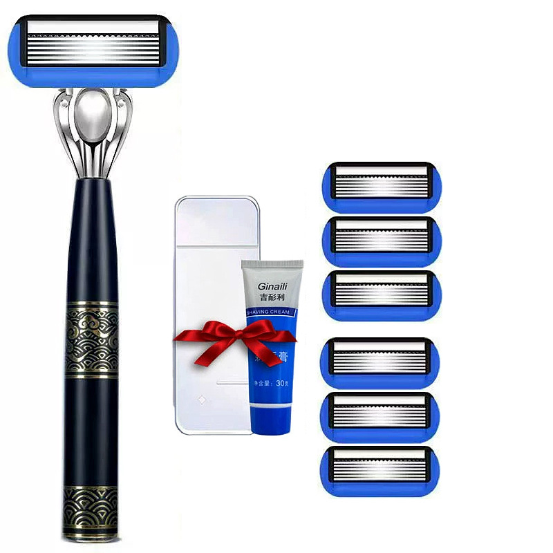 跨境7层刮胡刀手动 德国精工中国风金属刀柄 男士新款剃须刀批发
