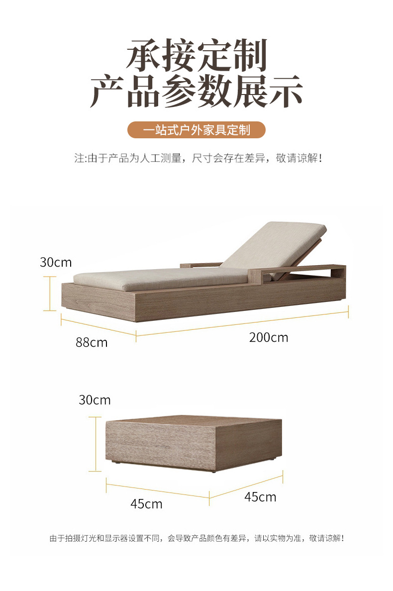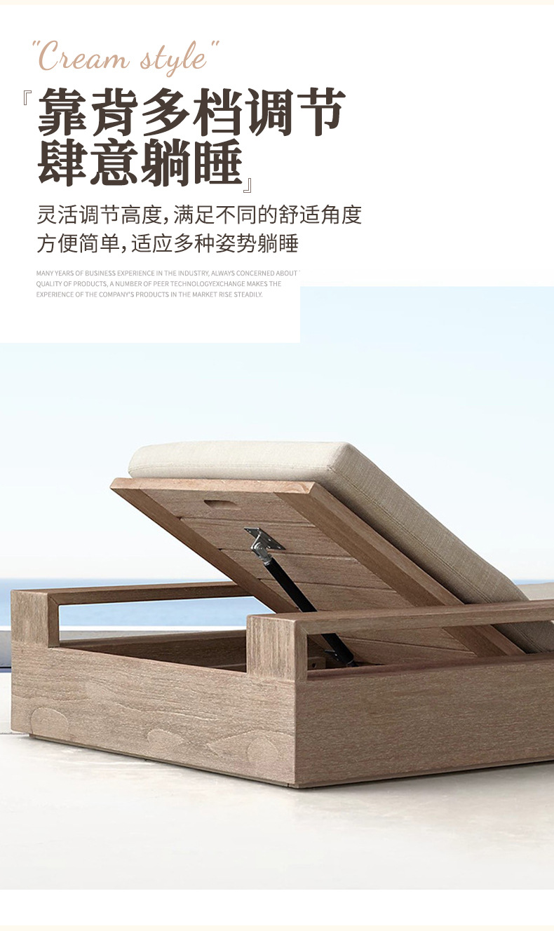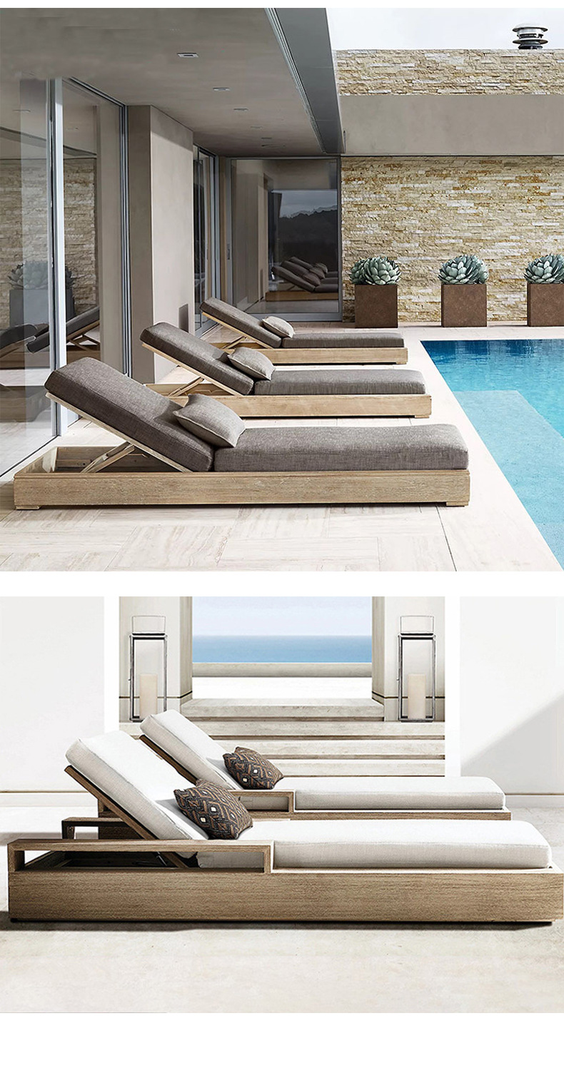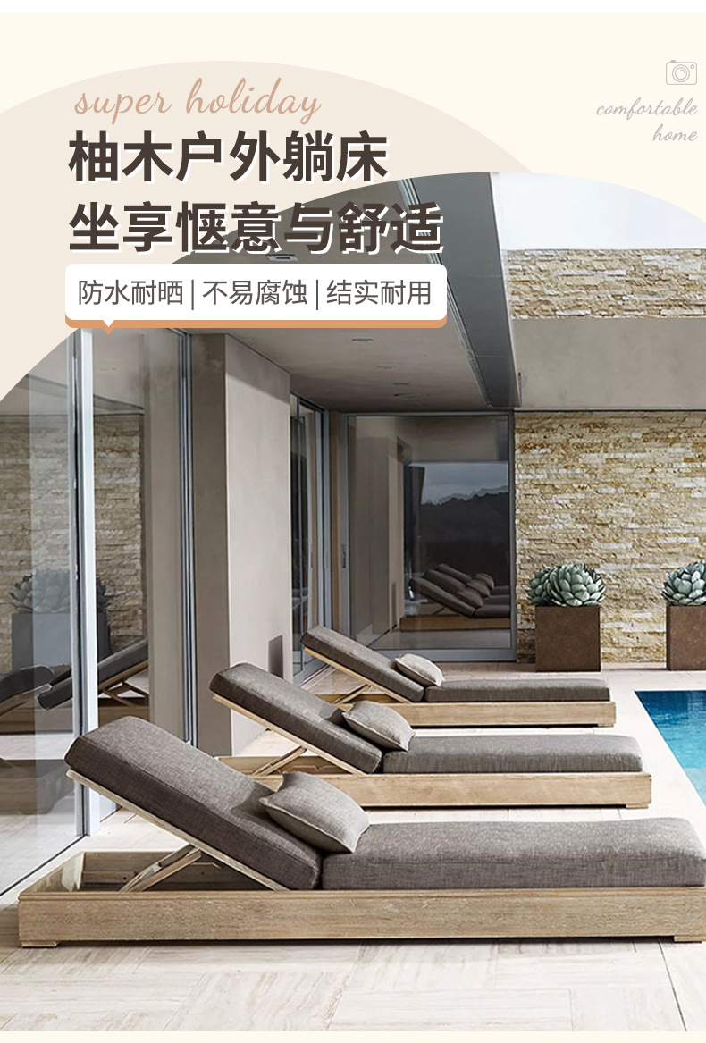 户外柚木躺床北欧实木庭院防腐露台防水防晒休闲别墅躺椅家具组合