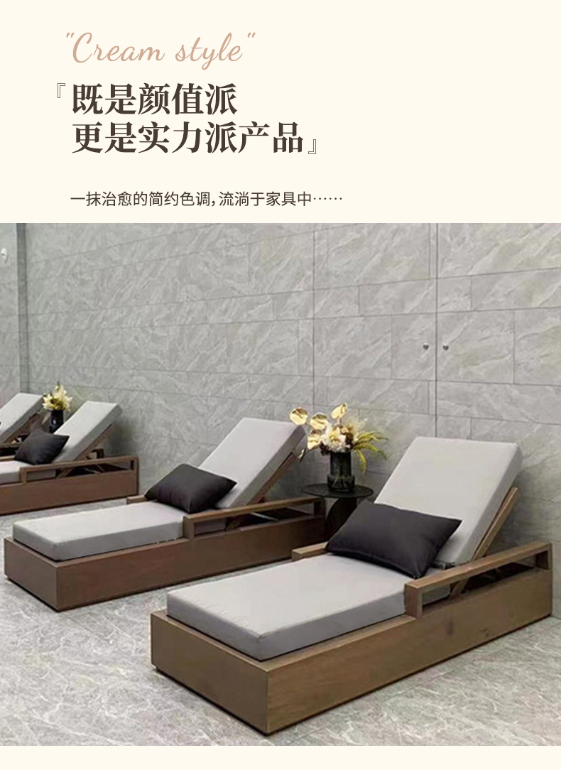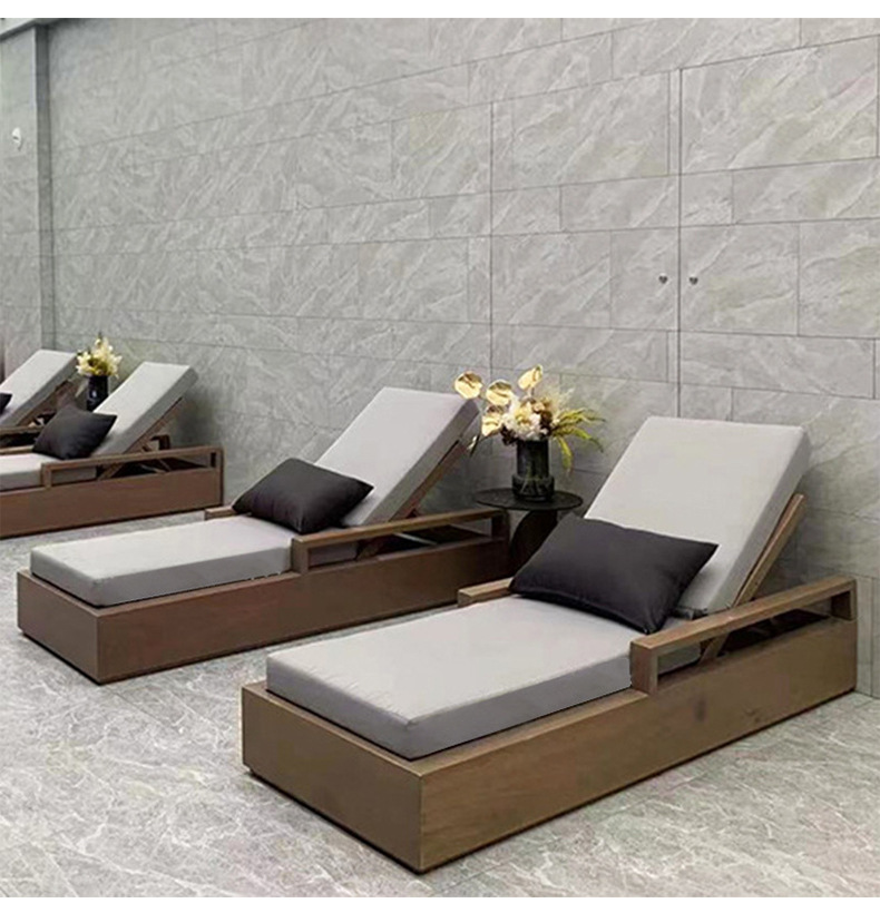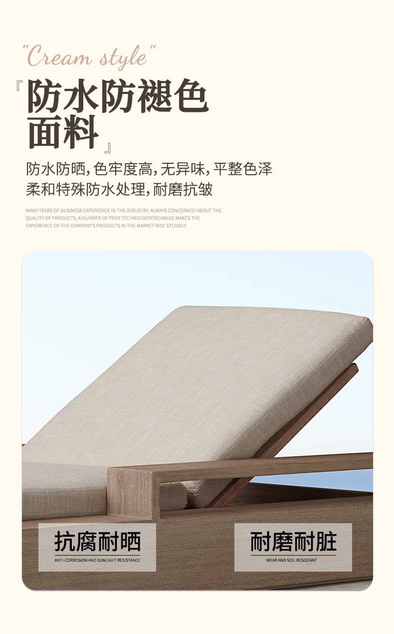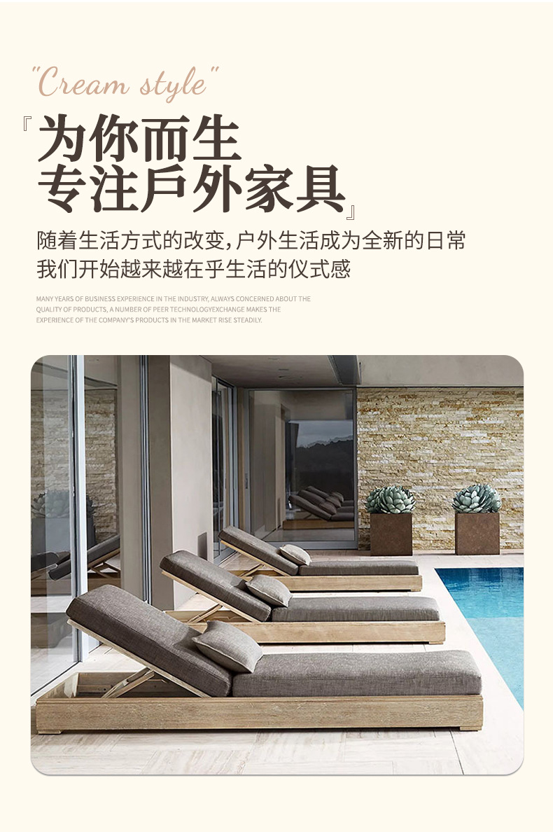 户外柚木躺床北欧实木庭院防腐露台防水防晒休闲别墅躺椅家具组合
