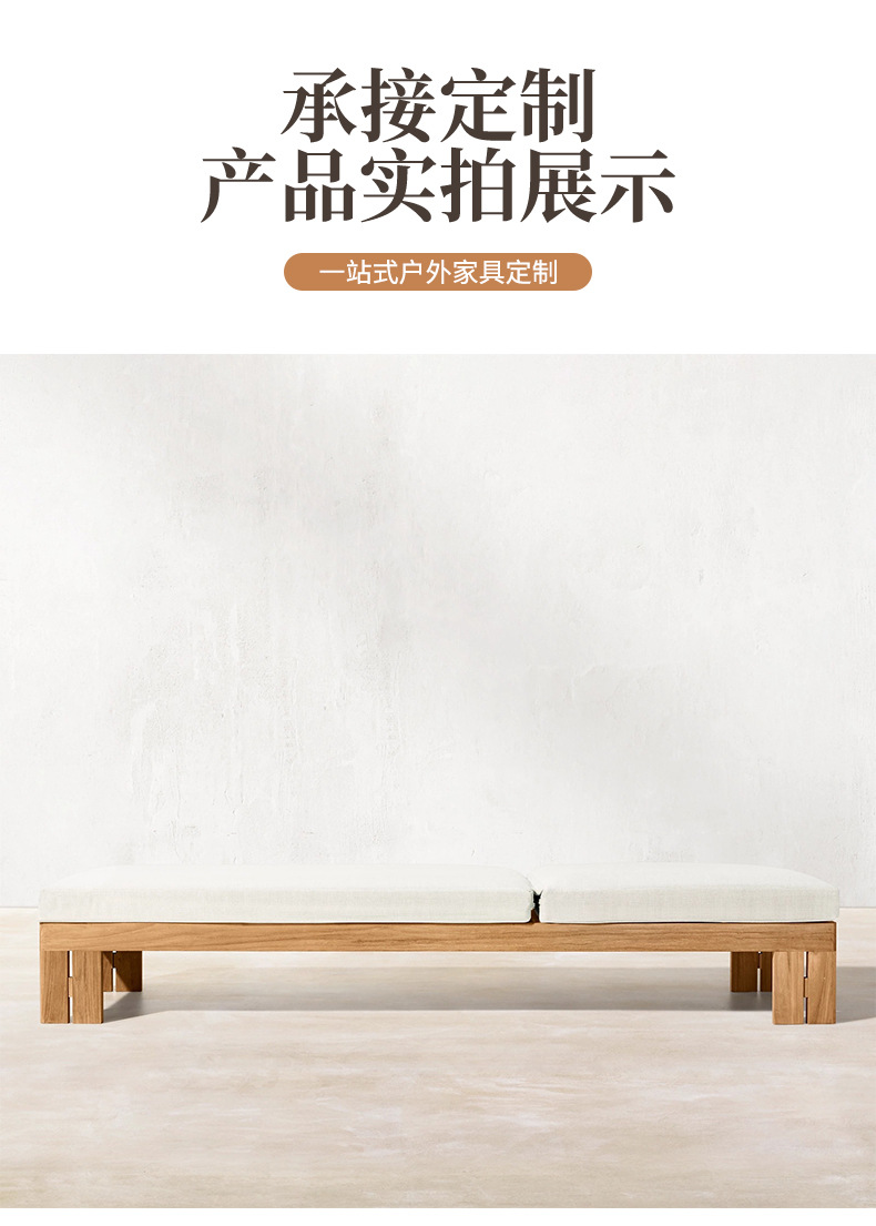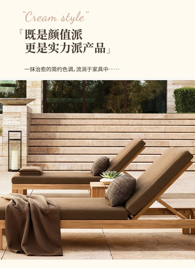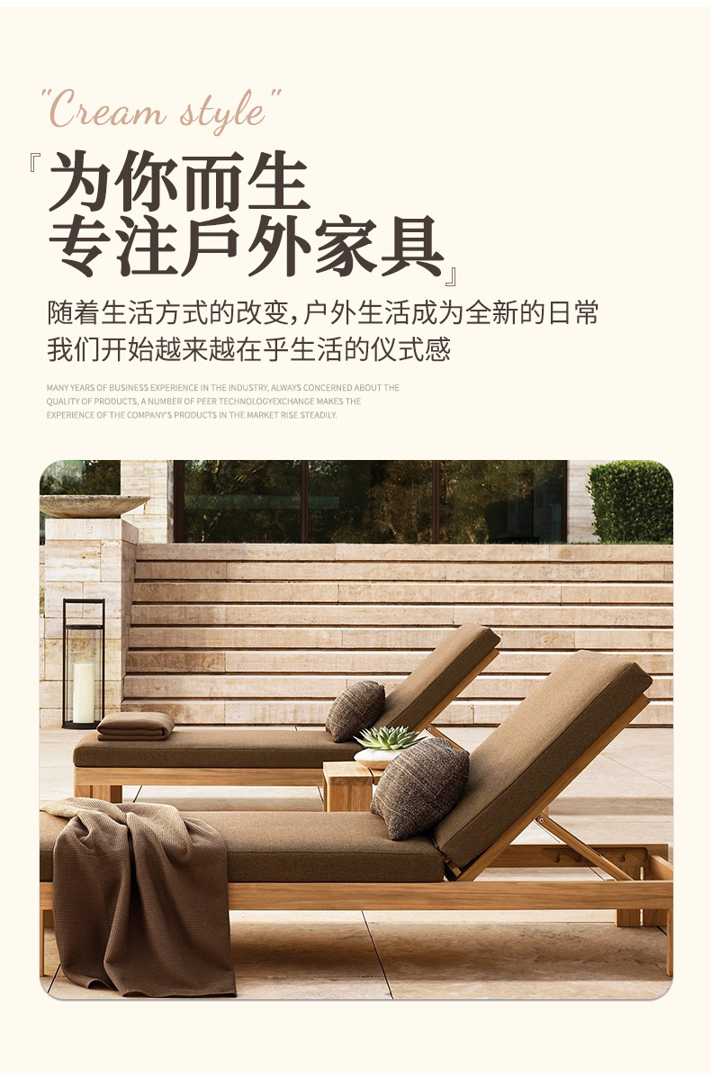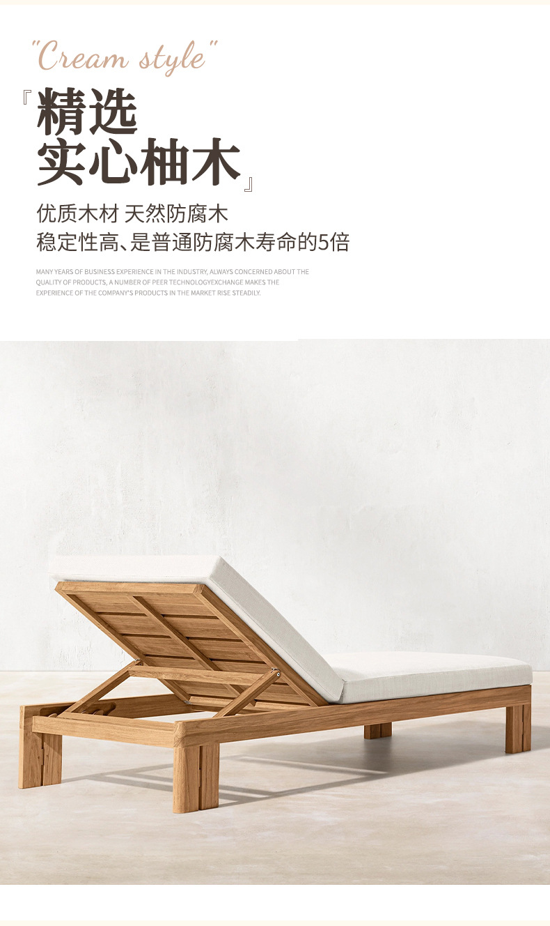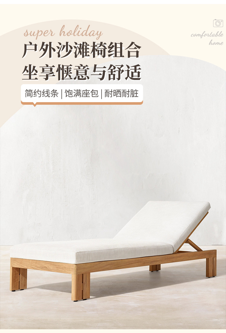 户外躺床泳池沙滩躺椅庭院花园露天阳台防晒柚木海边沙滩椅全实木