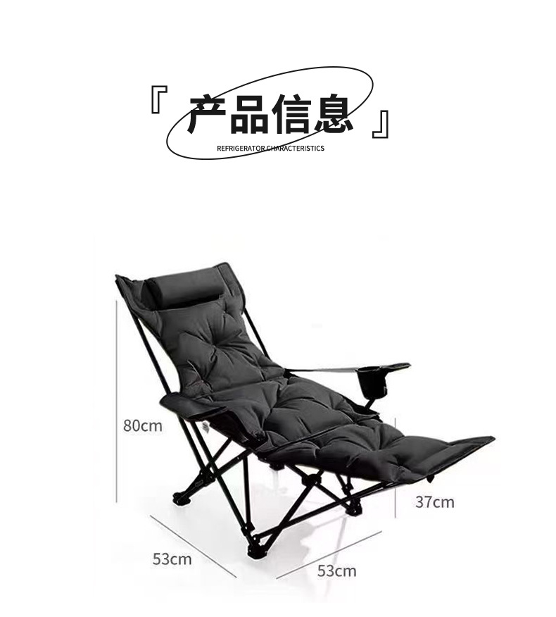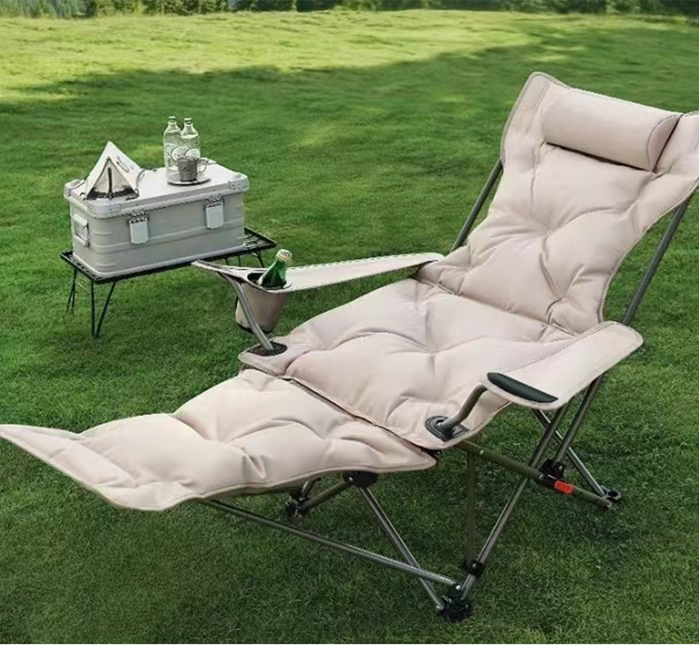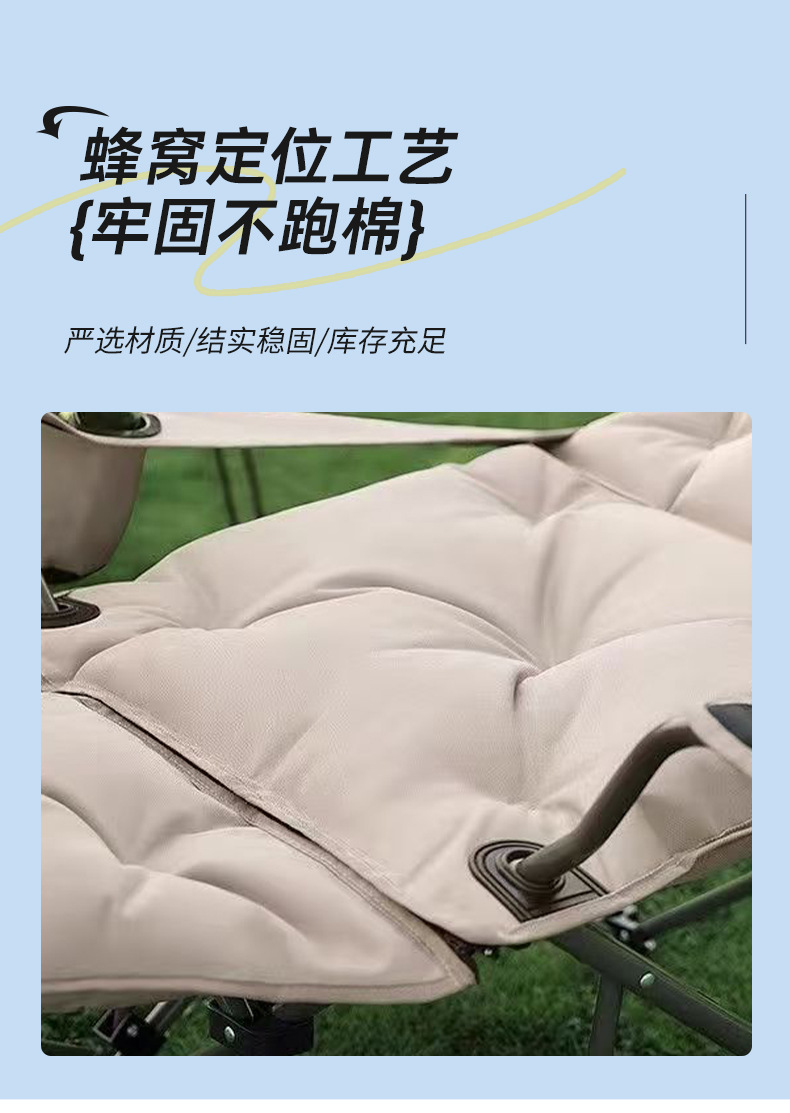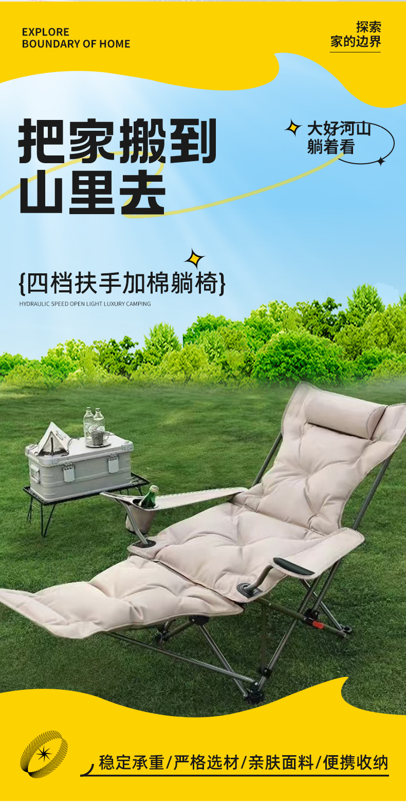 户外加棉折叠椅带腿托扶手躺椅四档可调节休闲椅子加棉带扶手躺椅