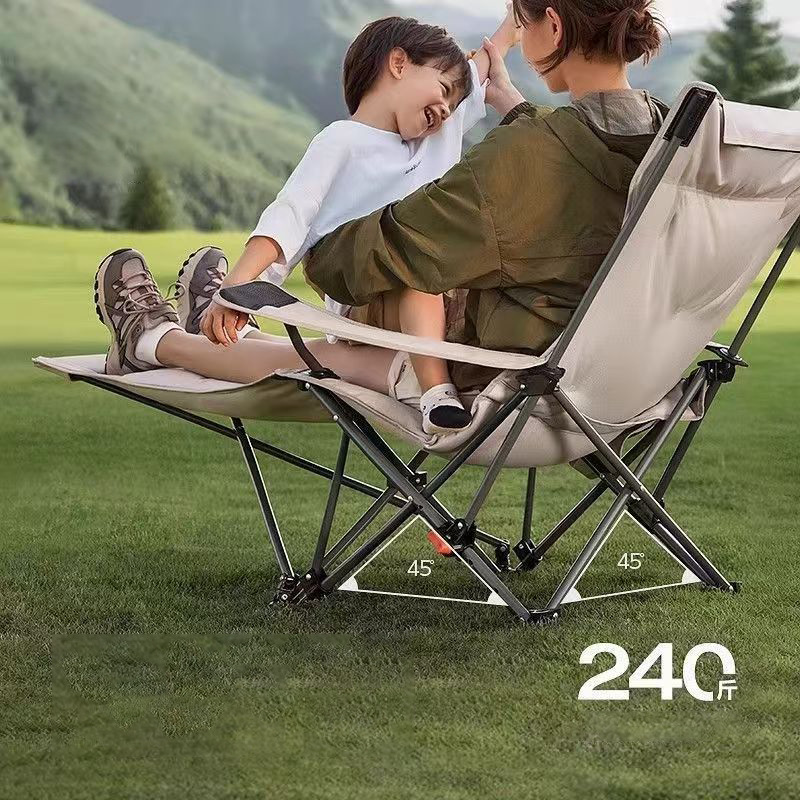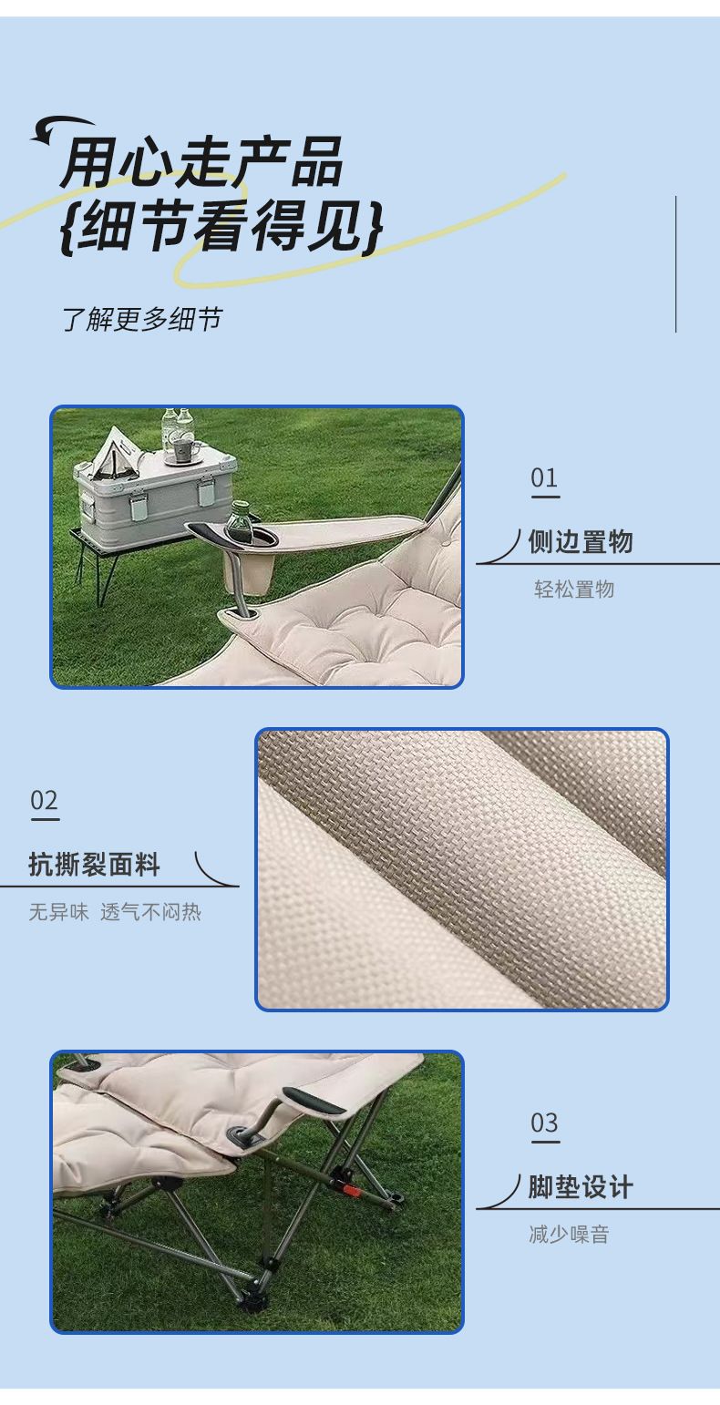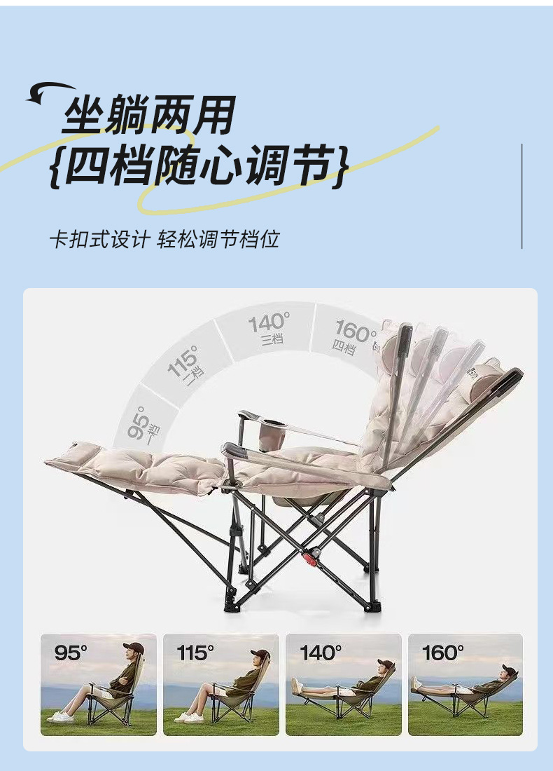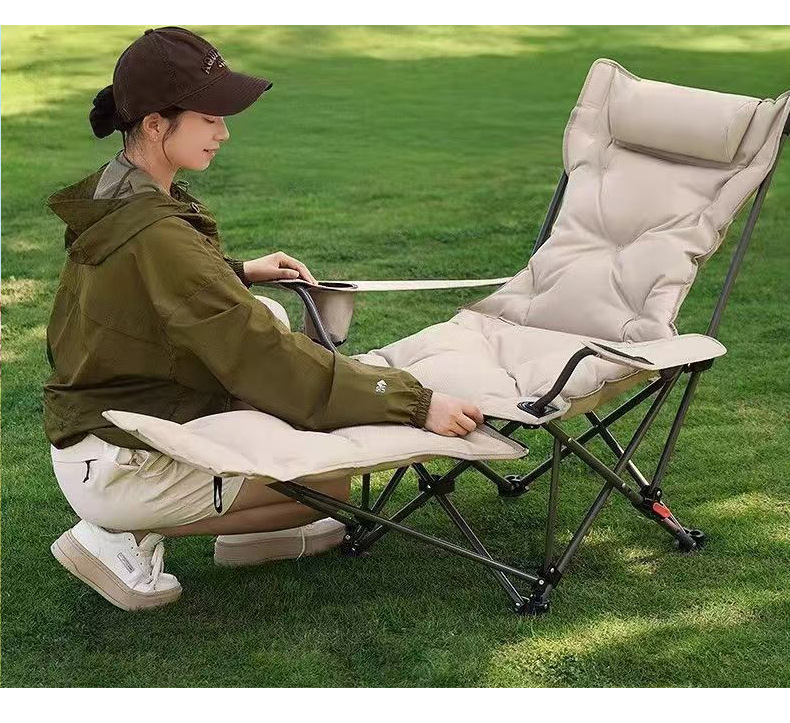 户外加棉折叠椅带腿托扶手躺椅四档可调节休闲椅子加棉带扶手躺椅