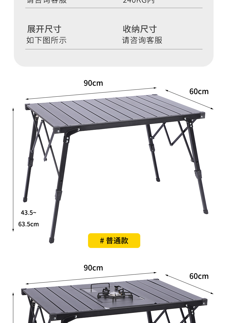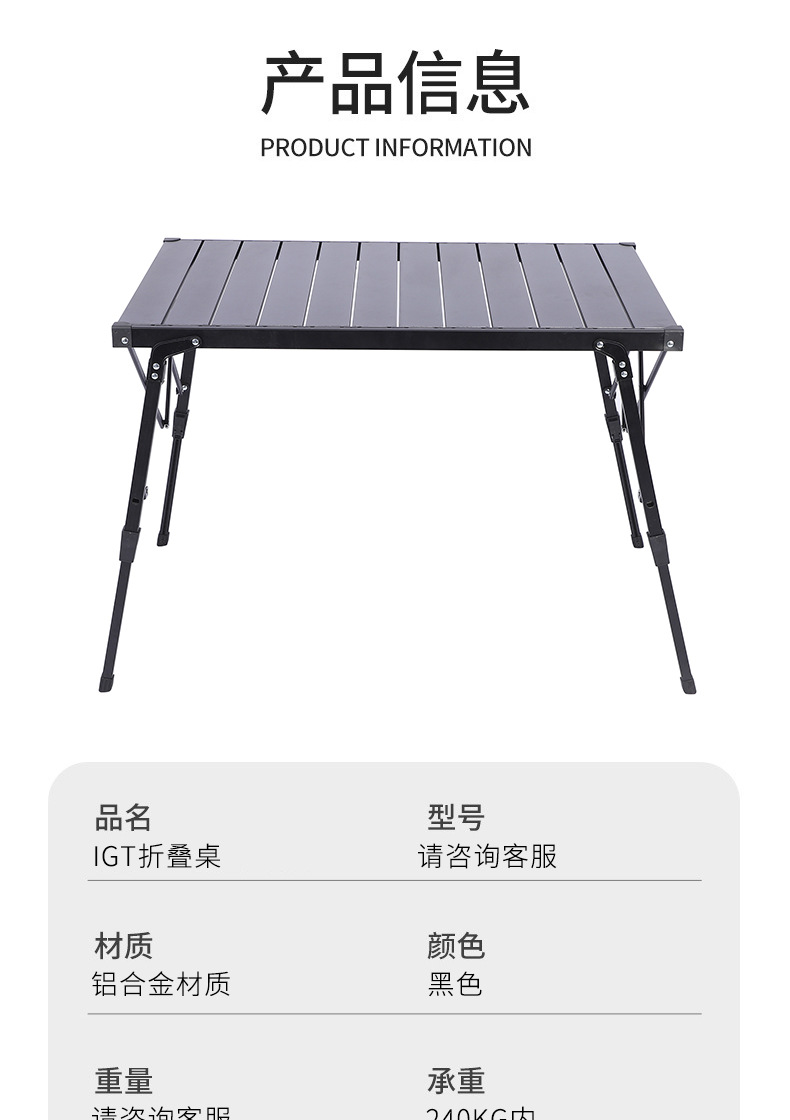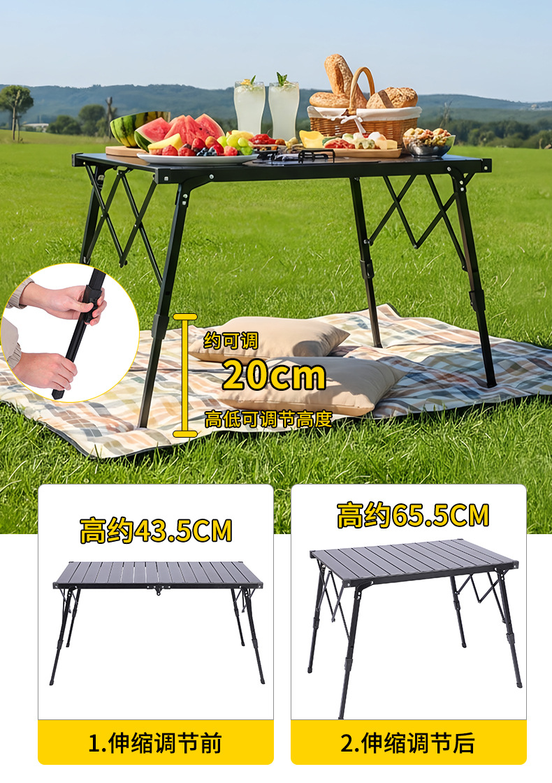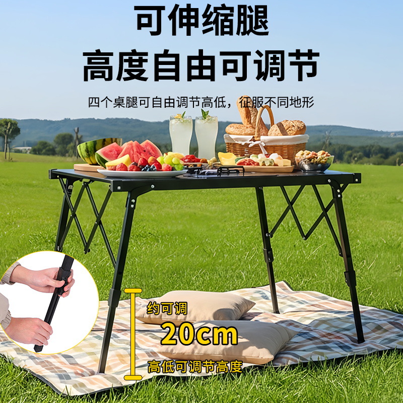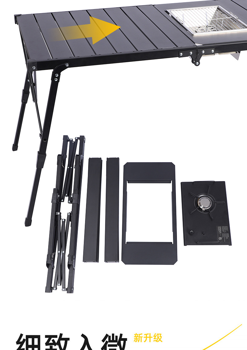 新款户外折叠桌便携露营蛋卷桌野营烧烤桌IGT炉可升降铝板桌批发