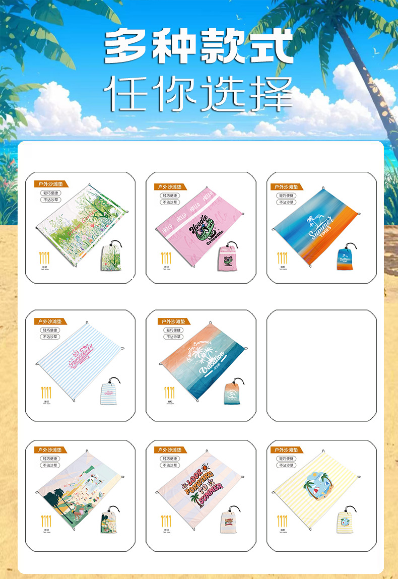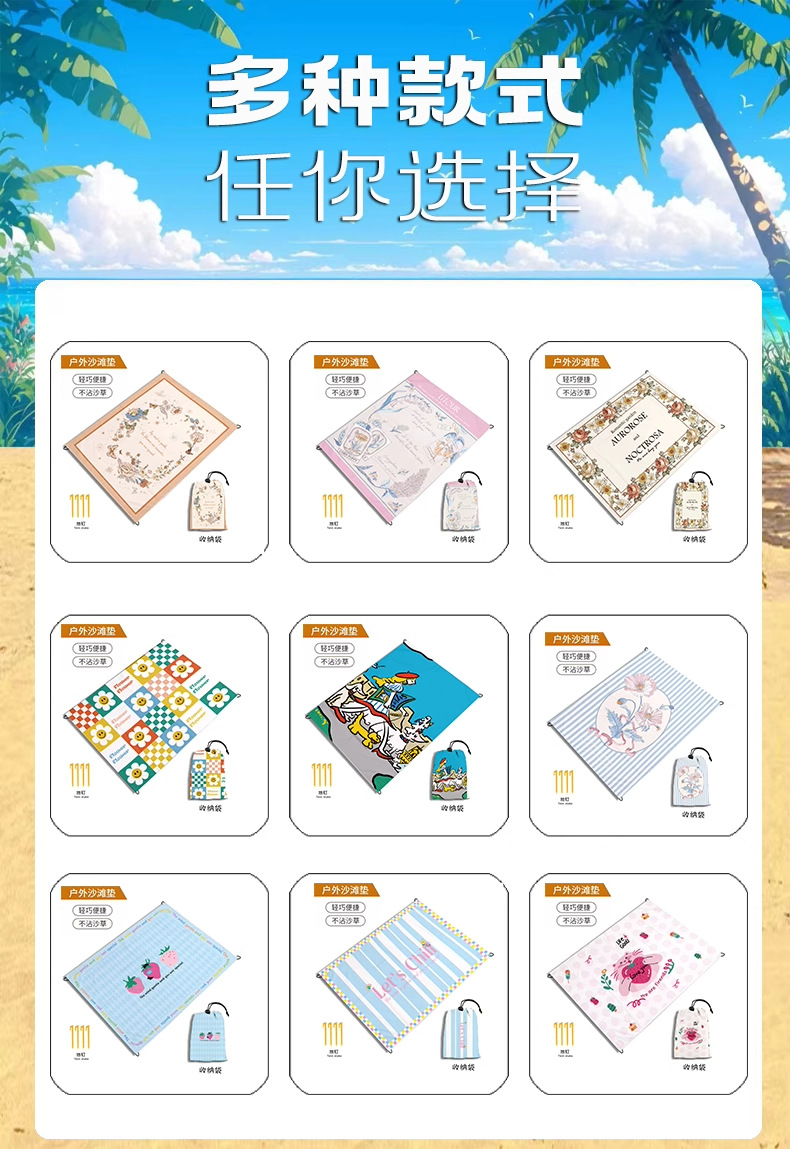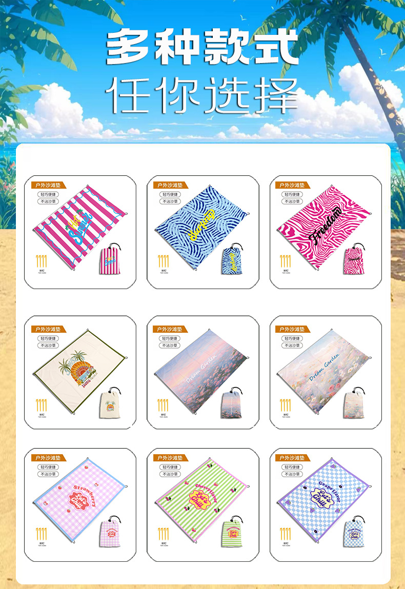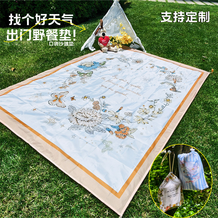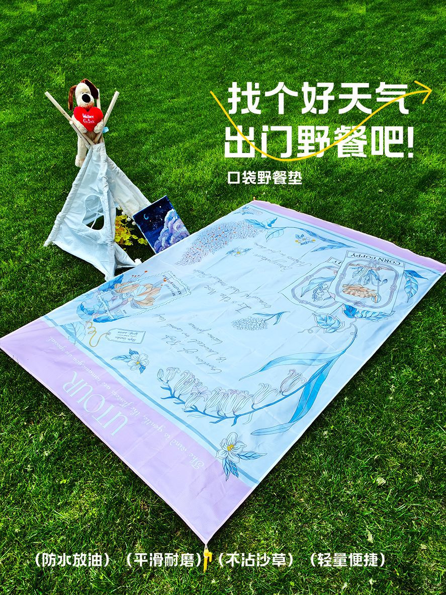 跨境迷你野餐垫便携式沙滩垫防水防沙户外超轻可叠海边草坪露营地