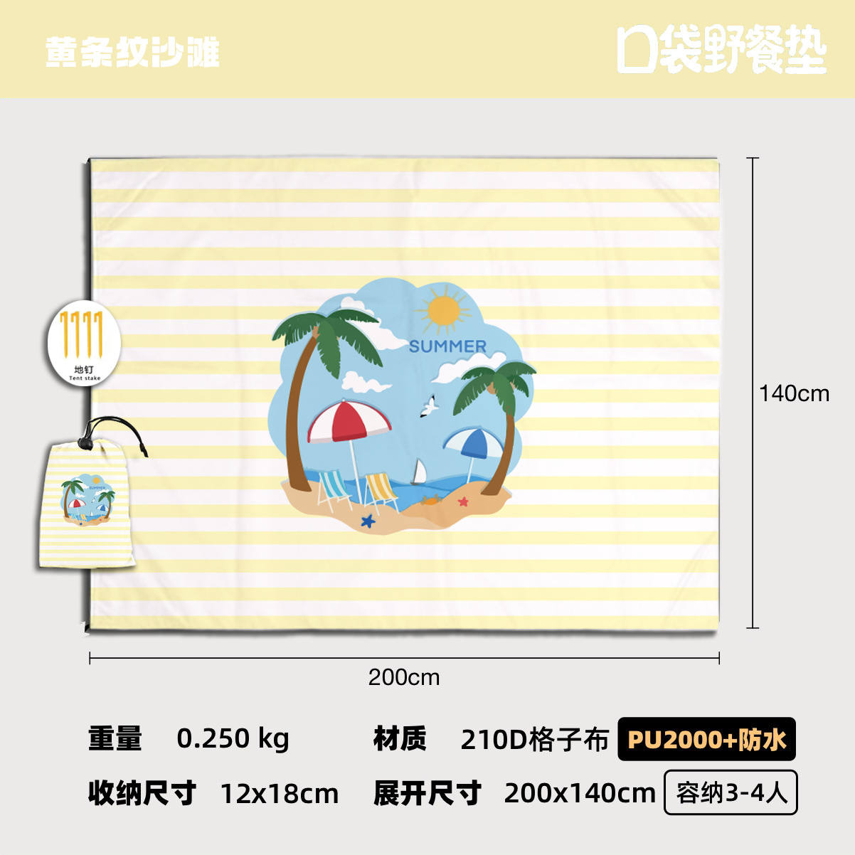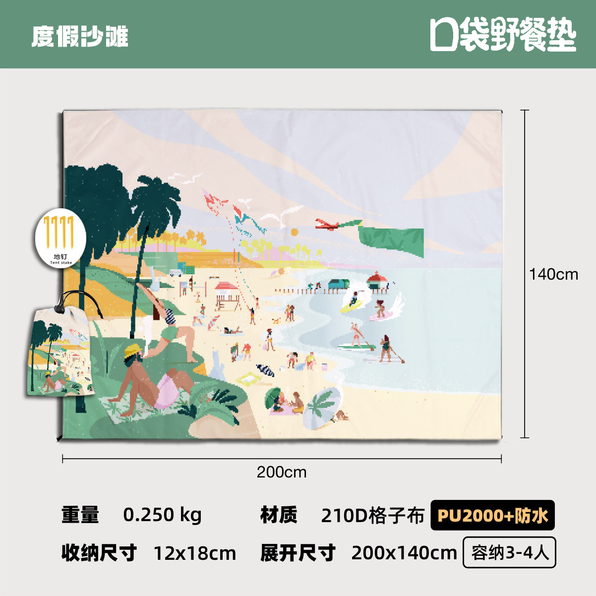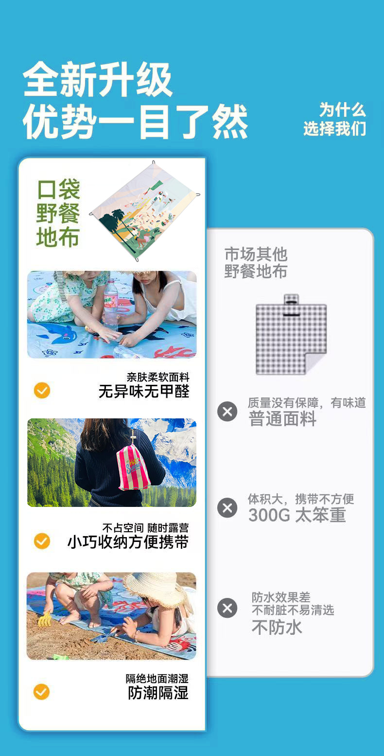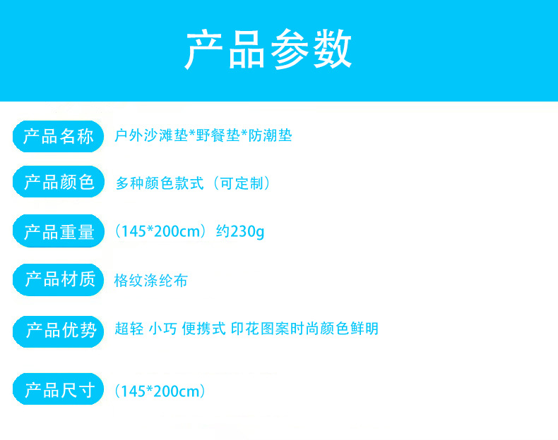 跨境迷你野餐垫便携式沙滩垫防水防沙户外超轻可叠海边草坪露营地