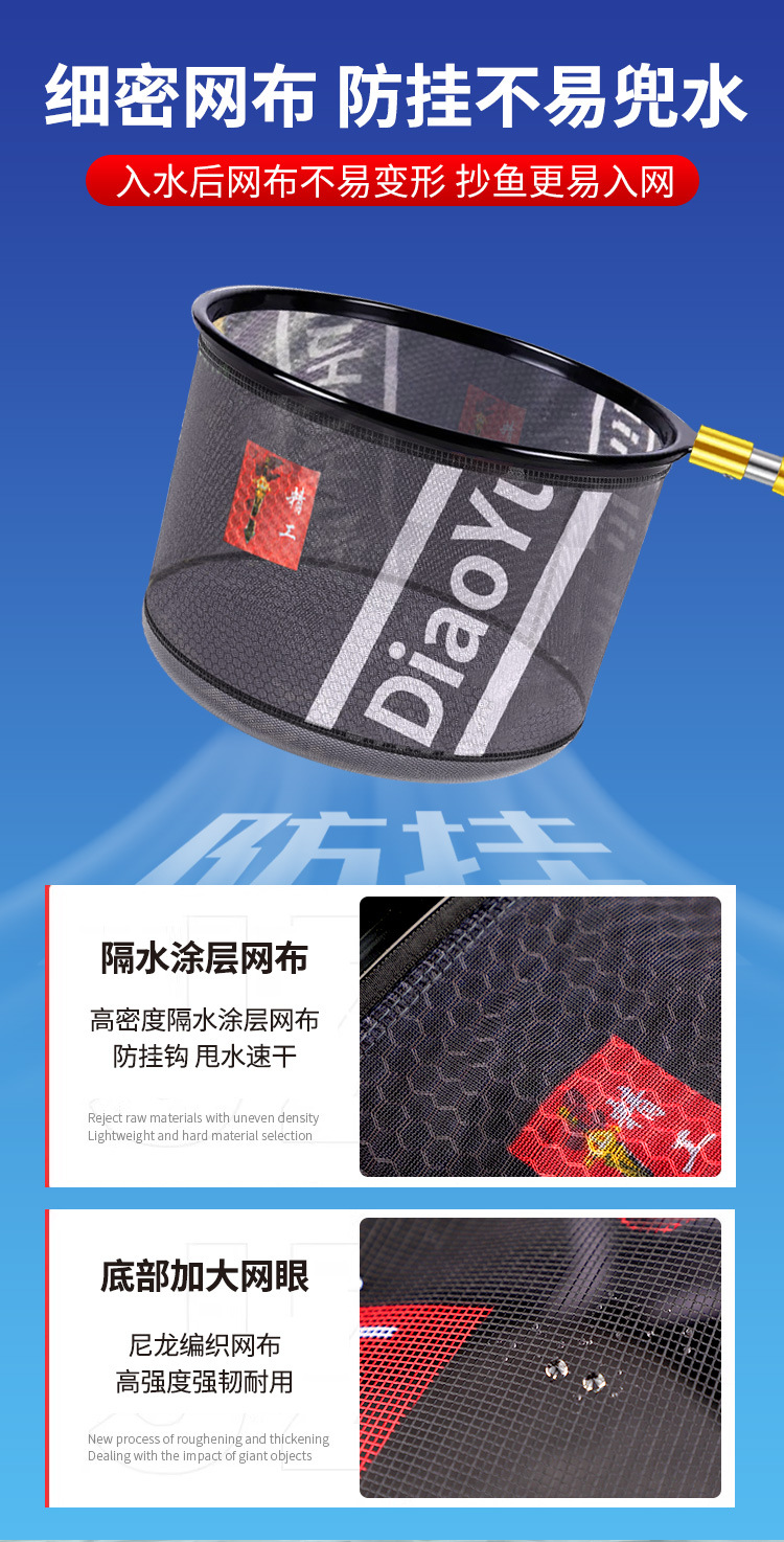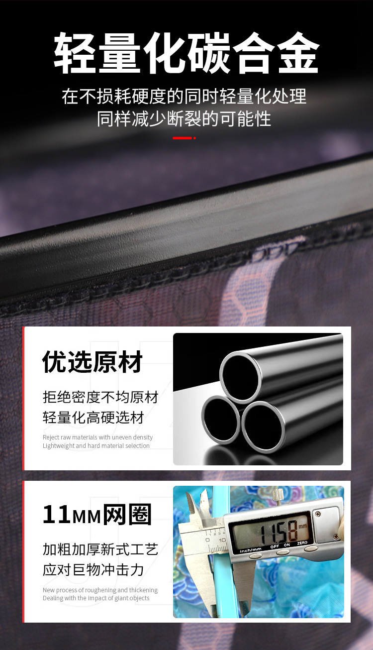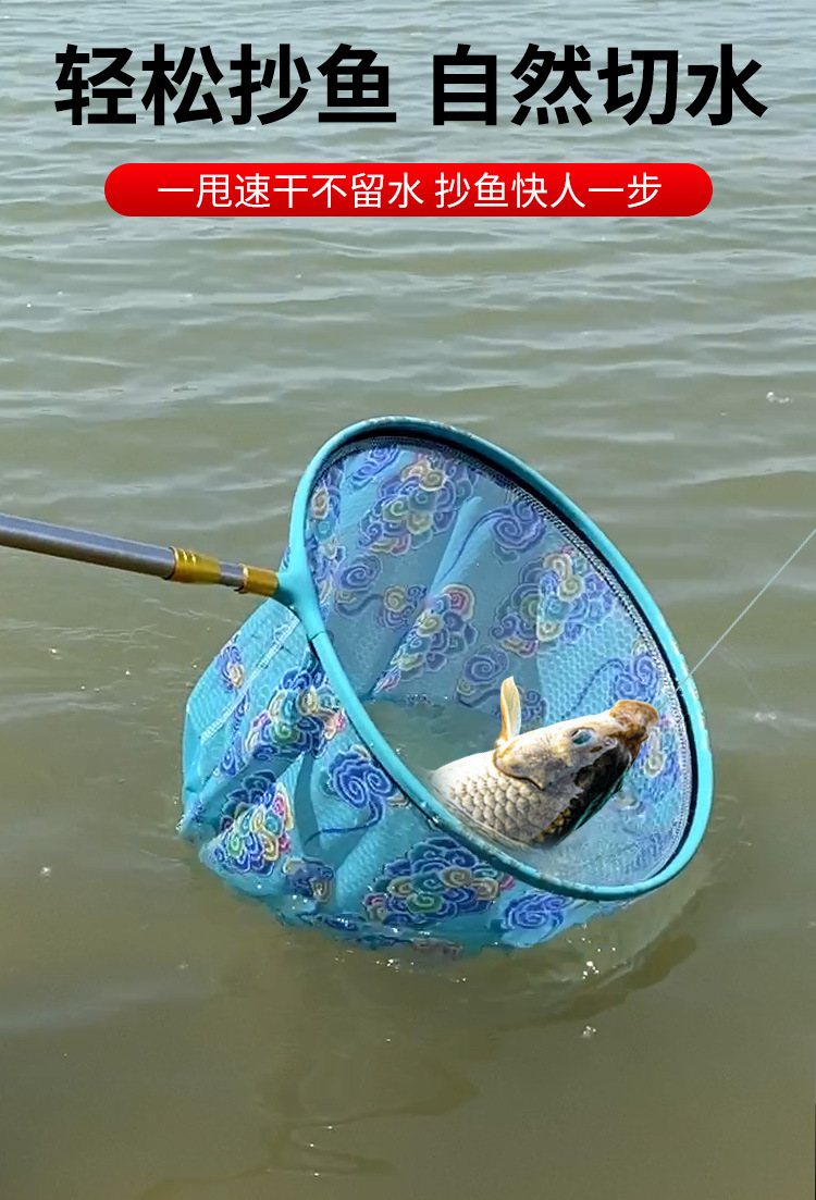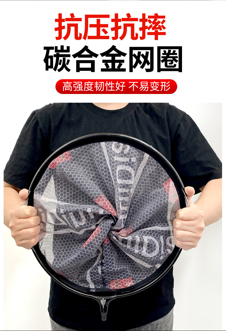 竞技碳素抄网头捞鱼网不挂钩黑坑纳米超轻钛合金实心加深钓鱼网兜