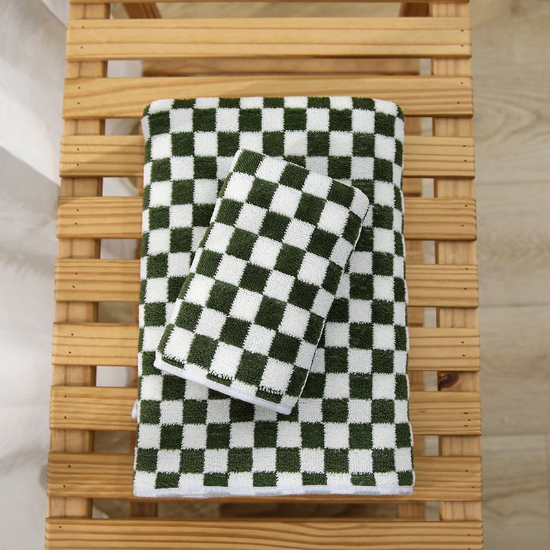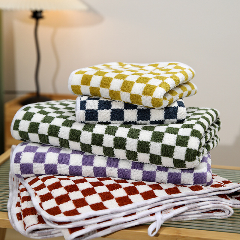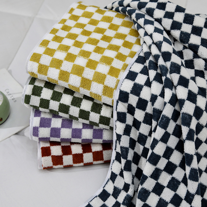 棋盘格毛巾浴巾套装学生宿舍ins风洗澡裹巾家用情侣柔软毛巾浴巾