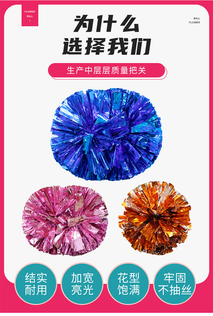 啦啦操花球啦啦队手花拉拉队手拿运动会道具彩球手柄亮光金属花球