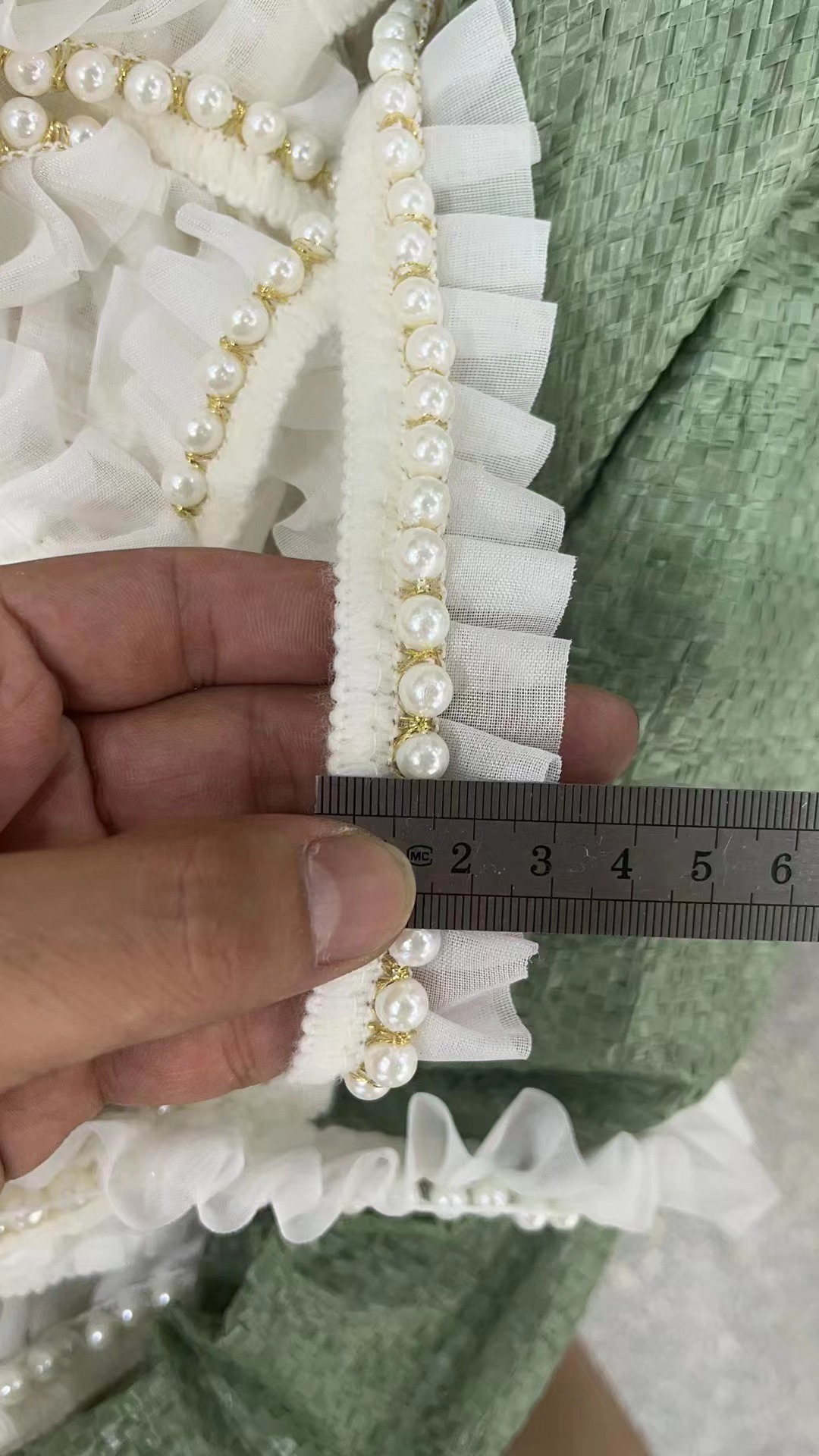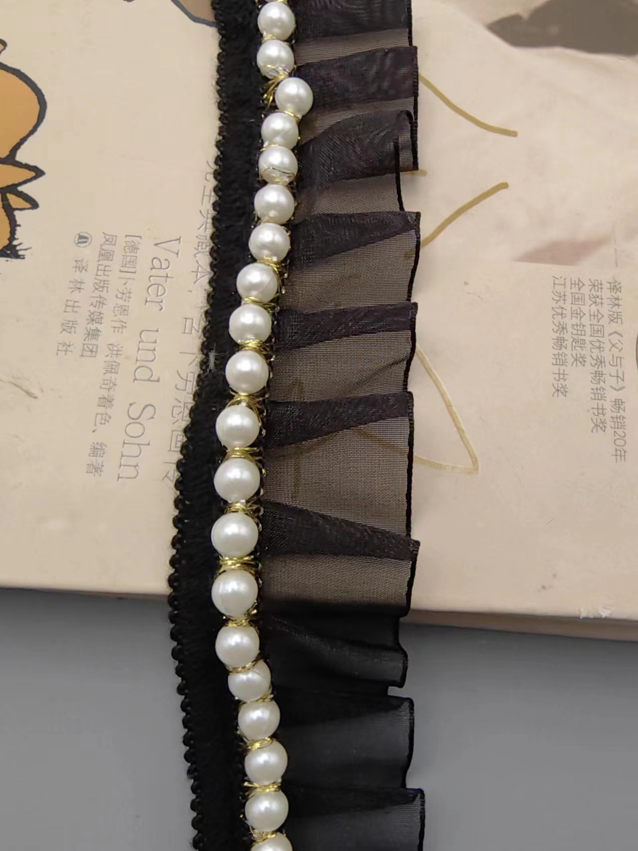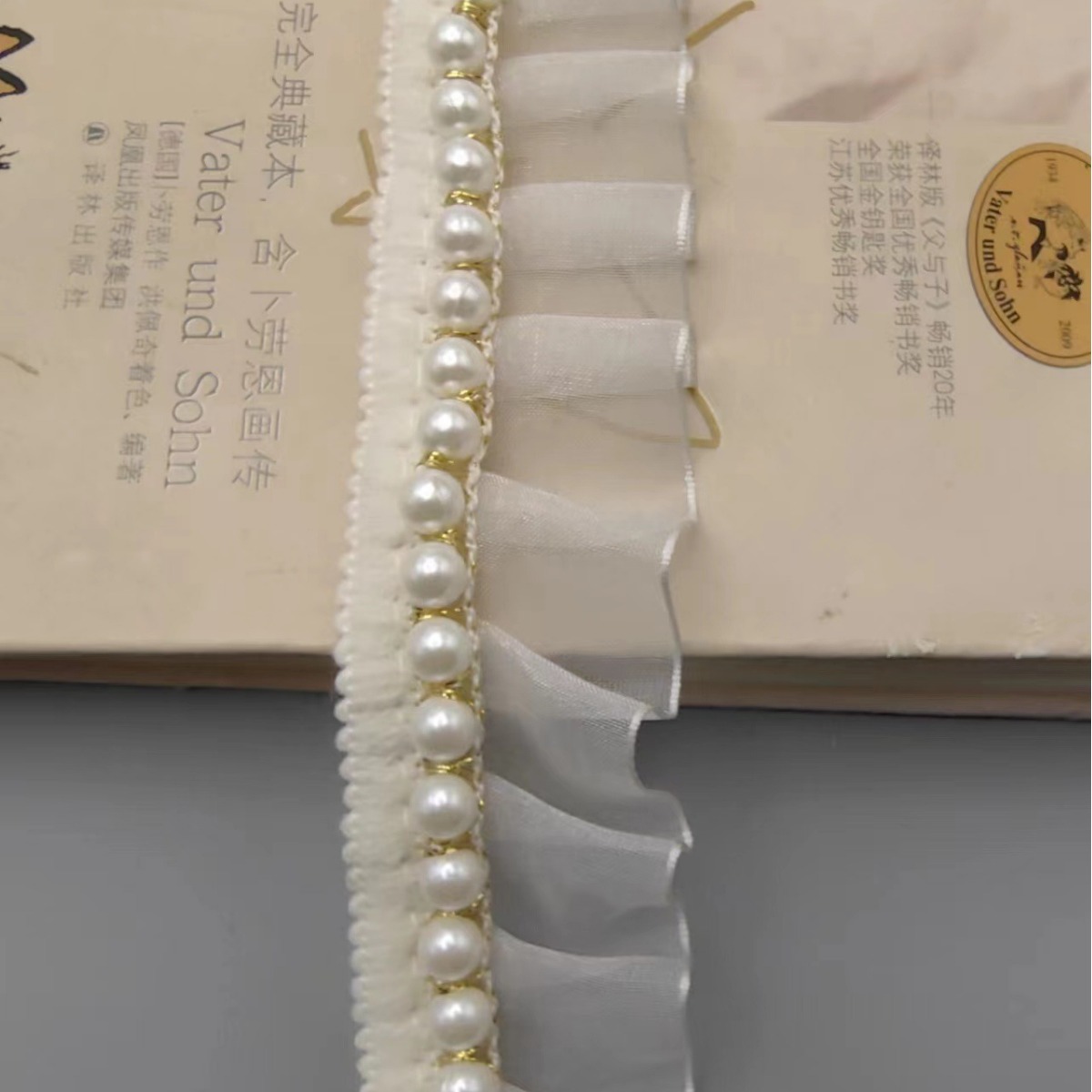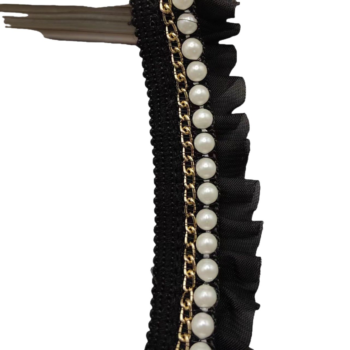 现货批发打褶2.5CM雪砂带车4里5 里6里珍珠花边服饰衣领连衣裙