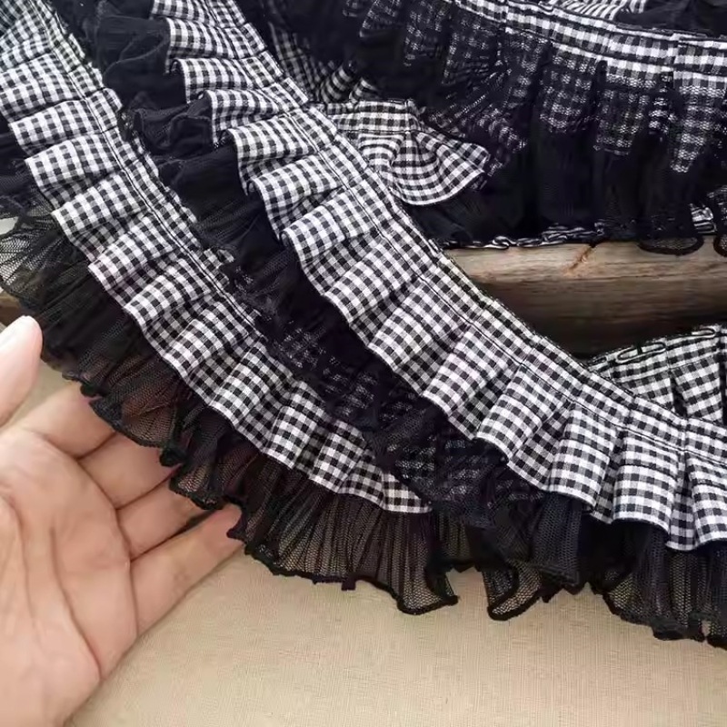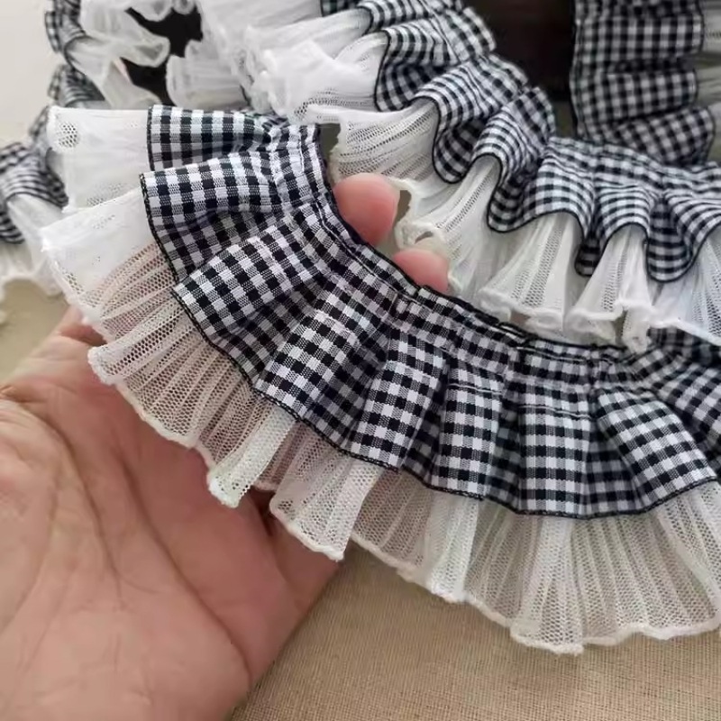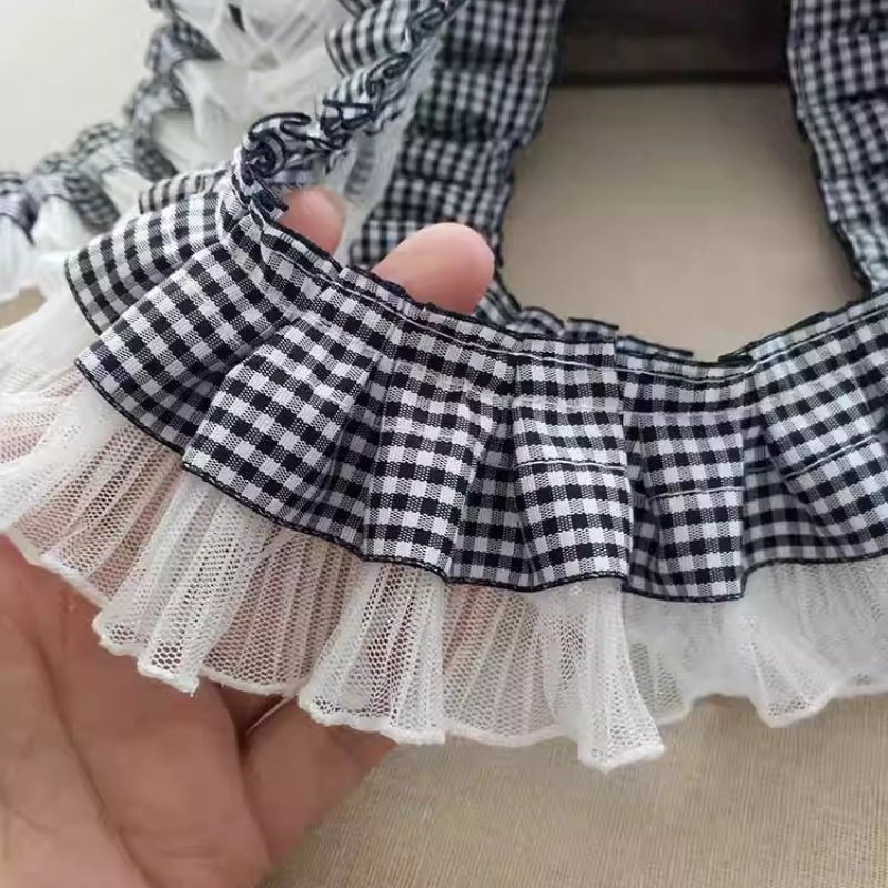 现货格子网纱压褶褶皱花边diy女装衣领衣身公主裙缝纫辅料供应