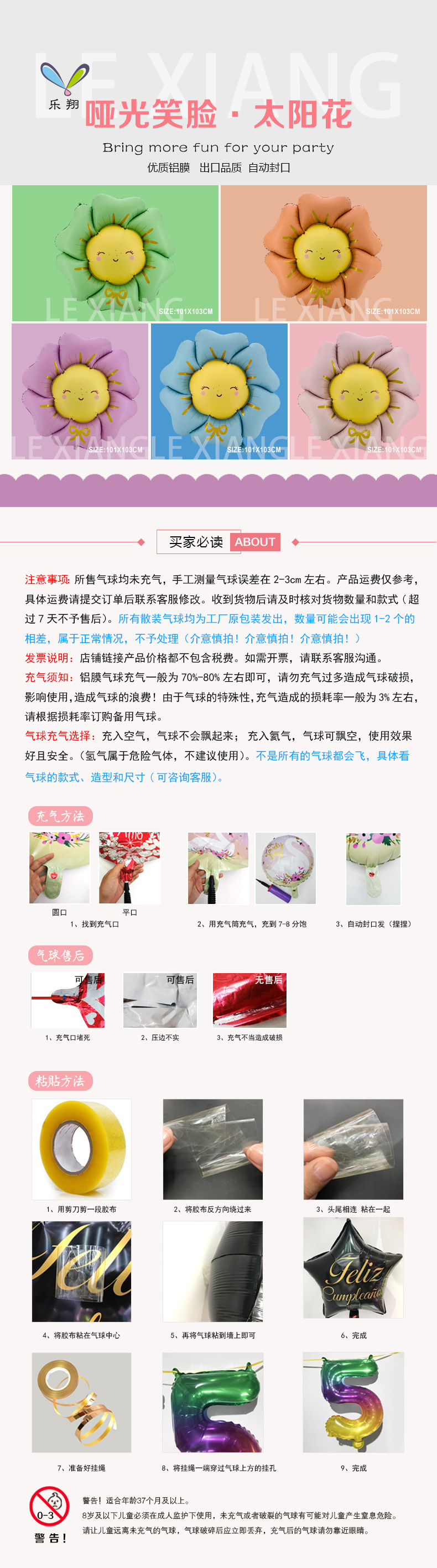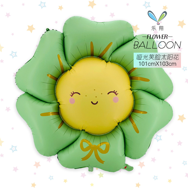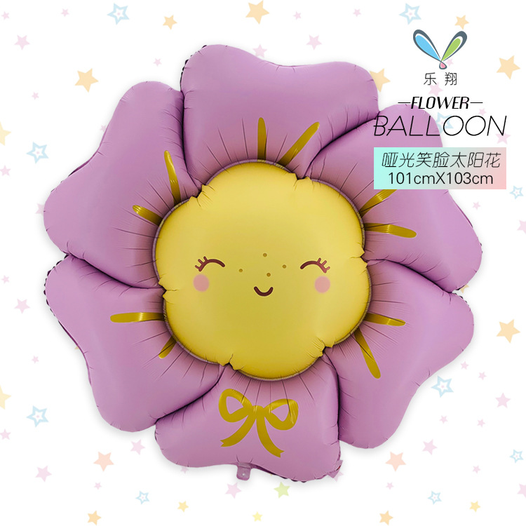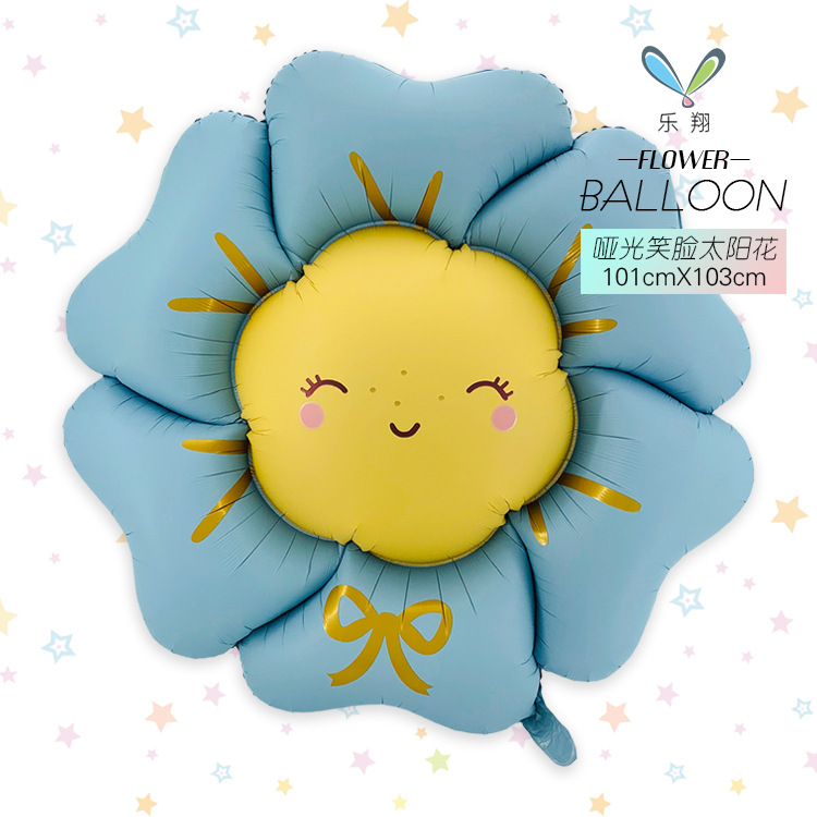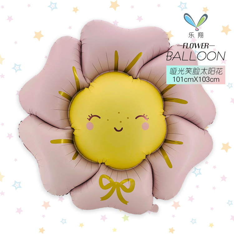 新款INS风哑光笑脸太阳花雏菊铝膜气球 室外装饰派对氛围布景道具