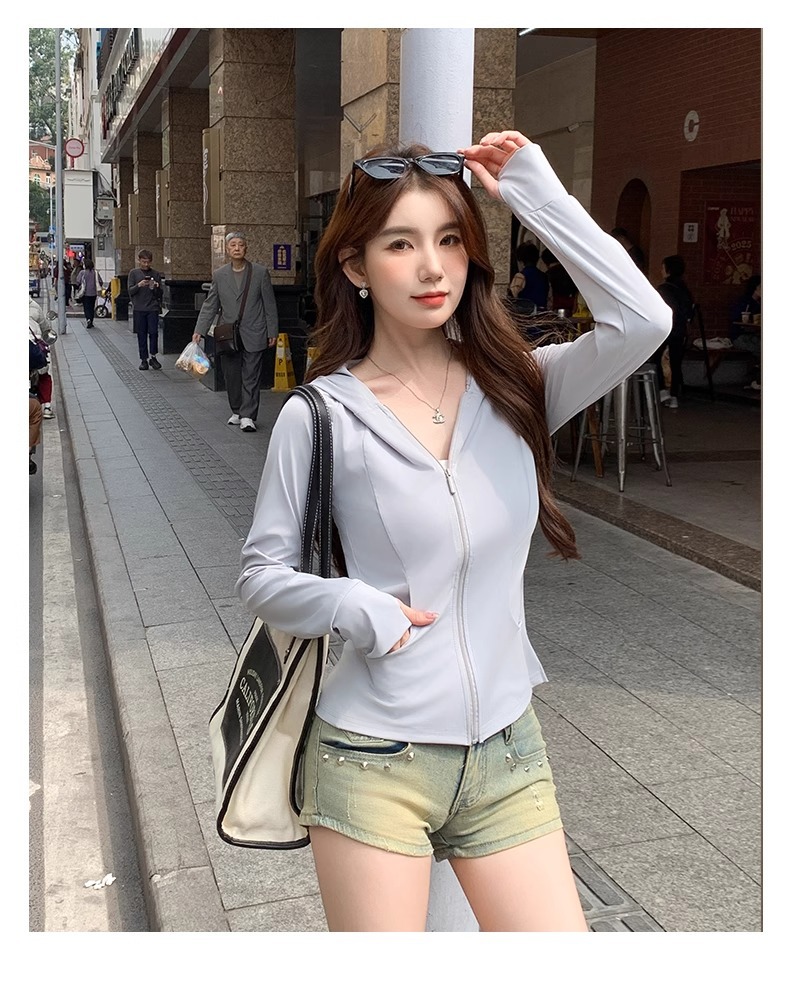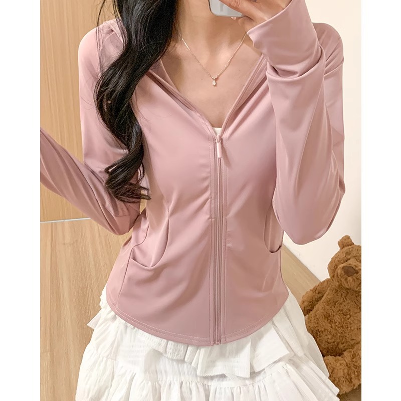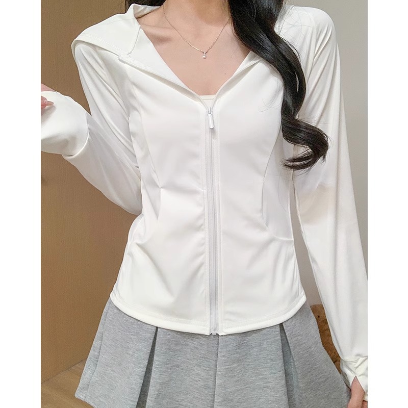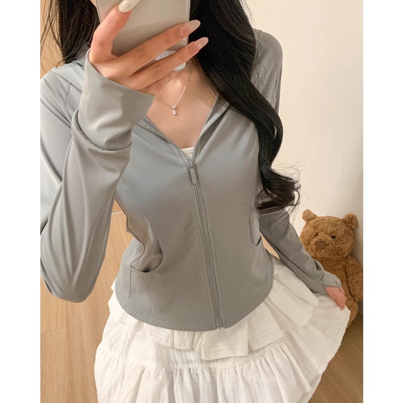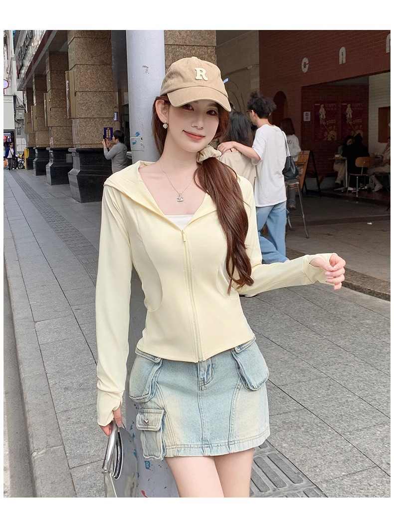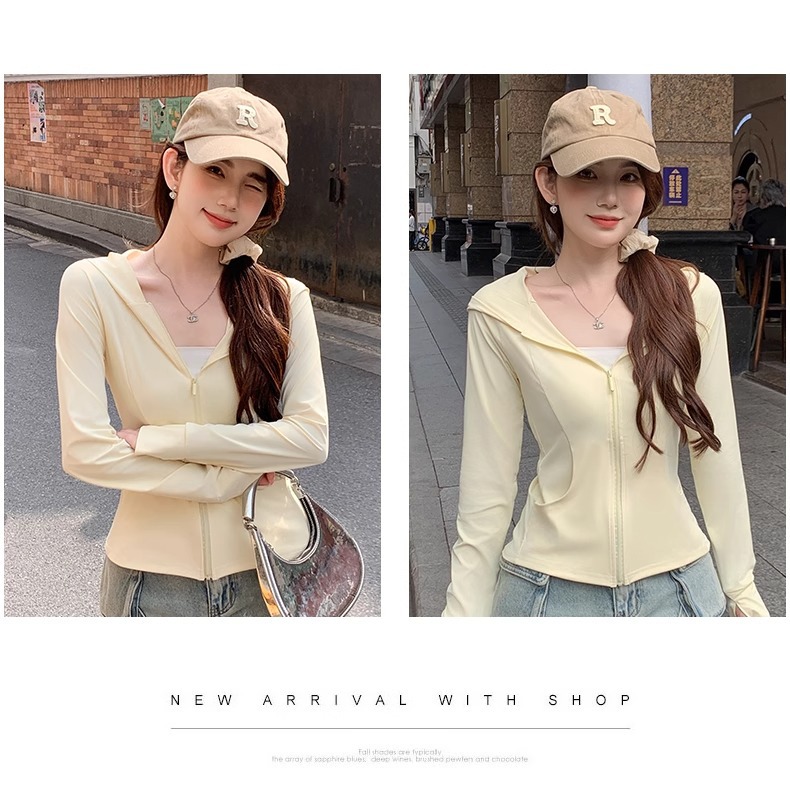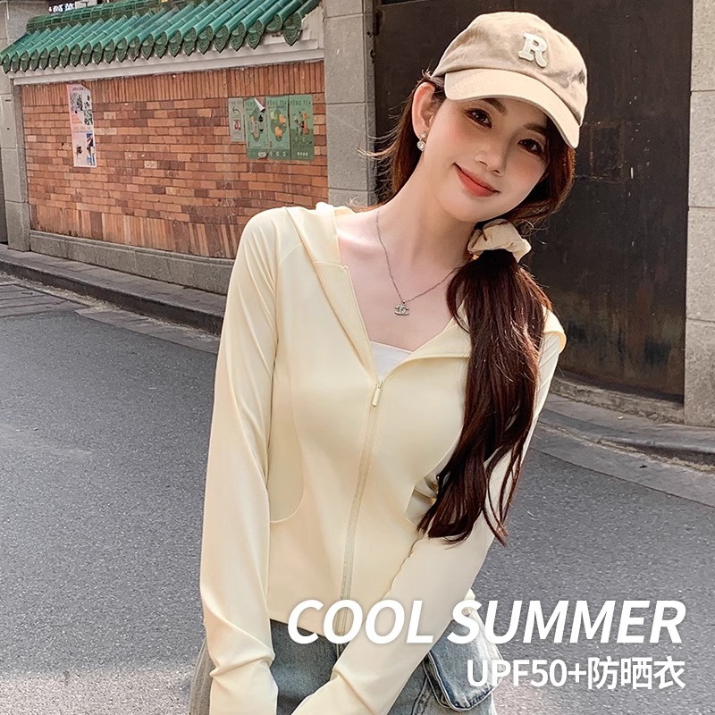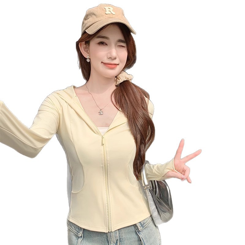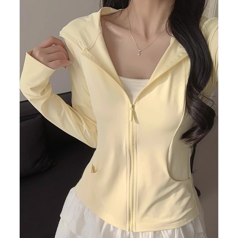 鹅黄色连帽防晒衣女夏季2026新款防紫外线防晒服修身冰丝开衫外套