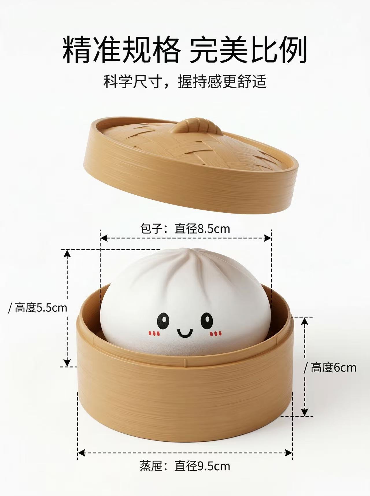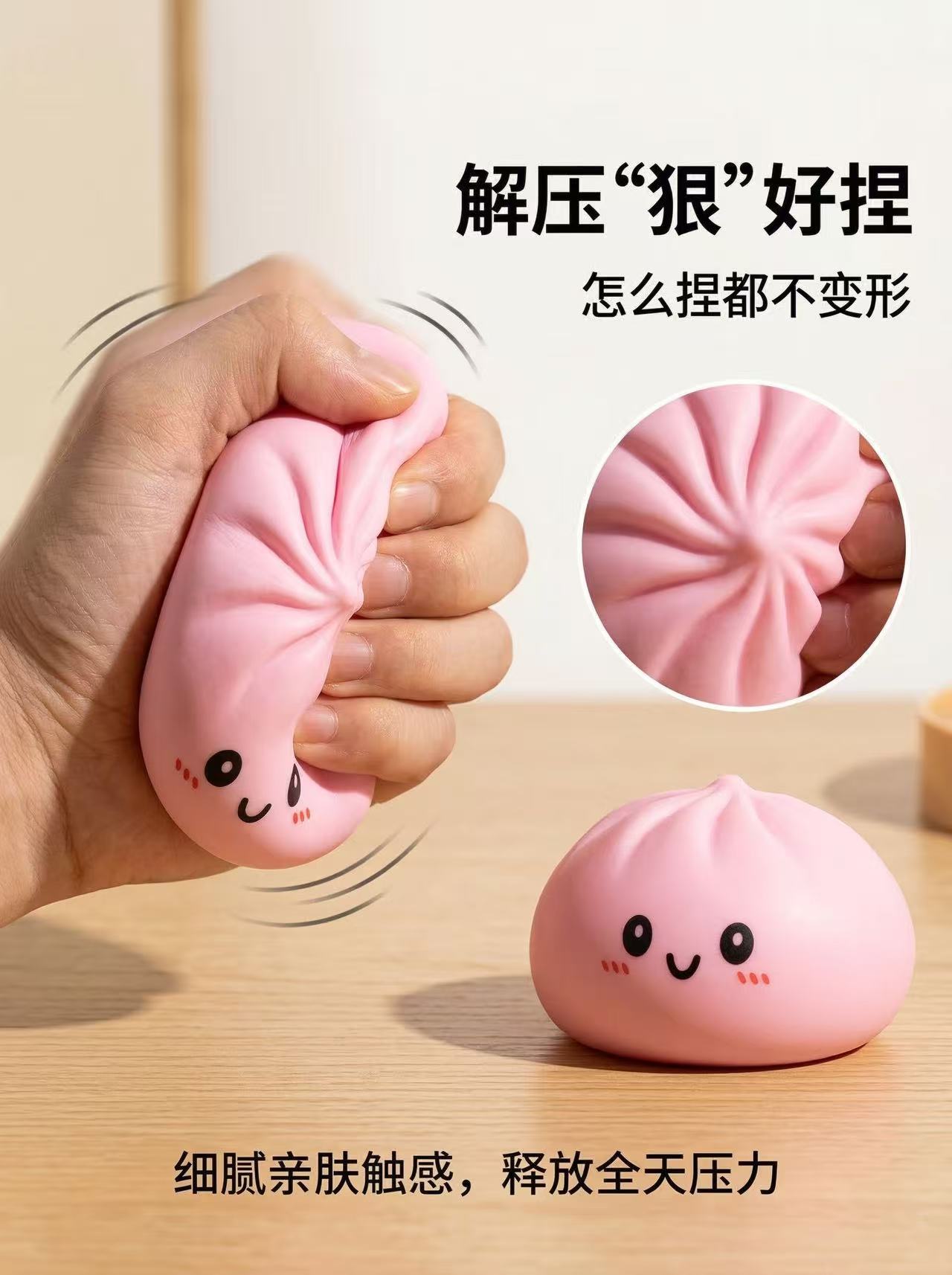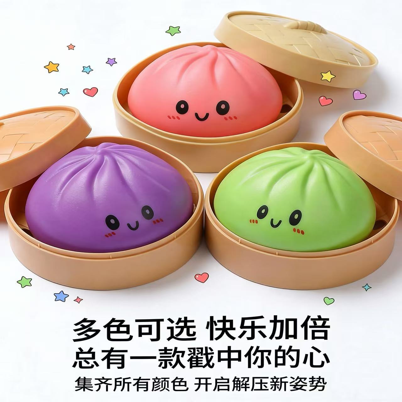 跨境解压彩色笑脸仿真蒸笼大包子捏捏乐可爱印表情快回弹食玩包子