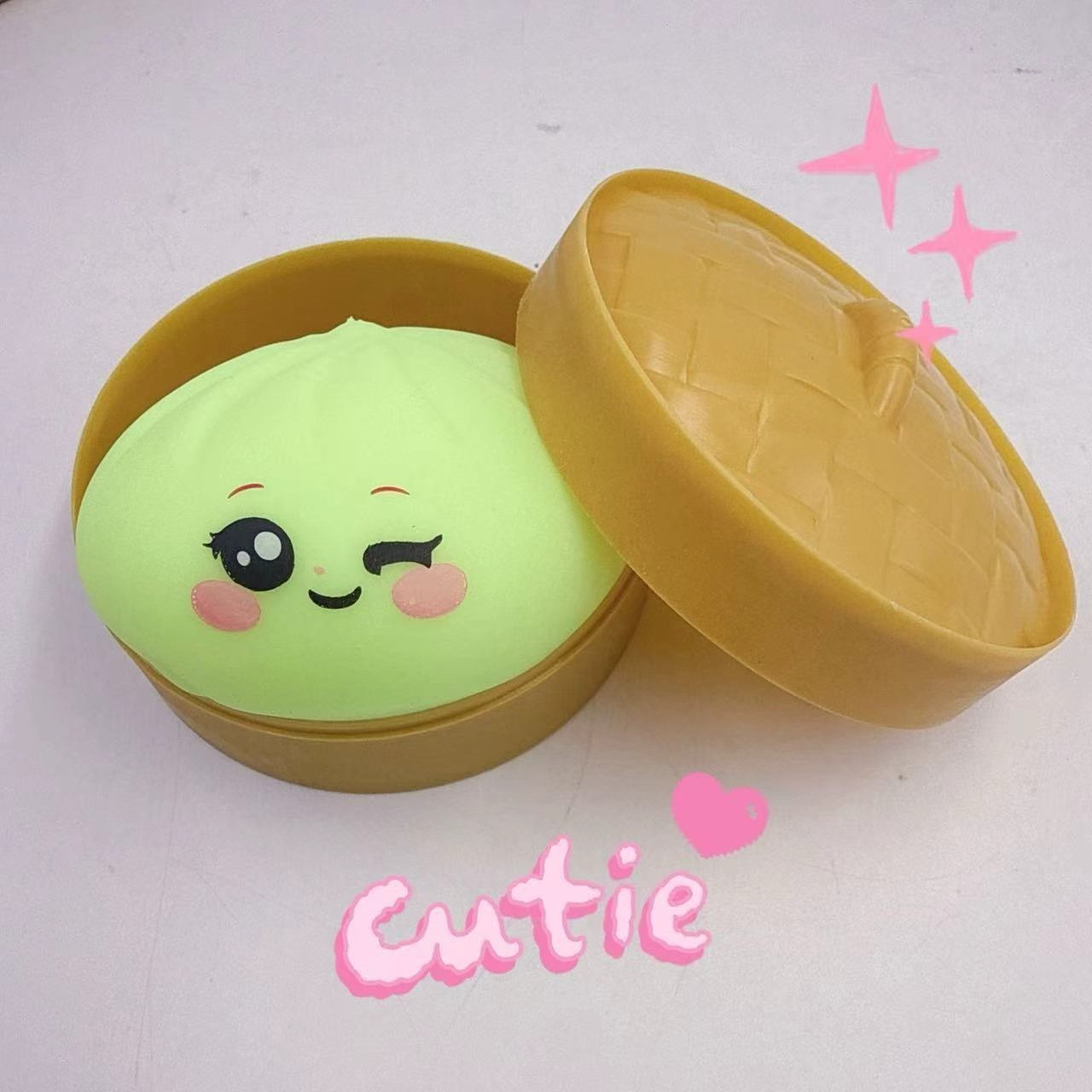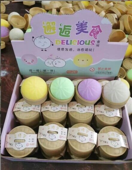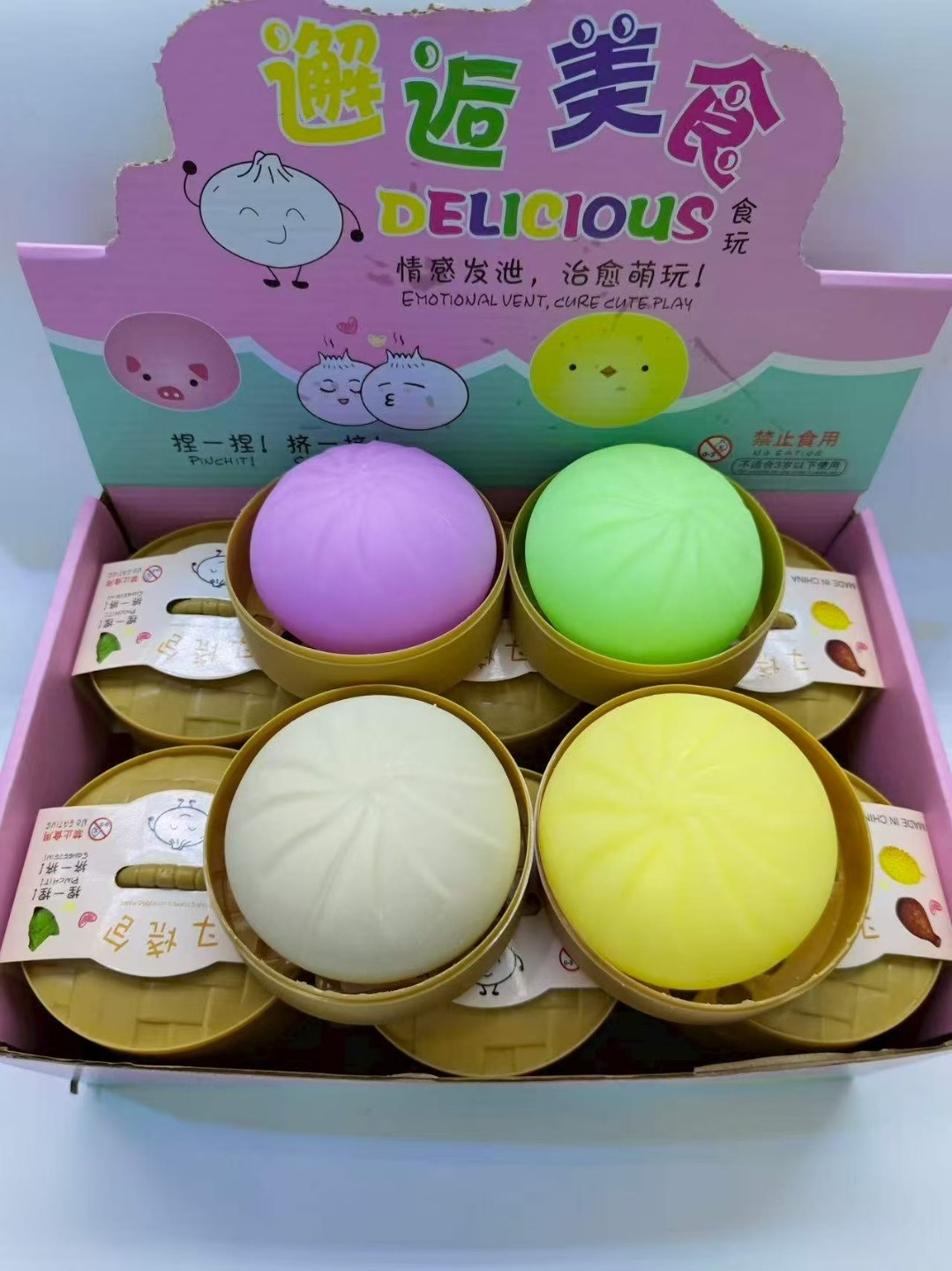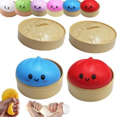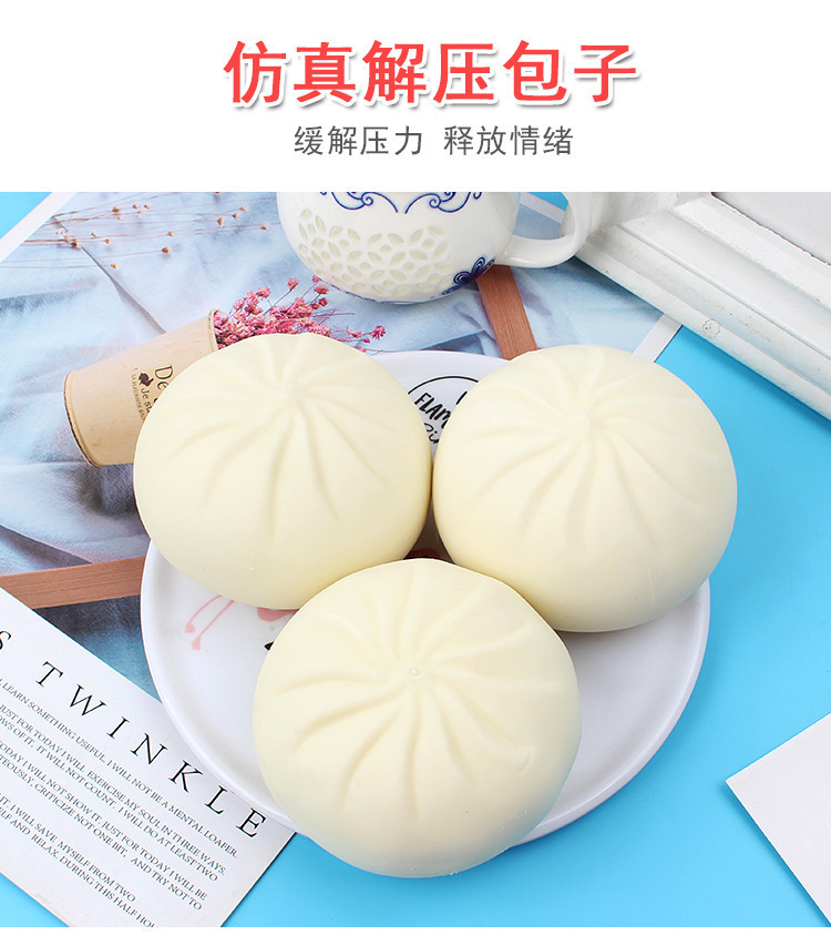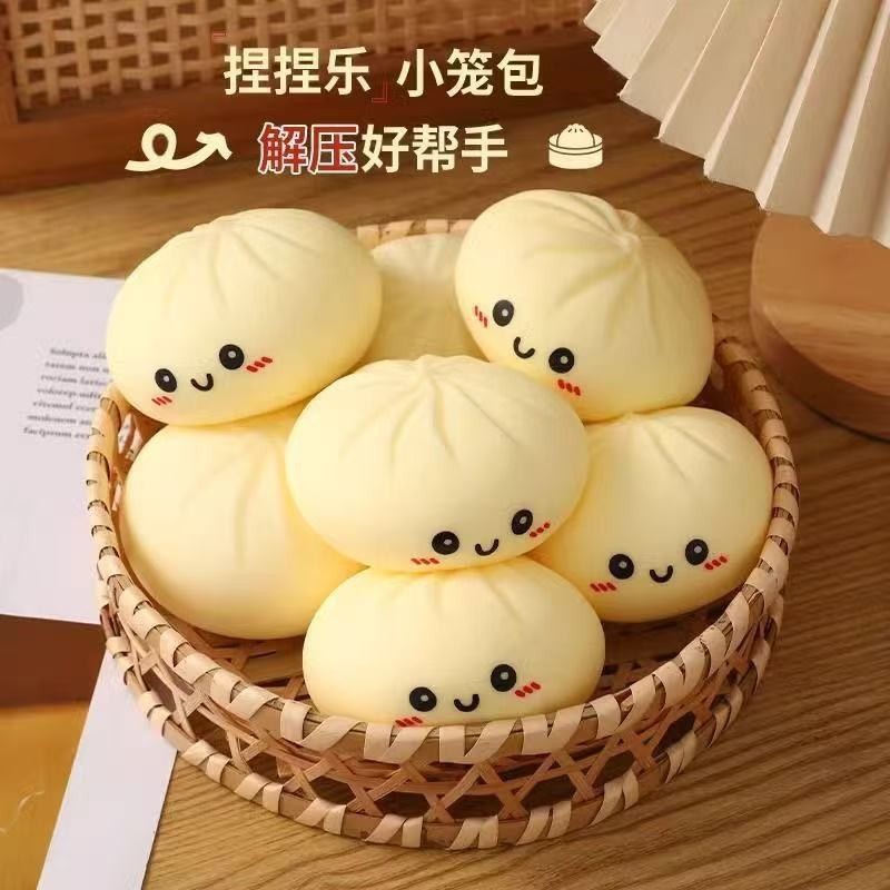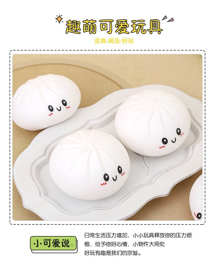 跨境解压彩色笑脸仿真蒸笼大包子捏捏乐可爱印表情快回弹食玩包子