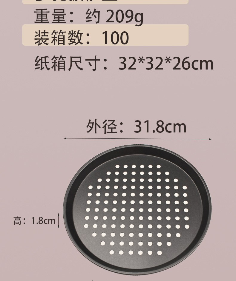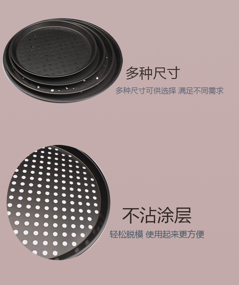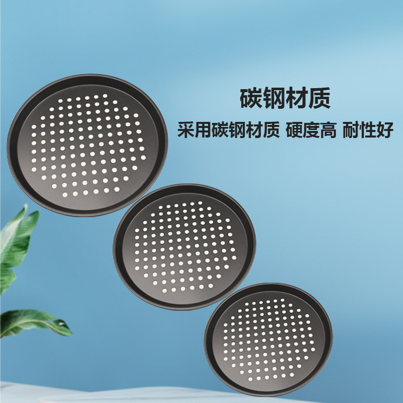打孔披萨盘碳钢冲孔披萨盘不沾圆形比萨烤盘 pizza盘 9寸10寸11寸