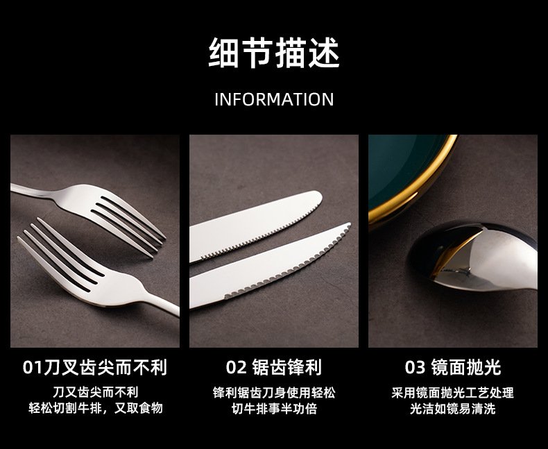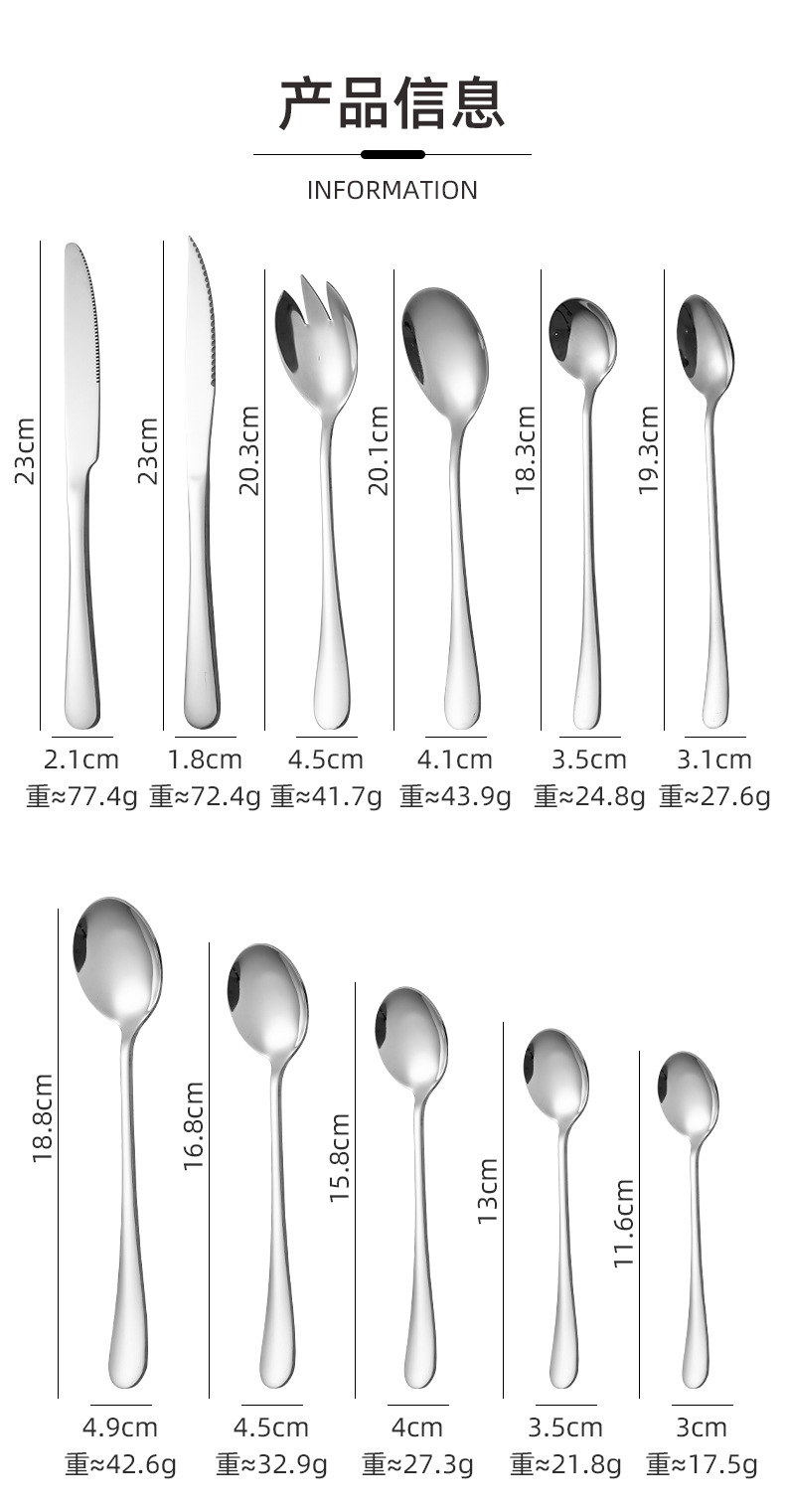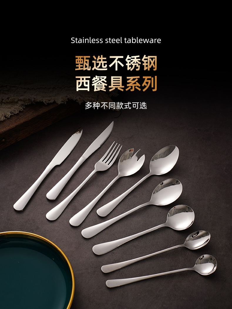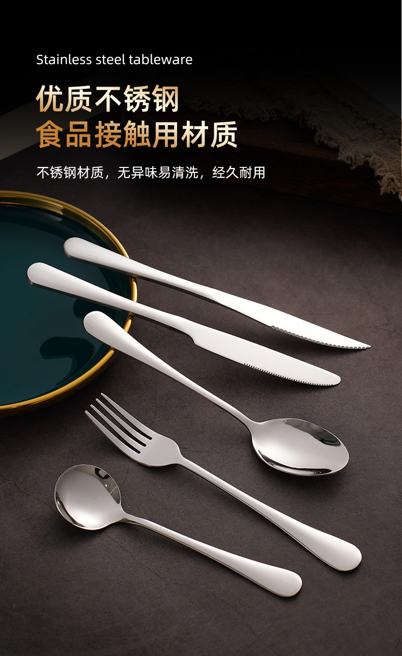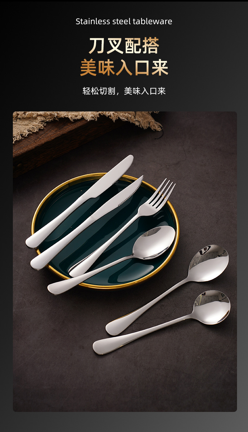 跨境304不锈钢西餐餐具刀叉勺套装 食品级亮光牛排刀叉子勺子批发