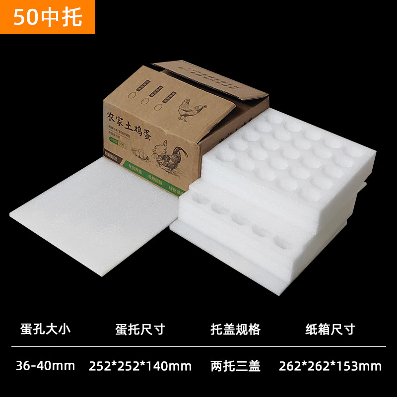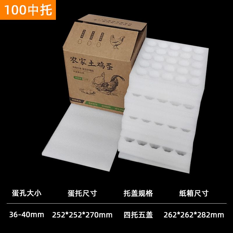 珍珠棉土鸡蛋托包装快递邮寄泡沫箱子大号100枚蛋托盖板式加厚