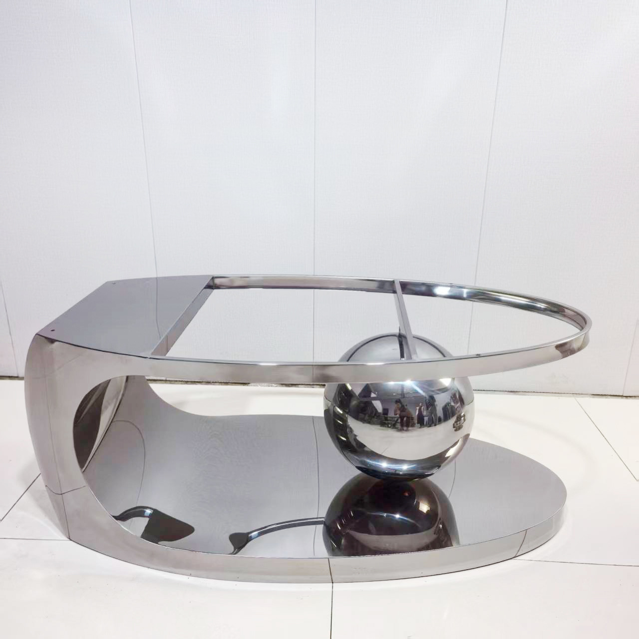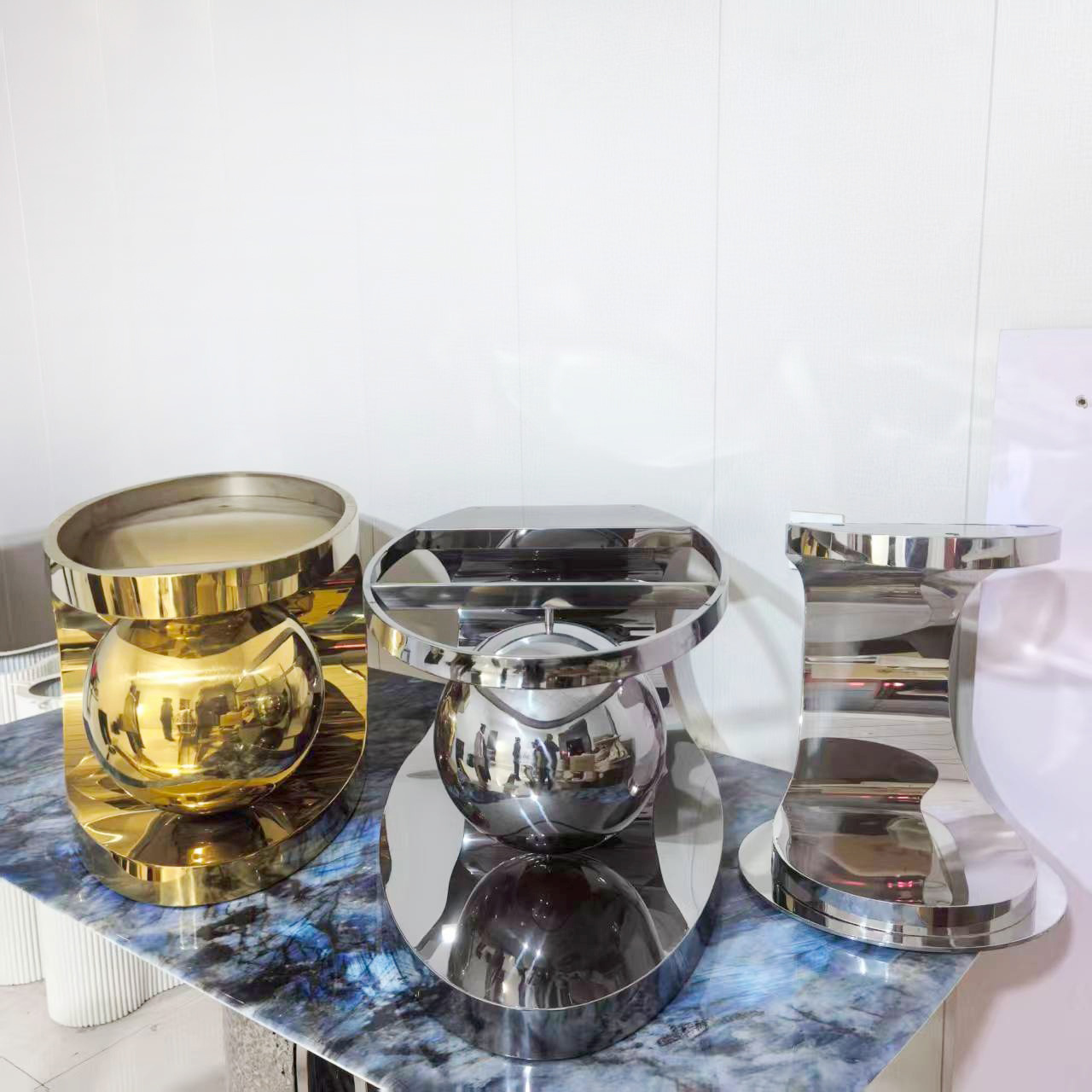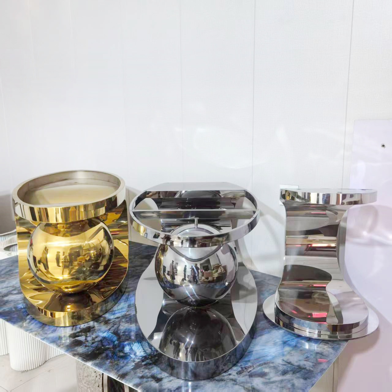 轻奢沙发角几不锈钢茶几客厅边几意式组合茶台支架奢石茶几单龙珠