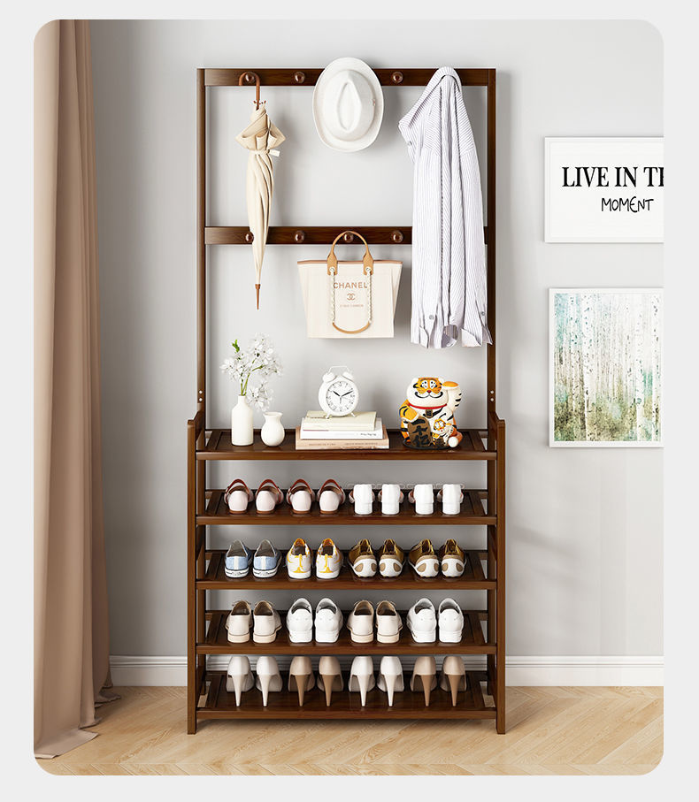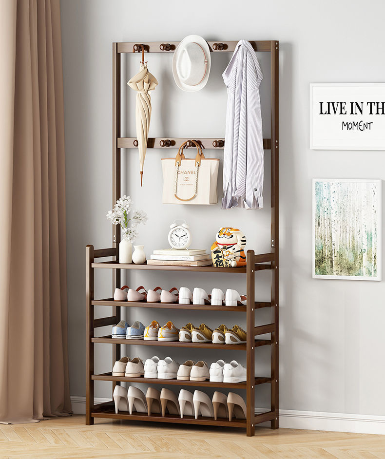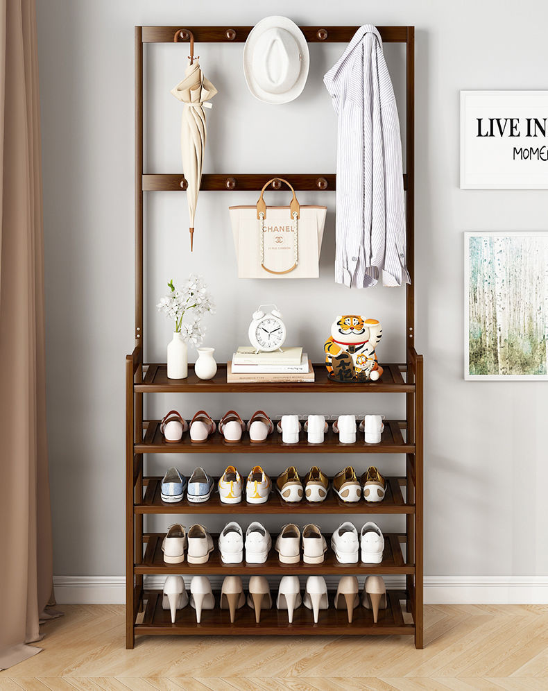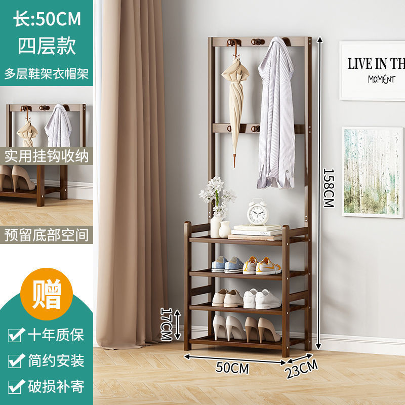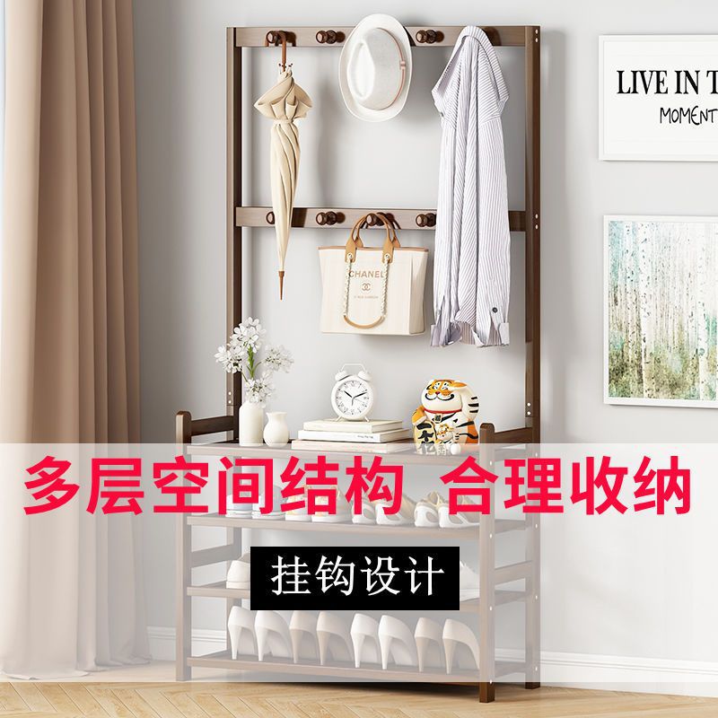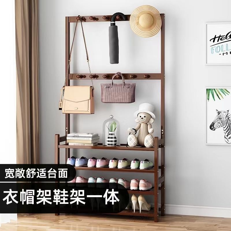 鞋架子衣帽架一体简易家用门口收纳多层鞋柜实木大容量结实置物架