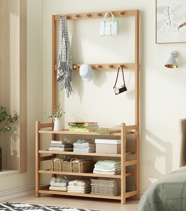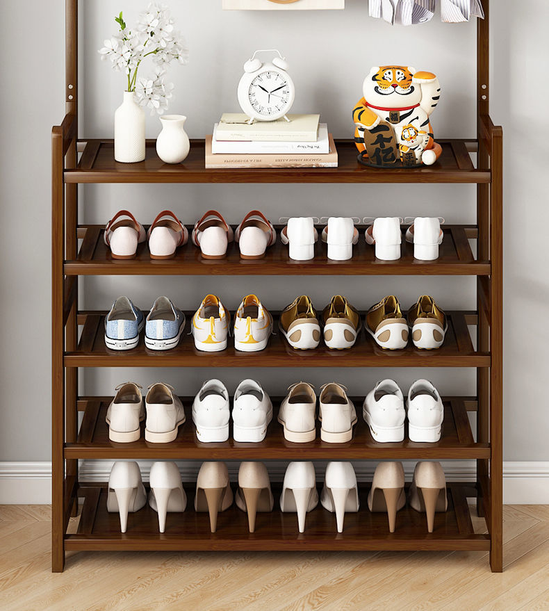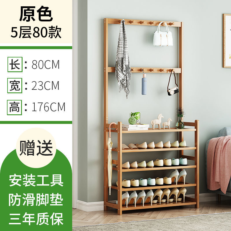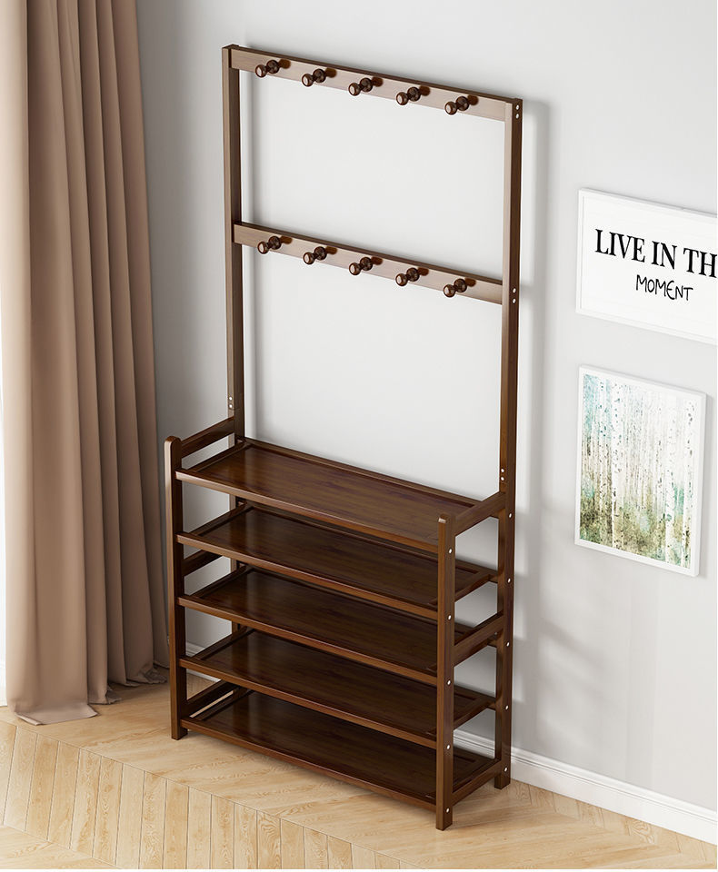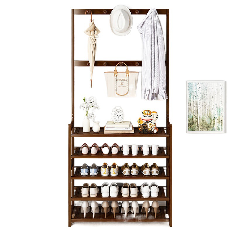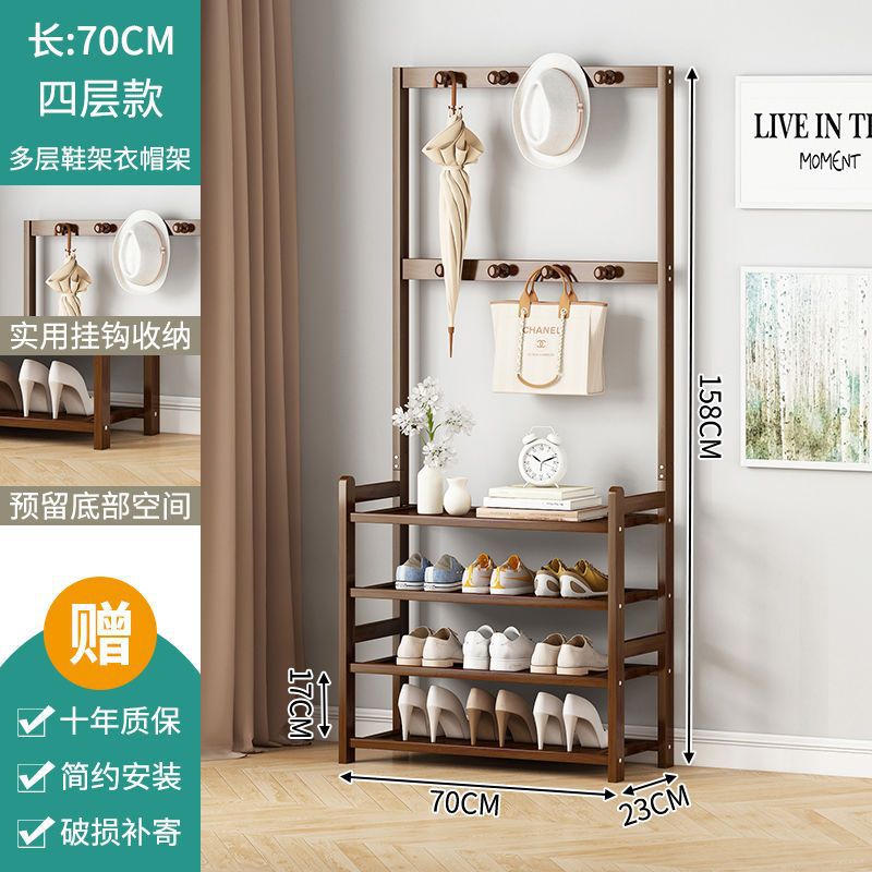 鞋架子衣帽架一体简易家用门口收纳多层鞋柜实木大容量结实置物架
