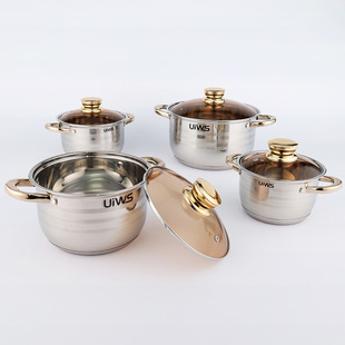跨境货源不锈钢锅具套装 适用燃气灶电磁炉18-26cm双耳汤锅五件套