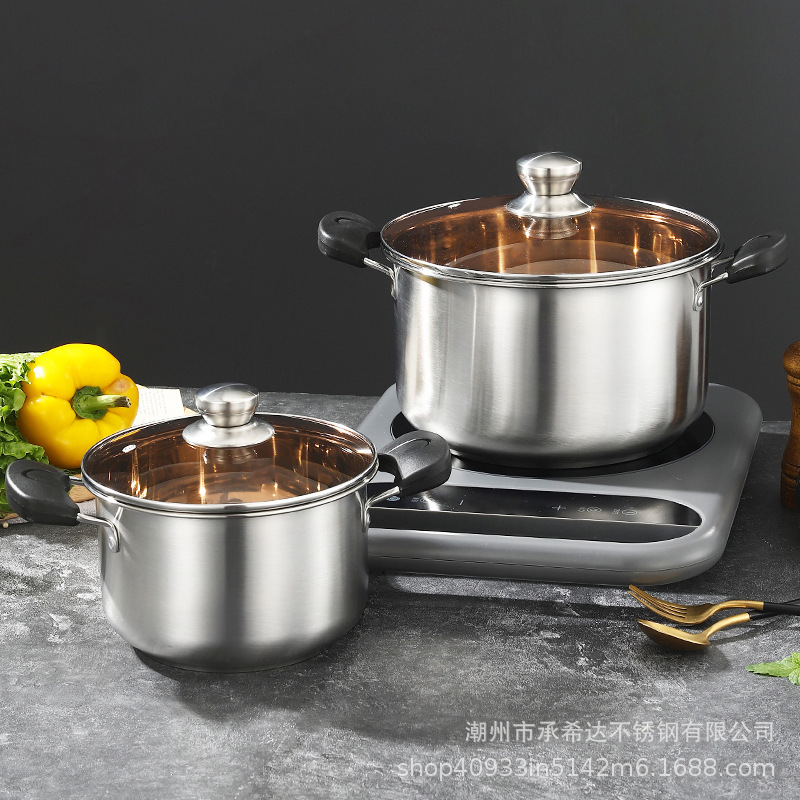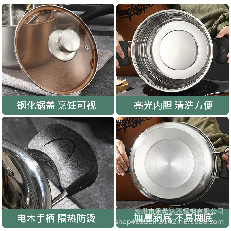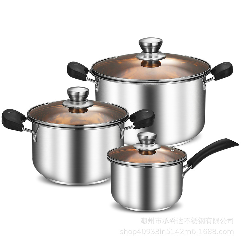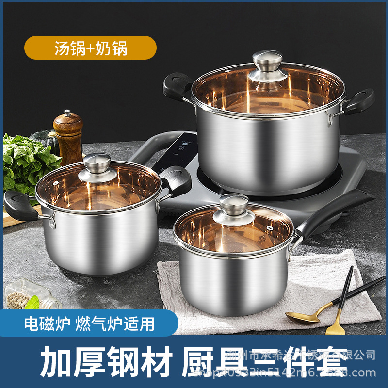 加厚不锈钢锅具三件套 家用厨房汤锅奶锅实用礼品组合装