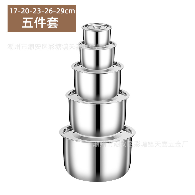 不锈钢锅具五件套锅具套装三件套锅印度锅泰式锅加深带盖料理锅