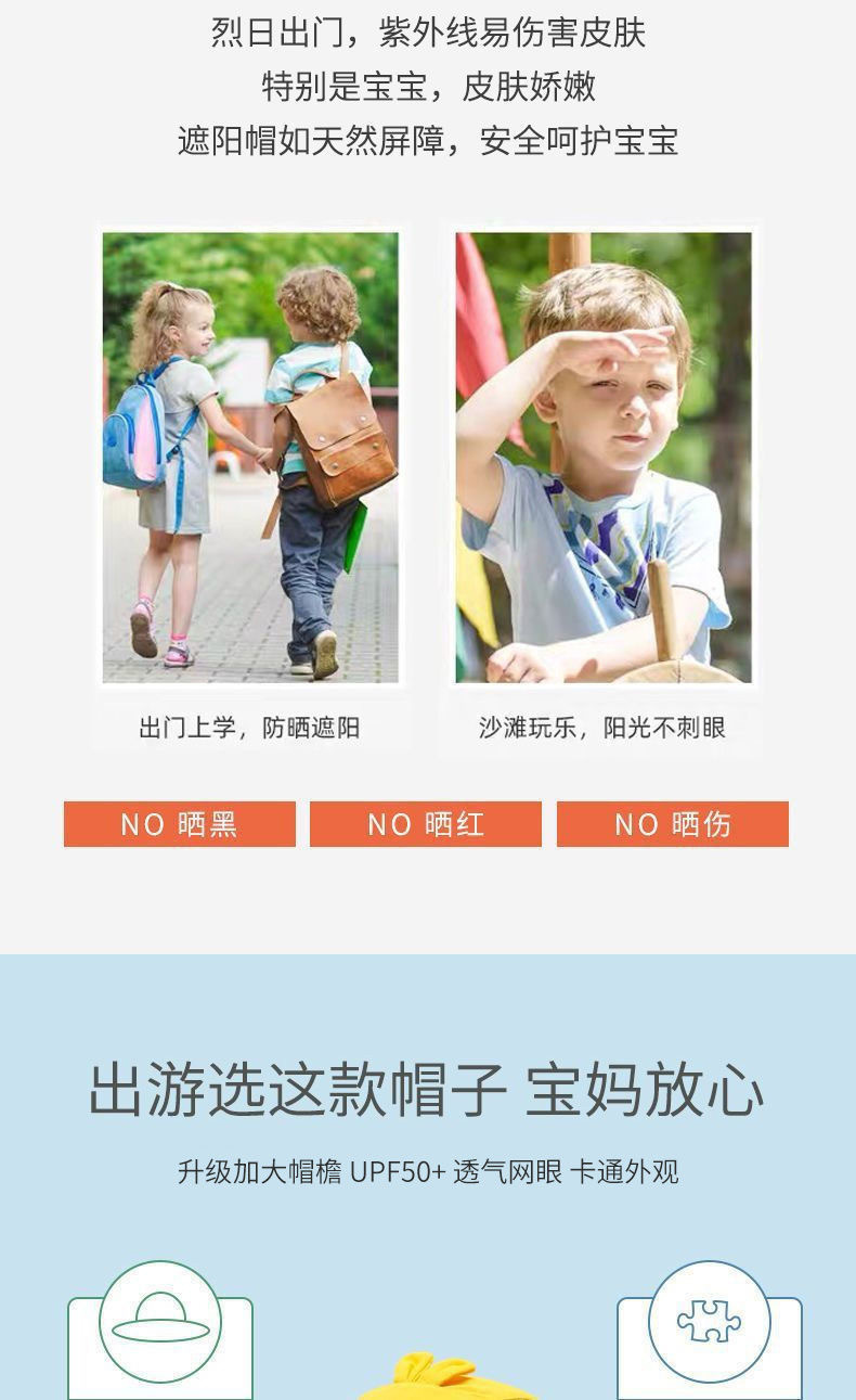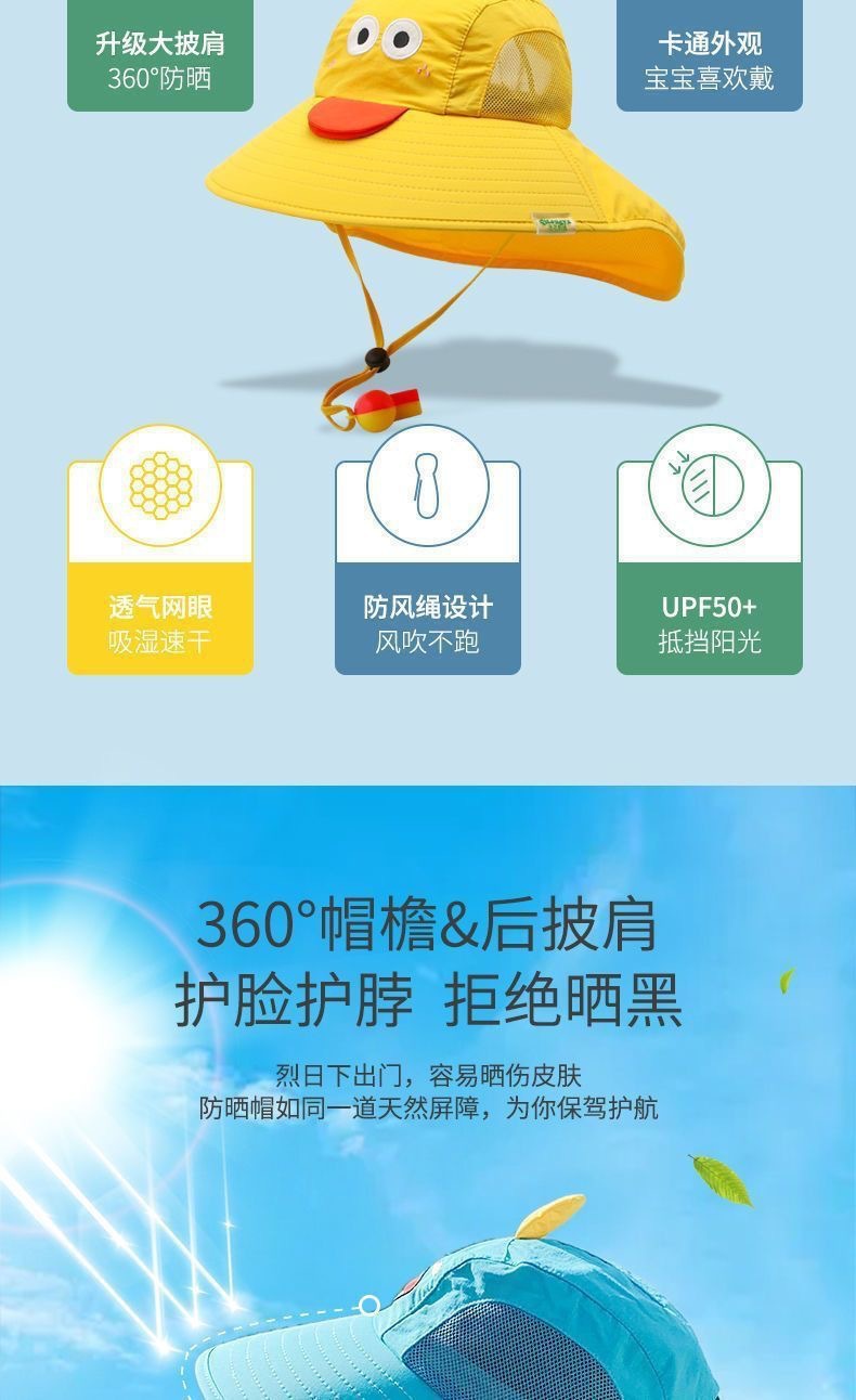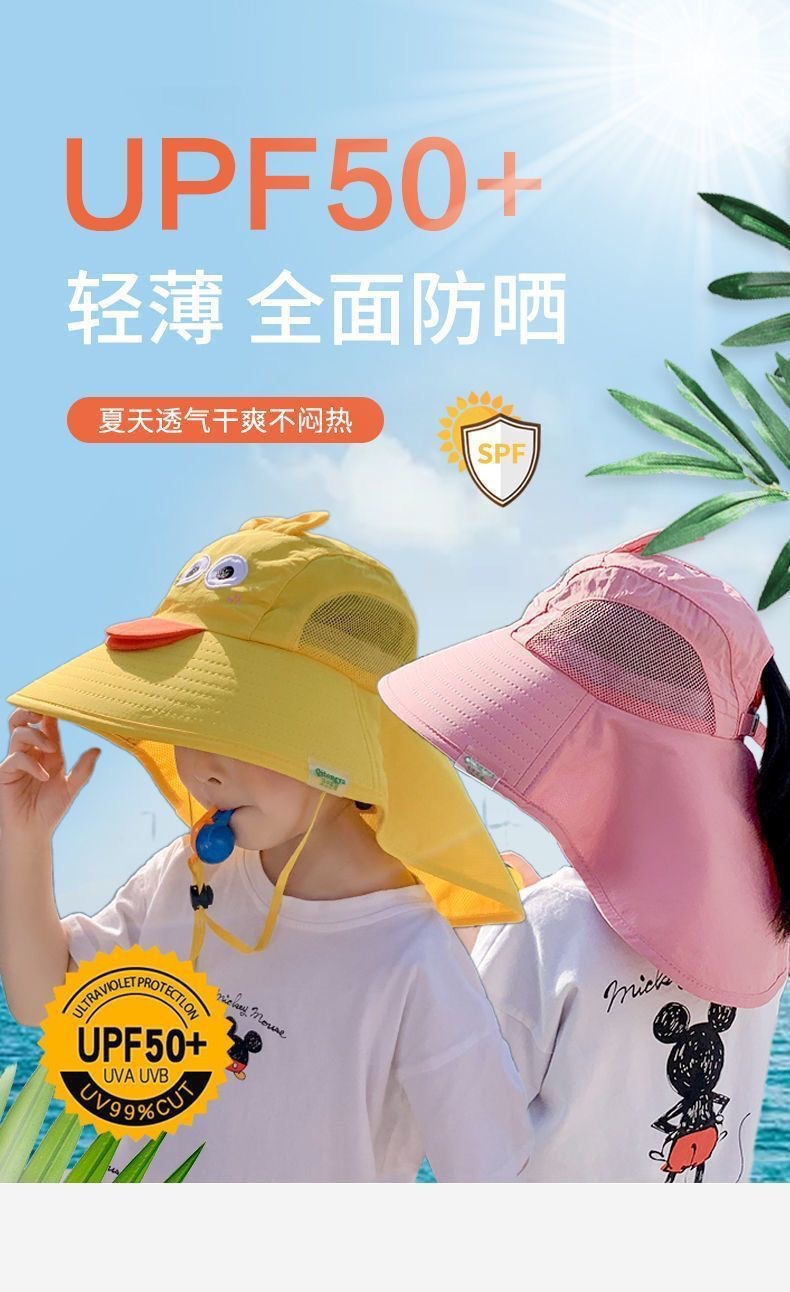 儿童防晒遮阳帽夏防紫外线太阳帽男童女孩透气防晒帽大帽檐渔夫帽