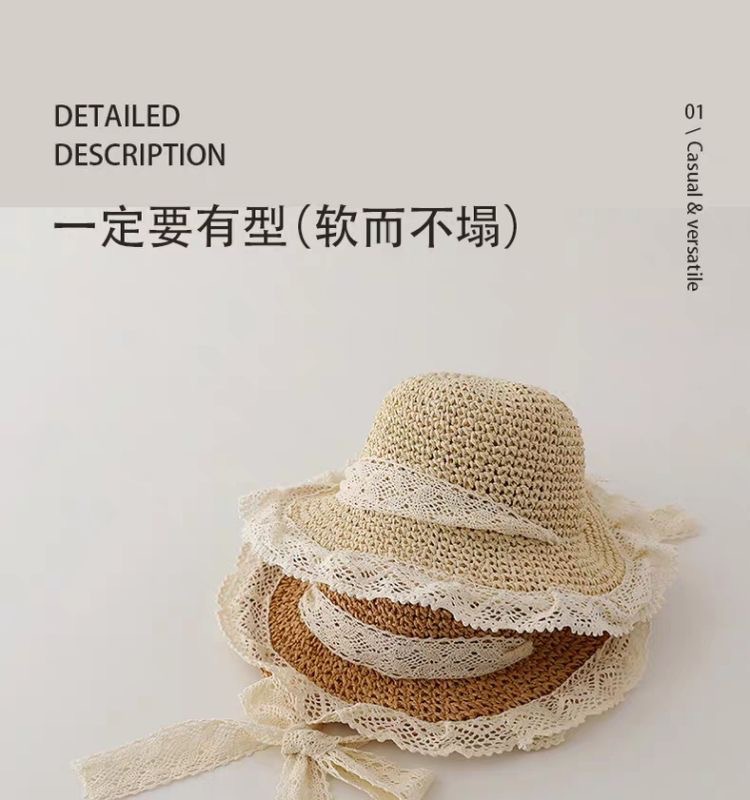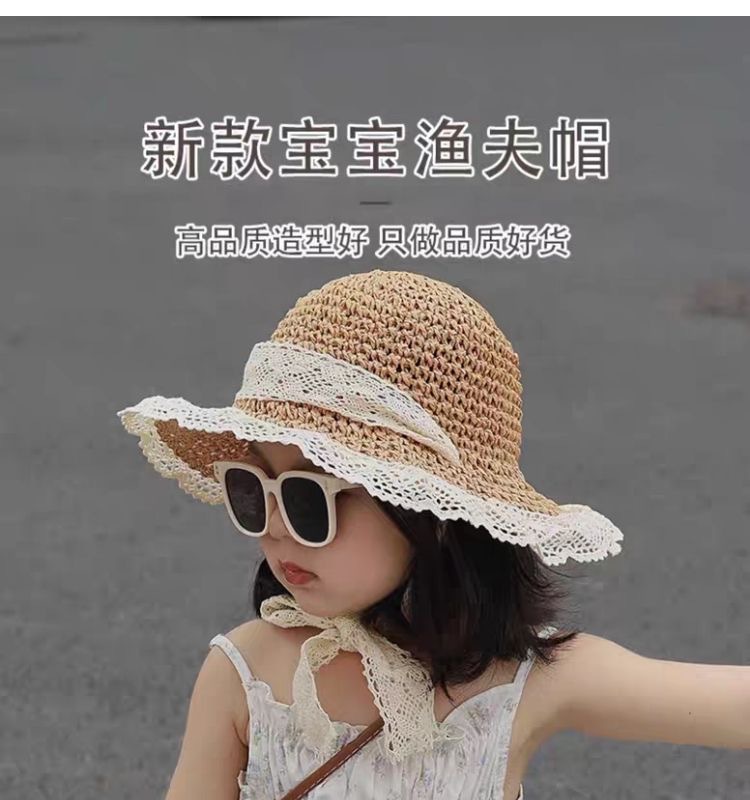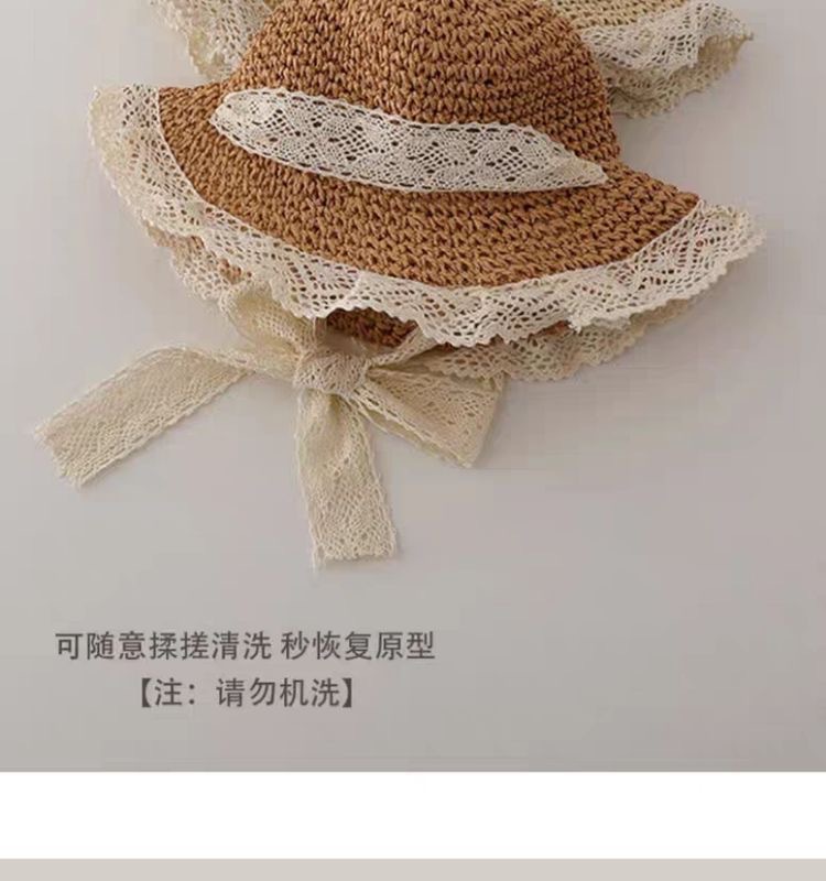 防晒帽子夏季蕾丝草帽编织女大帽檐遮阳帽海边渔夫帽显脸小沙滩帽