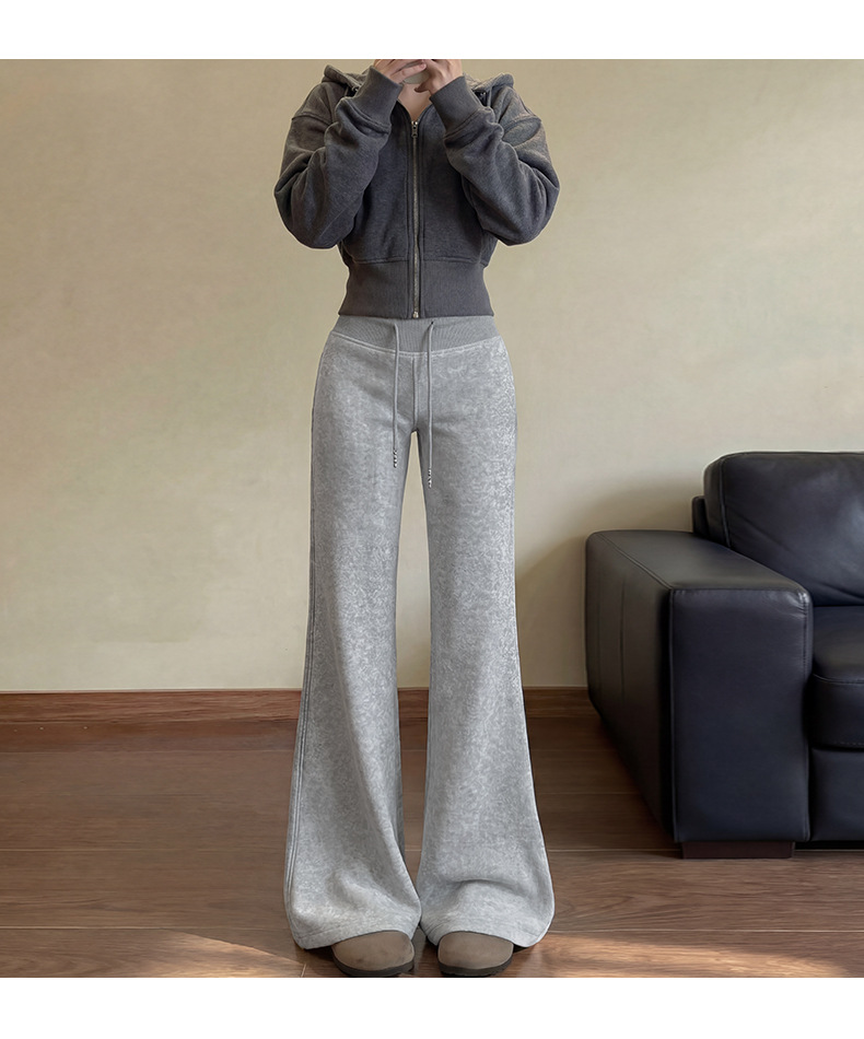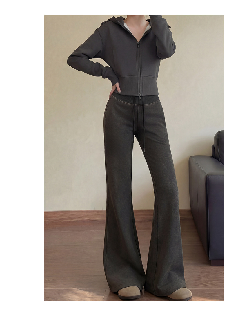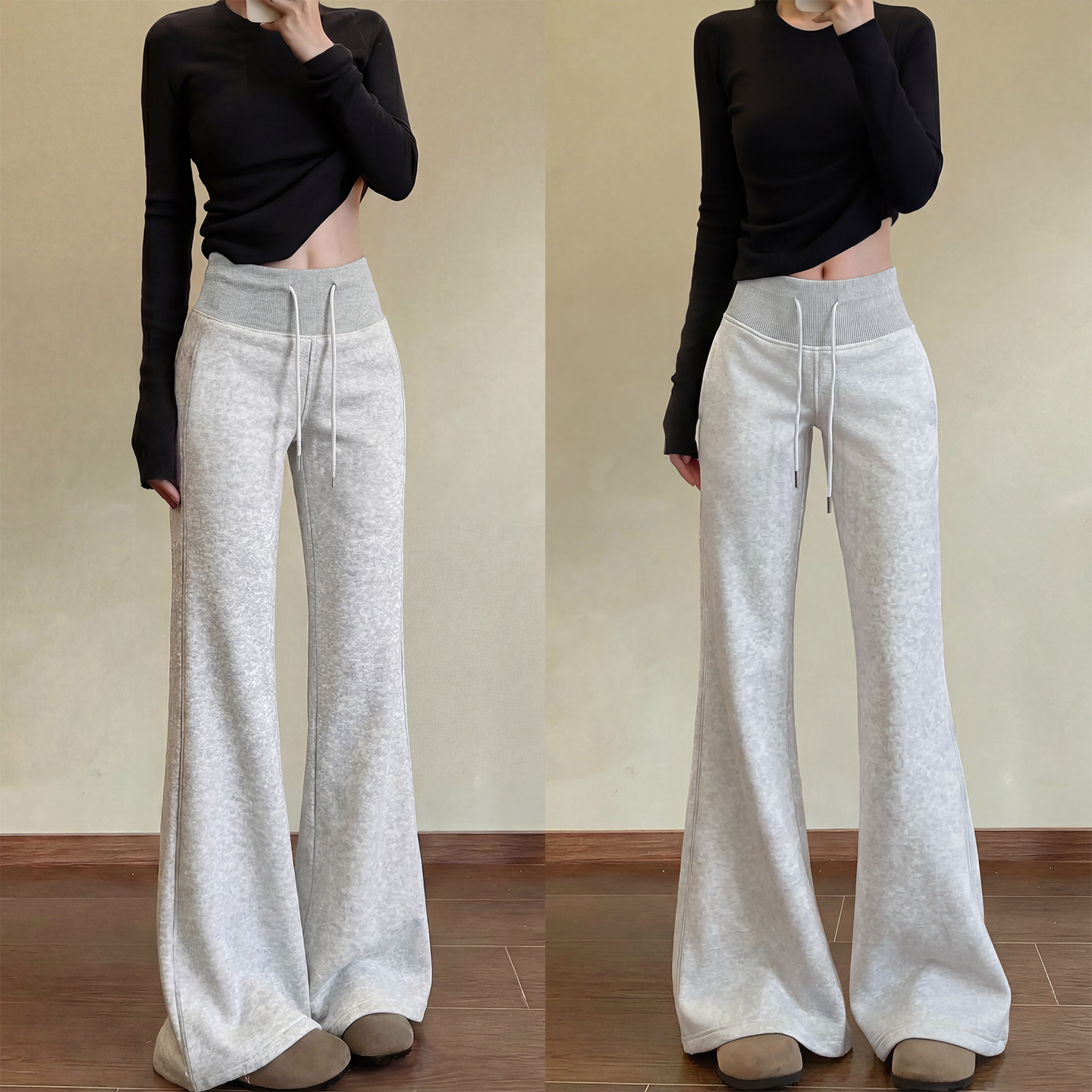 灰色喇叭运动裤女2026新款春秋高腰显瘦马蹄裤小个子美式微喇卫裤