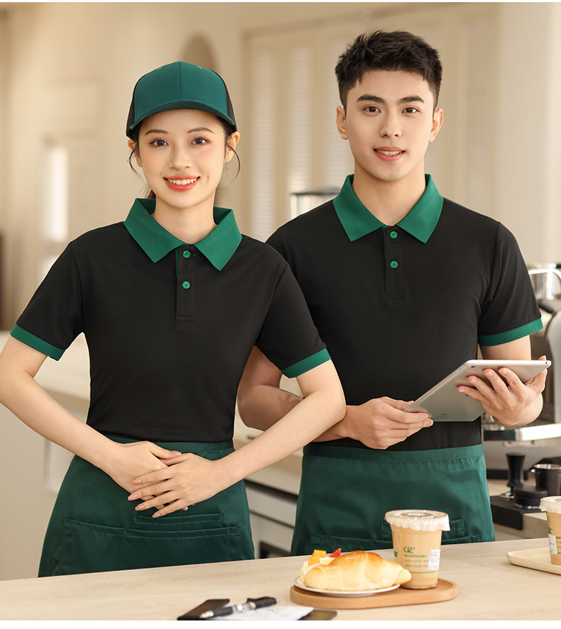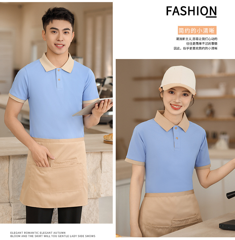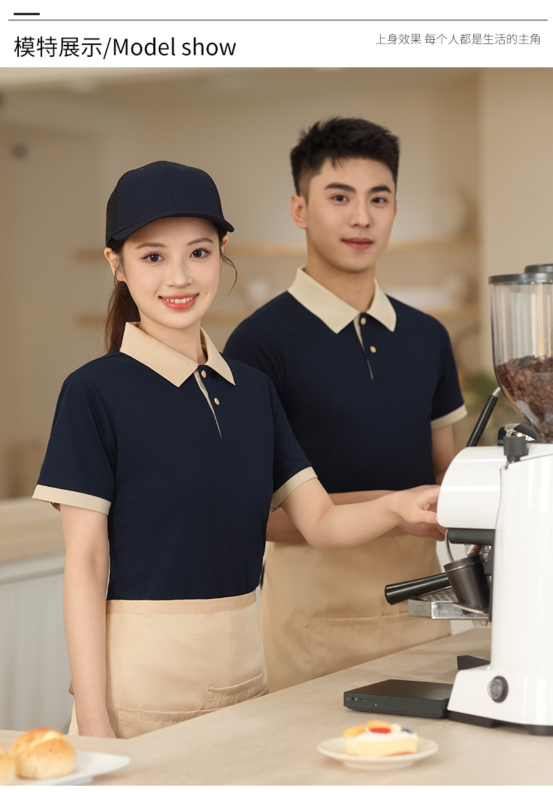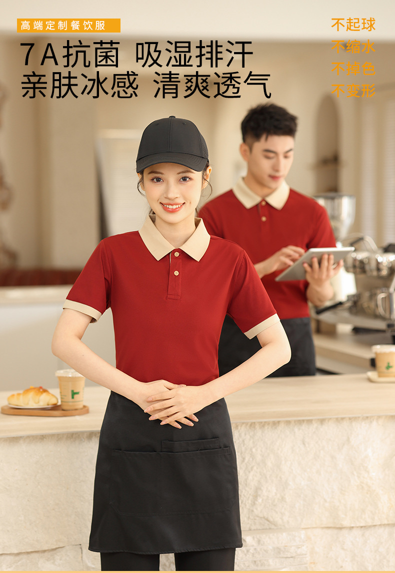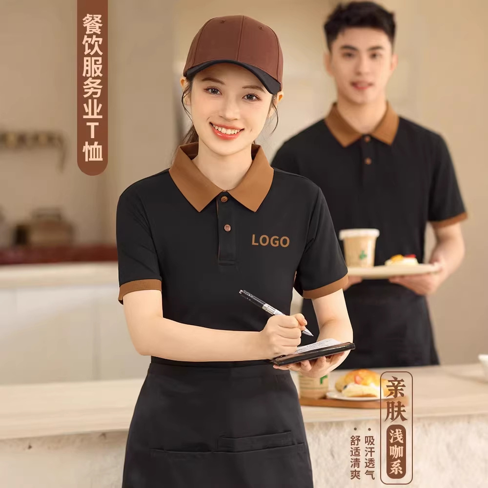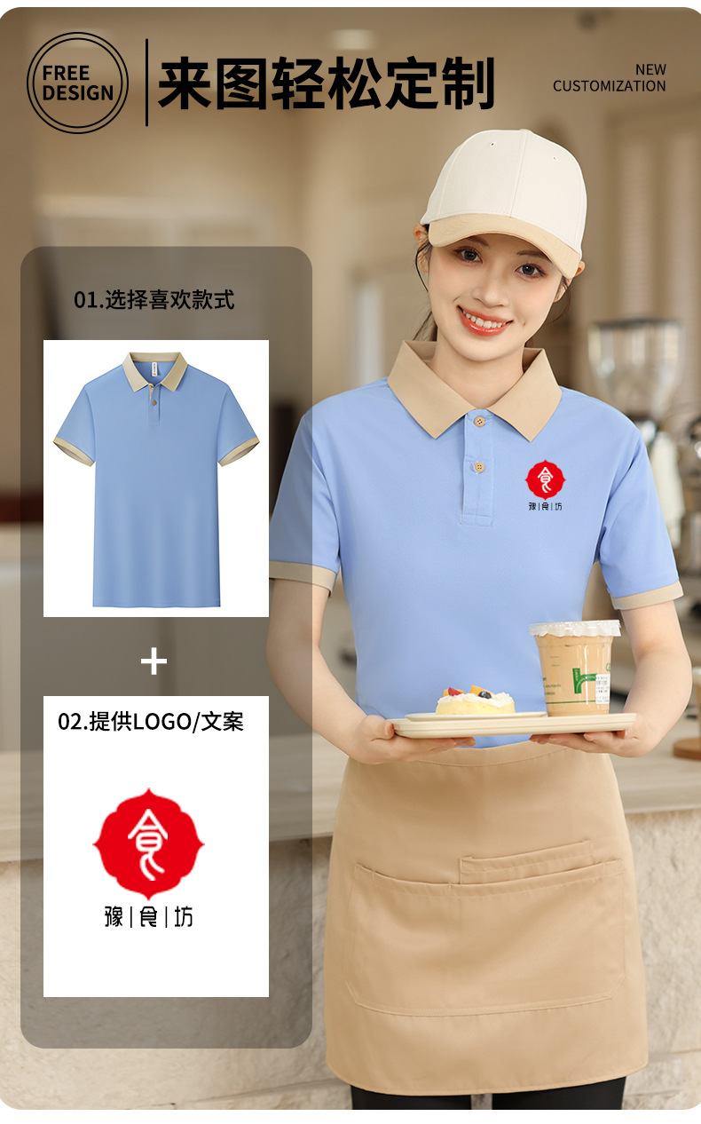 新款长绒棉翻领polo衫餐饮工作服定制印logo刺绣火锅店奶茶店工服