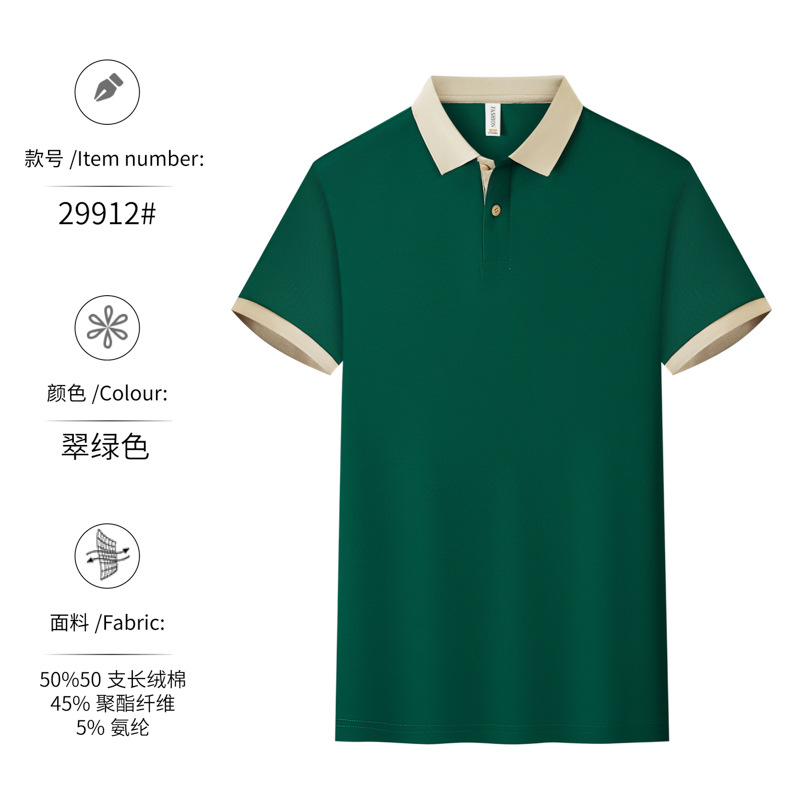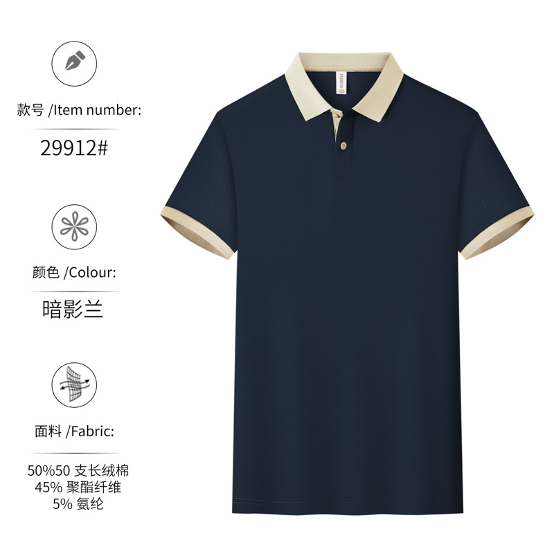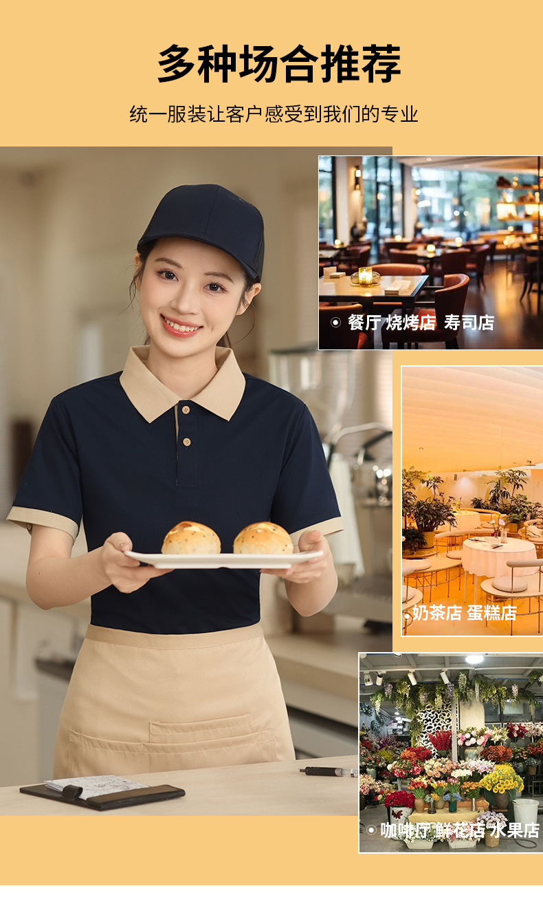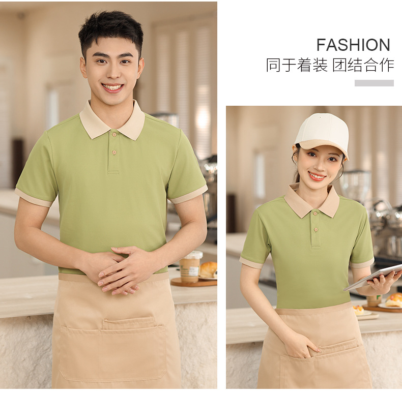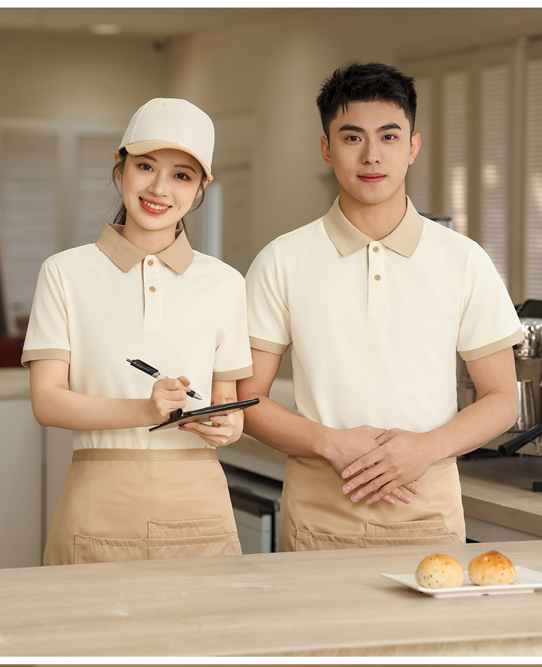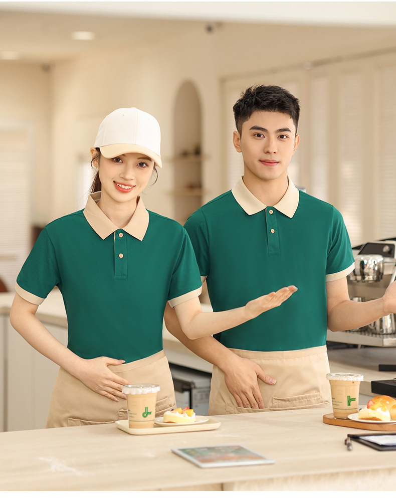 新款长绒棉翻领polo衫餐饮工作服定制印logo刺绣火锅店奶茶店工服